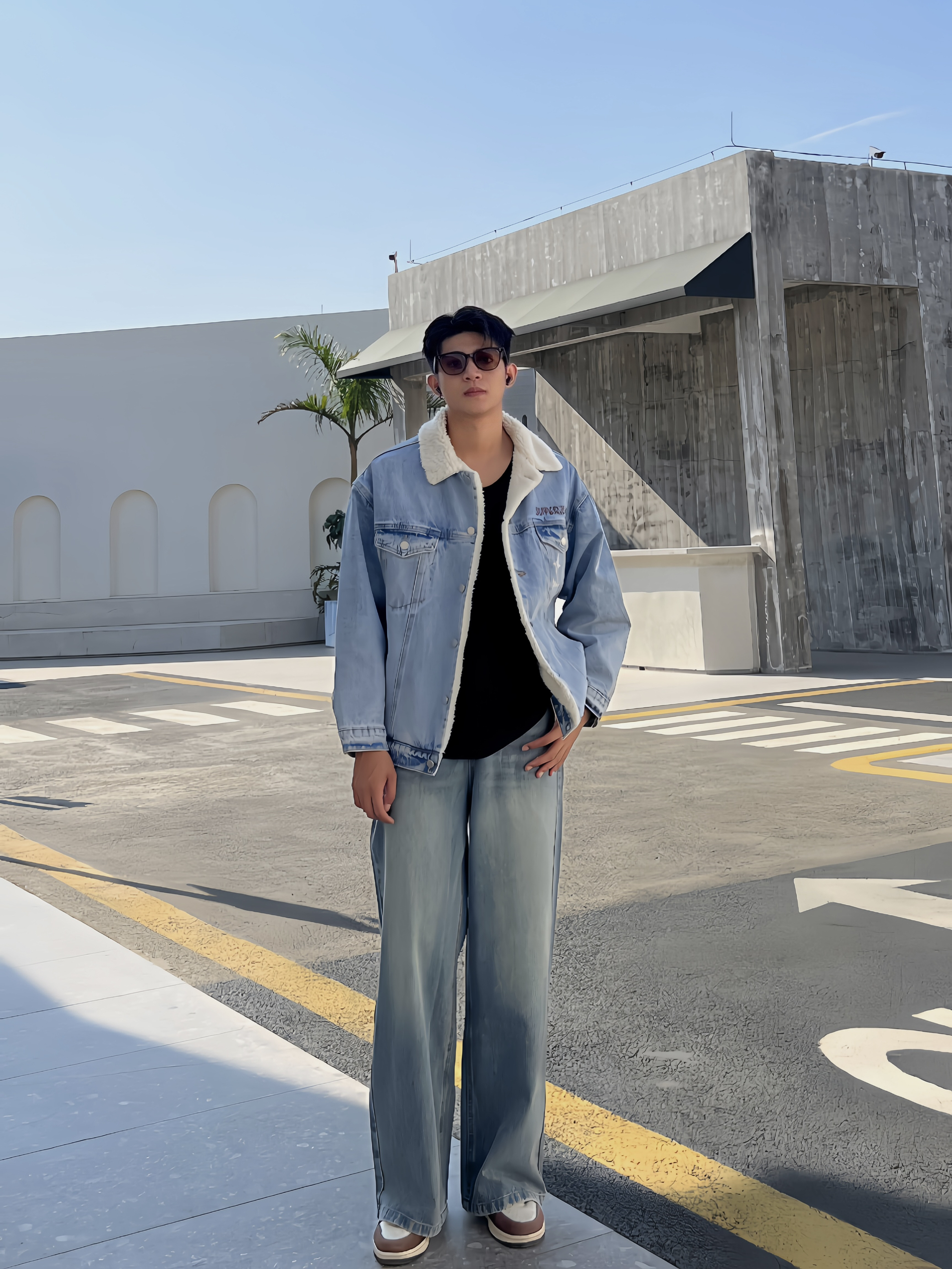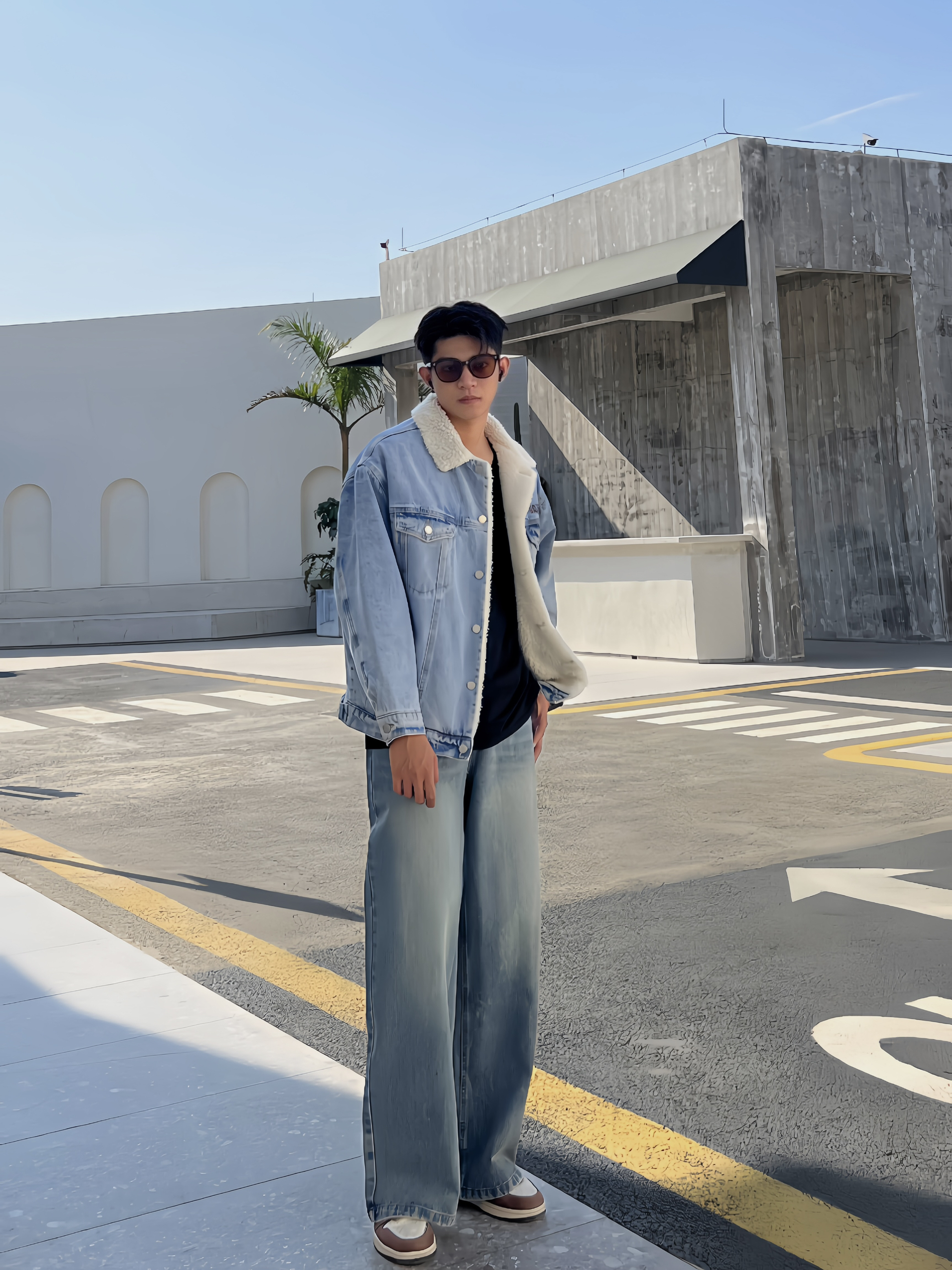 Hi,大家好今天给大家分享一套 黄黑皮 穿上显白的穿搭 👔:这款加绒加厚羊羔绒外套男黑色宽松毛领开衫夹克外套,宽松的版型设计,适合各种身材的男士,日常穿搭,都能轻松驾驭 搭配这款宽松牛仔裤 真的太好看了