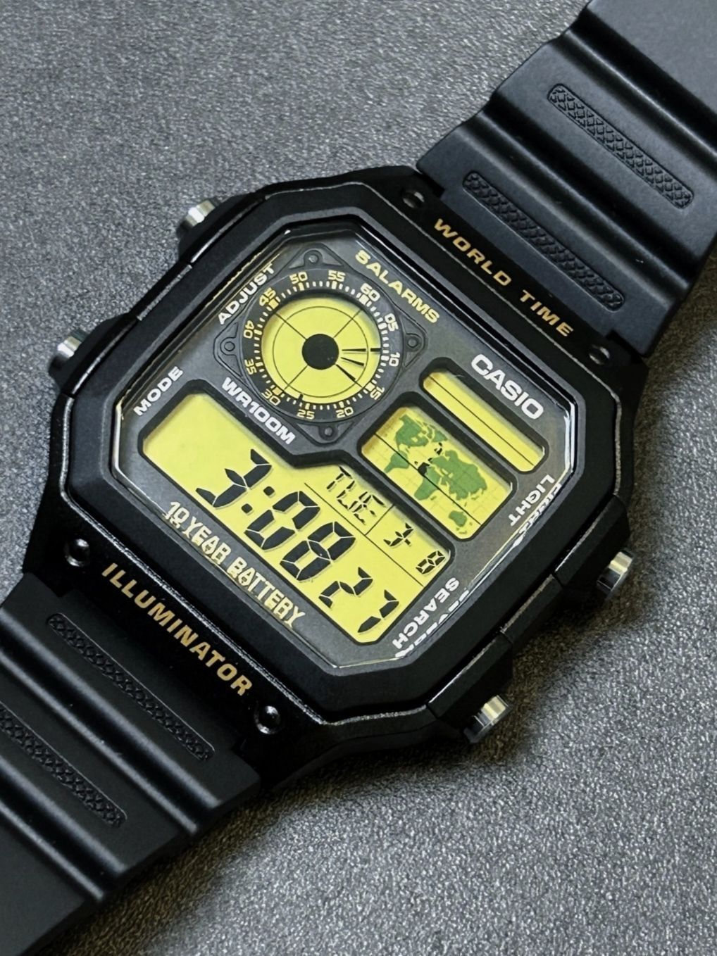 本篇笔记关联了Casio/卡西欧 YOUTH 复古十年电力小方块树脂表带防水电子男士手表 黄色黑带 AE-1200WH-1B等商品,为用户提供真实的使用体验和购买参考。