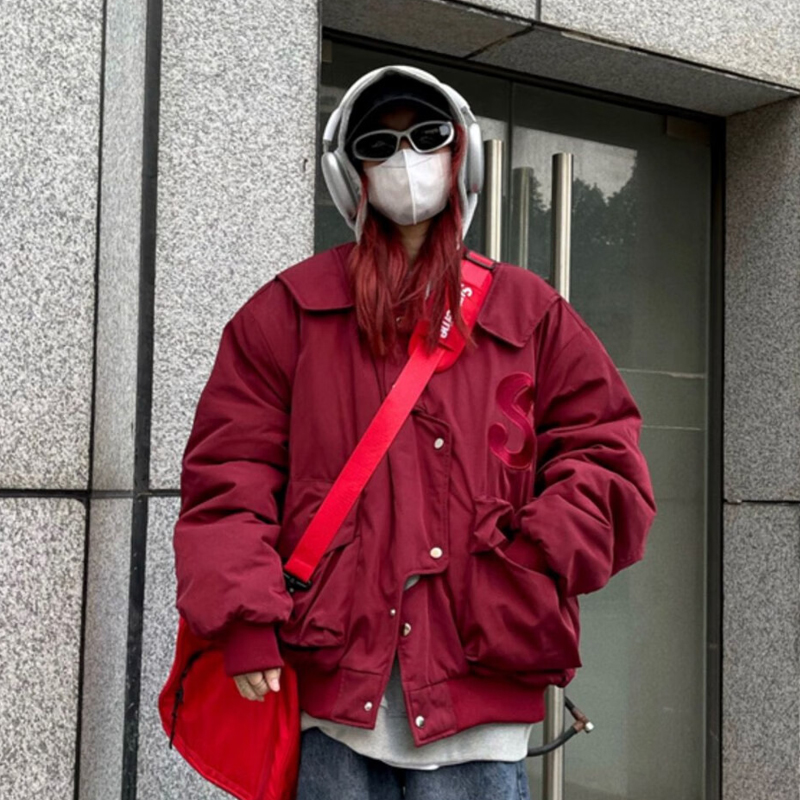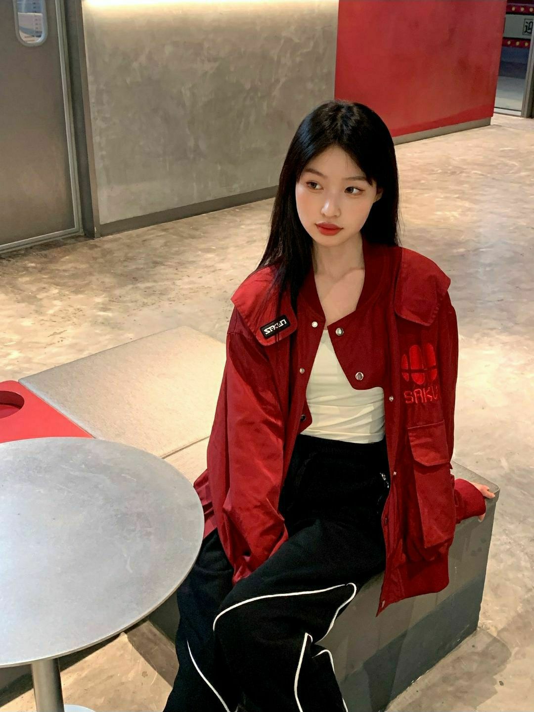🍉炒喜欢这种美式高街的外套! 这款加厚棉服真的狠厚实狠保暖里面软呼呼的 红色是真的好看!超级显白 质感超级顶!❤❤❤❤ 设计很不错穿起来也很酷秋冬必备外套单品 里面搭配一件白色T 再搭配灰色运动裤整起来真的太酷啦✌ 图片素材来自博主潮酷穿搭