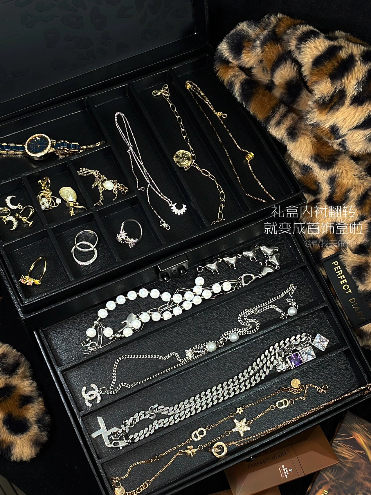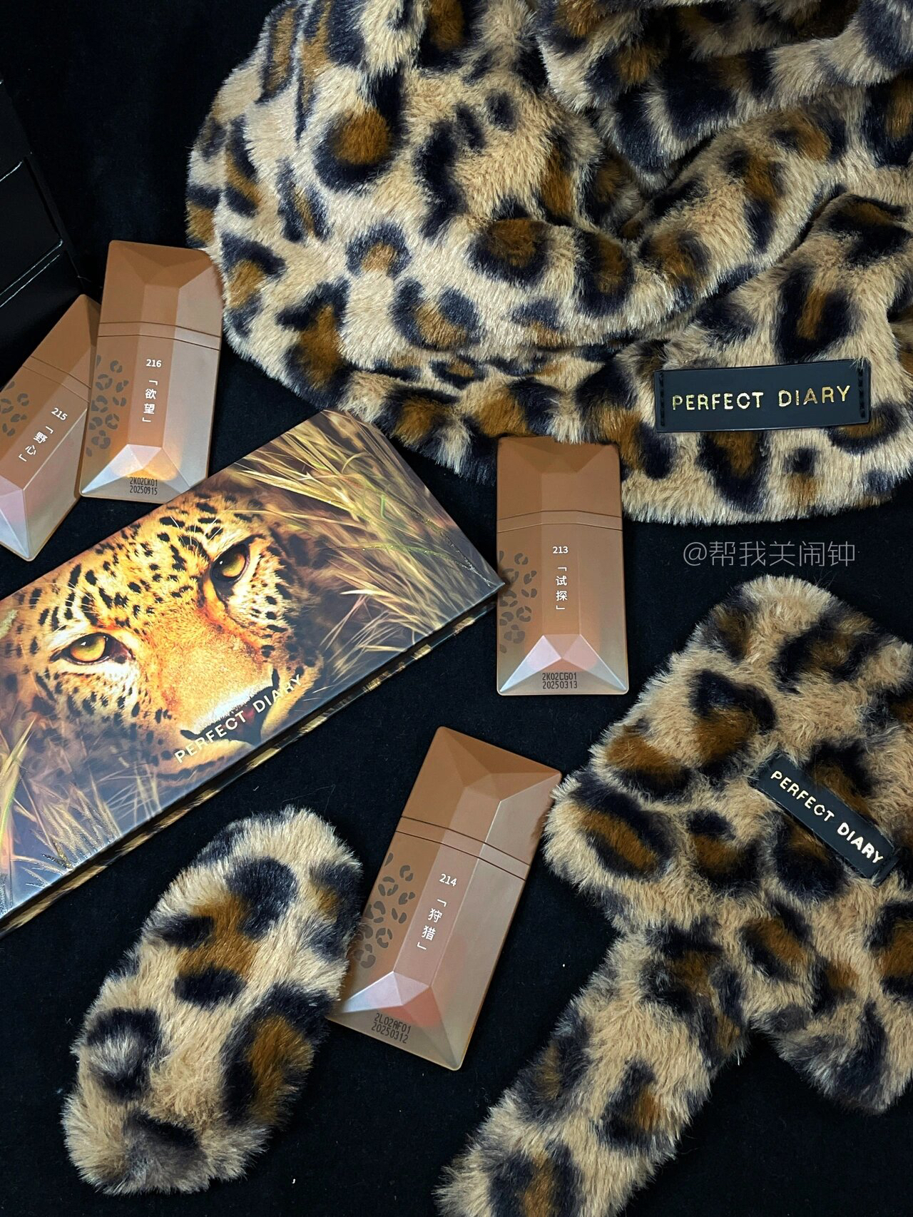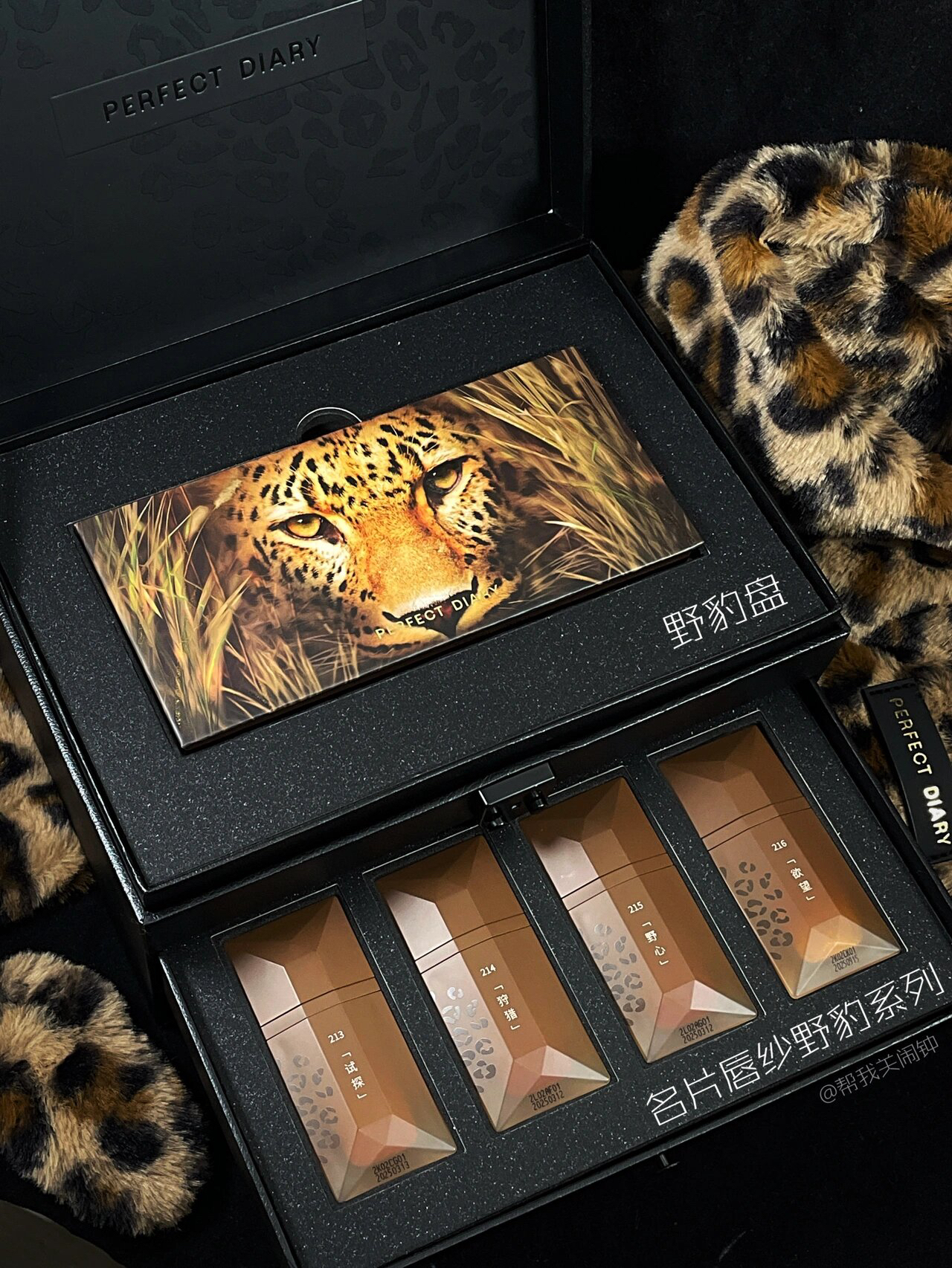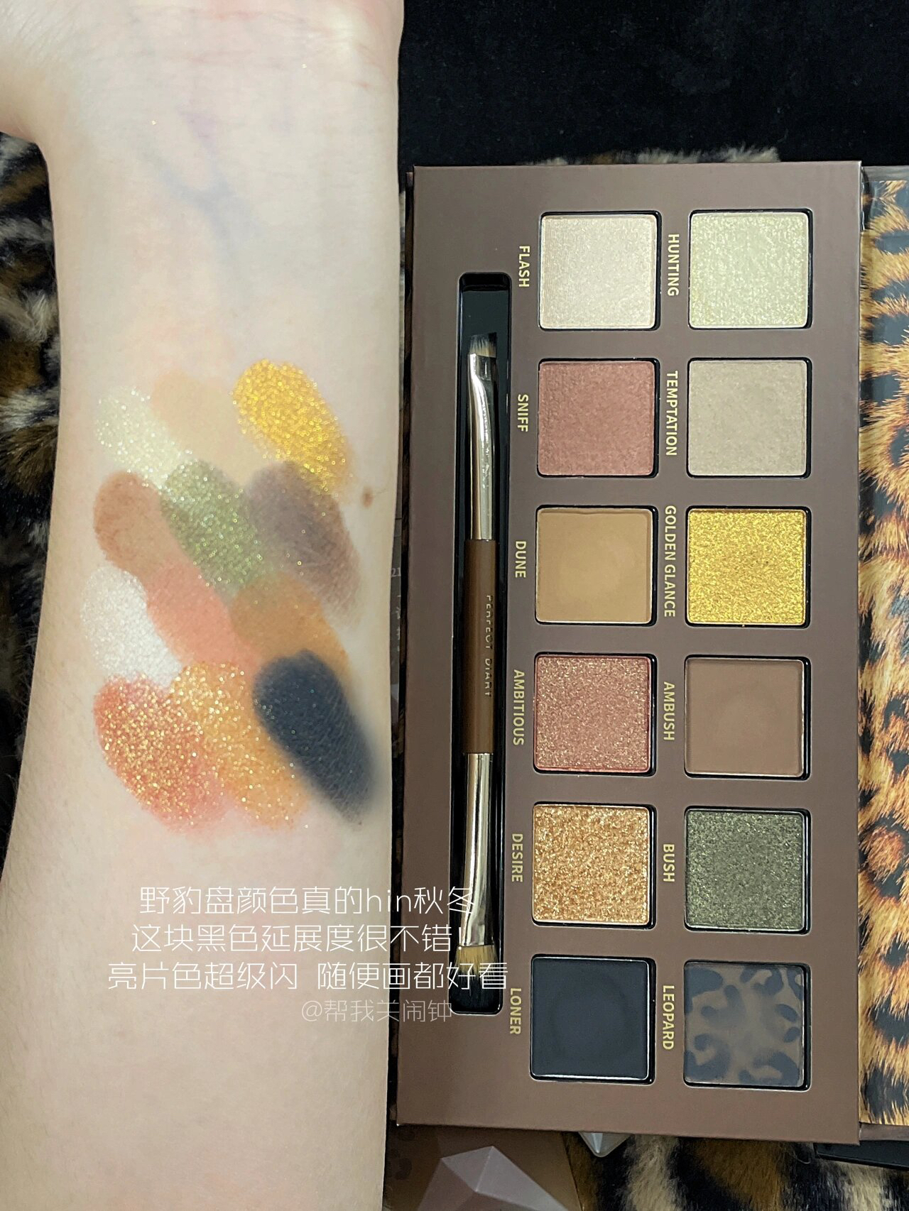 秋冬怎么能少的了豹纹🐆! 礼盒提手尊滴好像个野豹小尾巴~ 眼影盘配色hin适合秋冬 随便画都好看!! 周边手挽包手持镜和发夹都是毛绒绒软fufu滴~