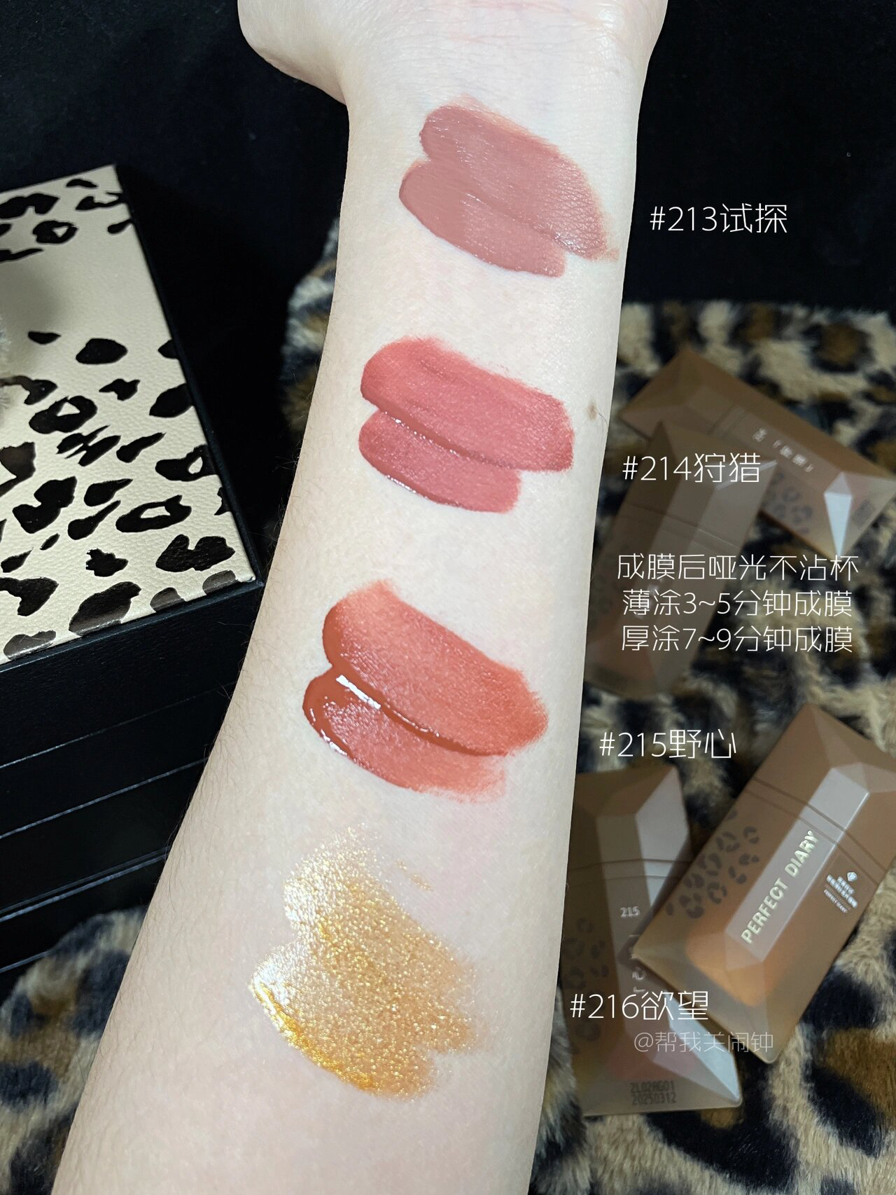 本篇笔记关联了perfect diary/完美日记 十二色动物眼影盘 自然持久哑光 14g 野豹盘、perfect diary/完美日记 黑纱名片唇釉 锁色提亮哑光丝绒雾面 4ml 216欲望、perfect diary/完美日记 黑纱名片唇釉 锁色提亮哑光丝绒雾面 4ml 215野心等商品,为用户提供真实的使用体验和购买参考。