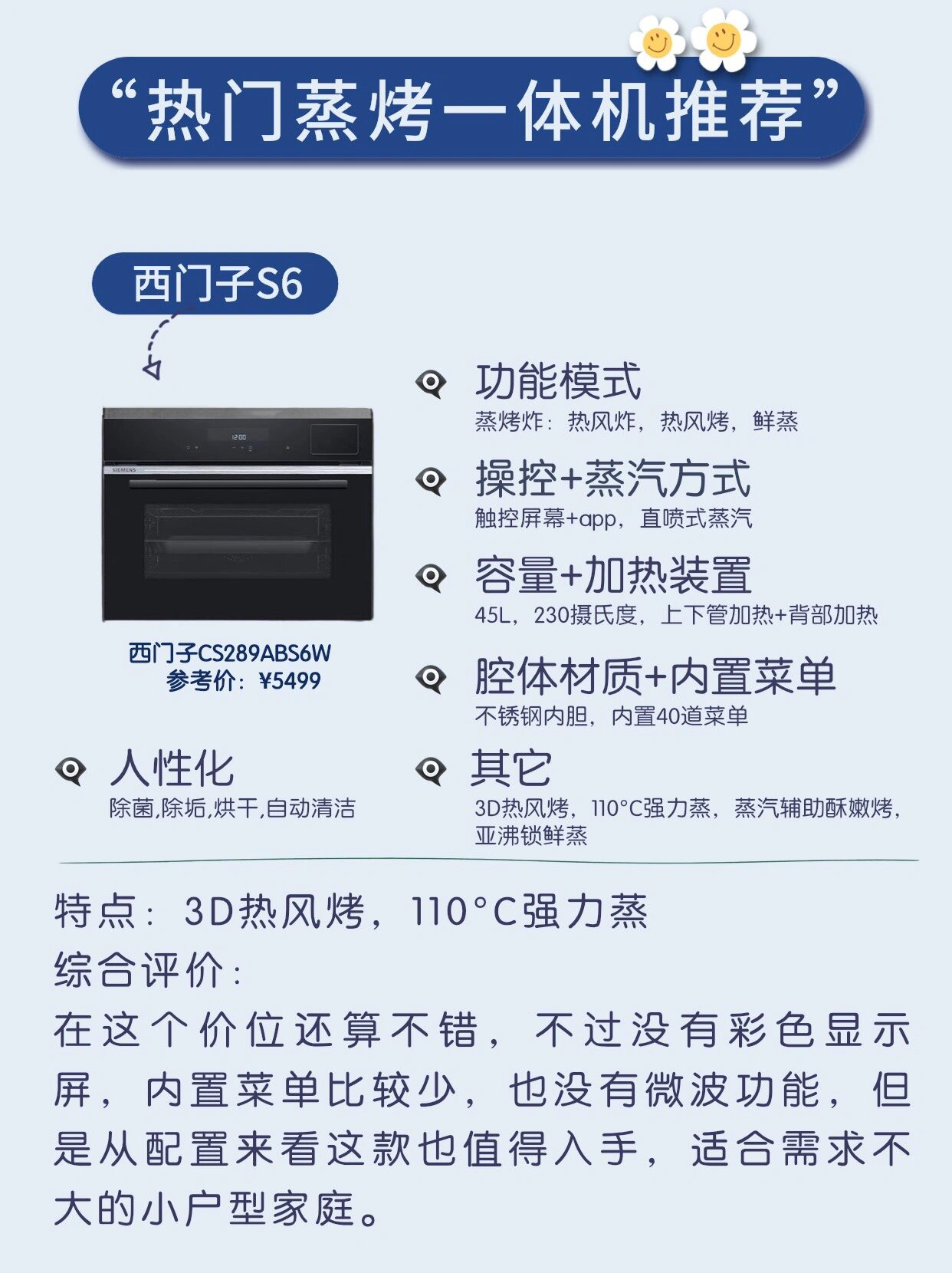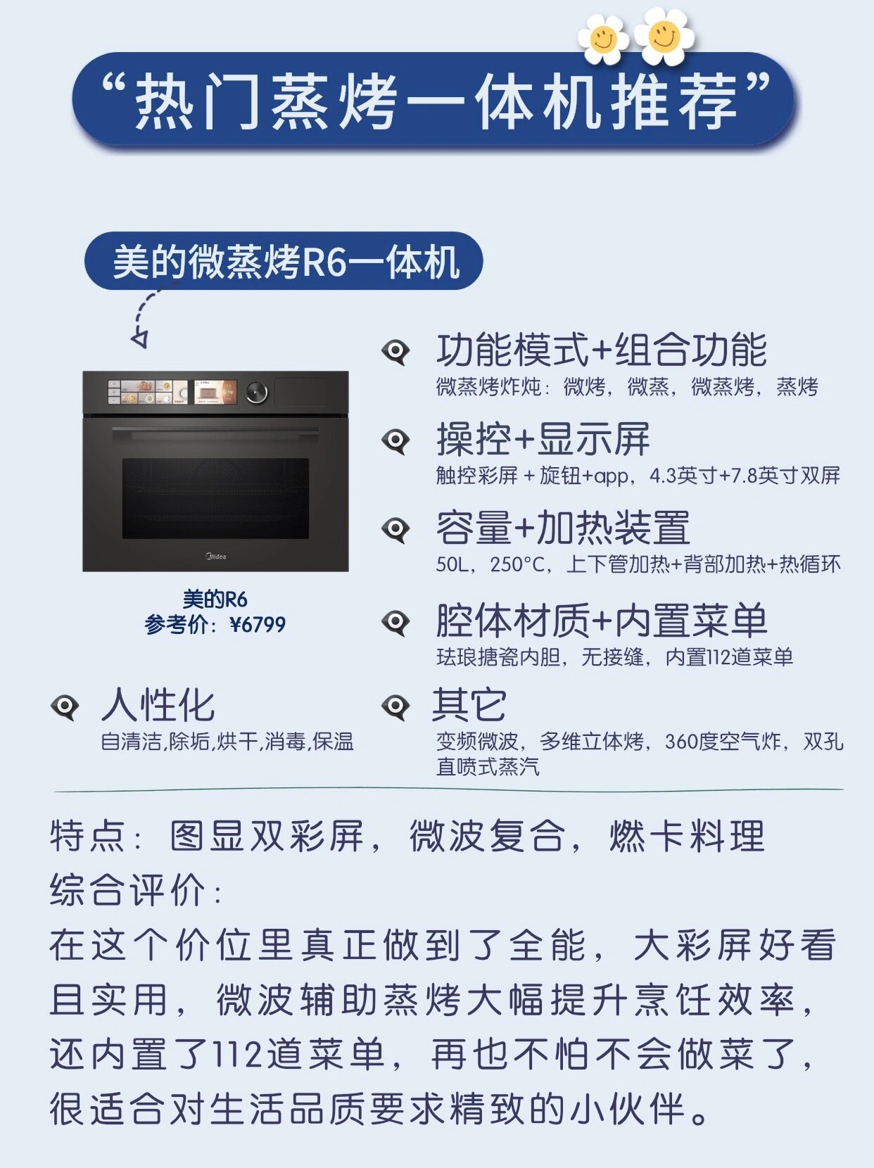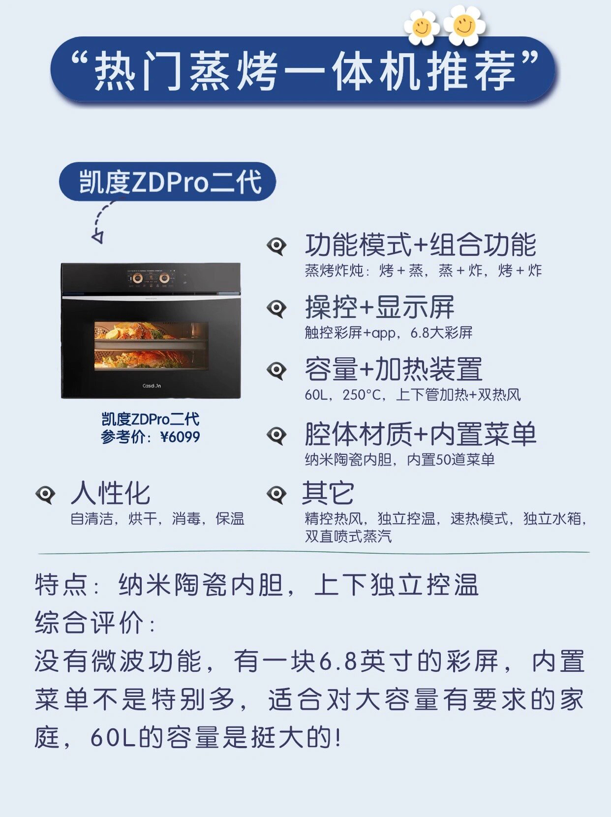 准备入手蒸烤一体机的小伙伴听我一句建议!要选什么?不要选什么?一篇讲懂! -选: 功能全面:多种烹饪模式,包括烤、蒸、烘烤、烘焙等,技多不压身。 智能操作:除去要有蒸、烤、炸、烹饪功能也要选择有功能复合和智能识别功能的,加上自动菜谱更是锦上添花 。 易清洁: 选择内壁采用易清洁材料制成,或者具有自清洁功能的蒸烤一体机。内胆尽量选择搪瓷的,这种材质表面光滑,不易生锈,清洗方便;耐腐蚀;耐高温,传热快...