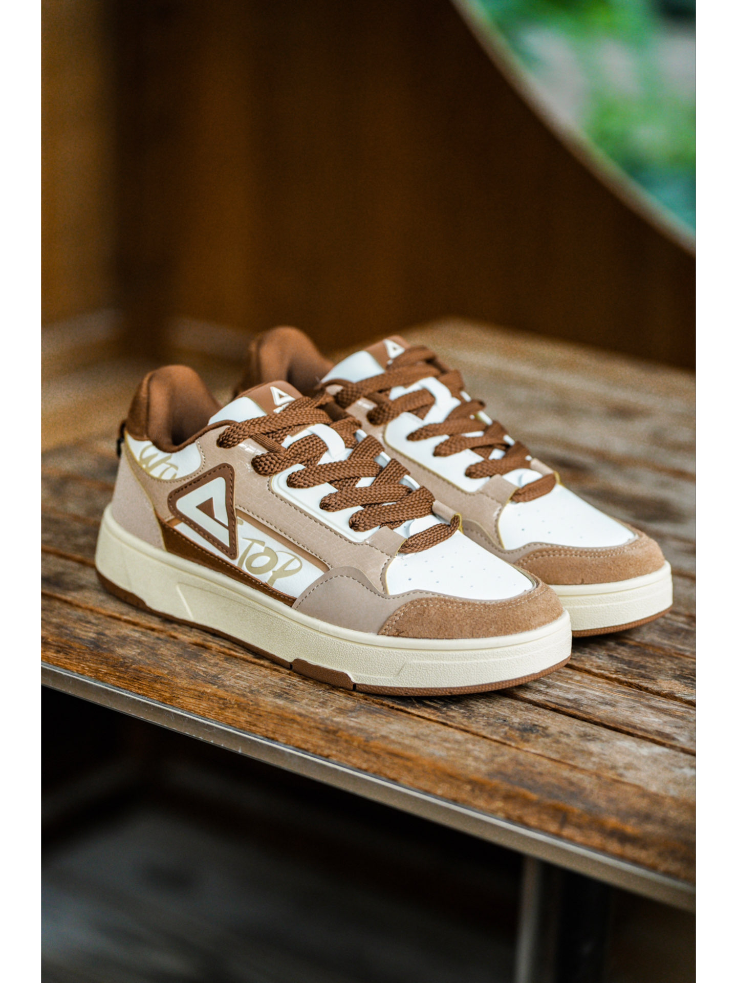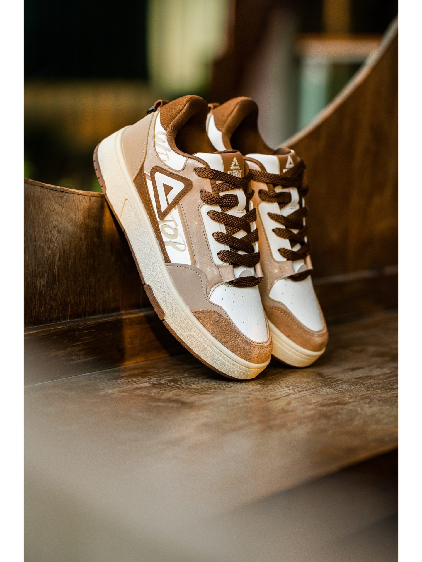 秋天爆火的美拉德色系风潮你赶上了吗?在初冬季节,这样的质感配色依旧很能打动我。 鞋身整体采用了白色搭配上浅棕色与深棕色呈现,通过色彩的深浅做出了层次感,而最吸引我的就是鞋侧的浮雕,真的很细节~中底使用了匹克当家的态极科技,脚感真的比传统板鞋好出太多,可以说非常适合通勤了。 初冬的美拉德板鞋,还会让你心动吗?