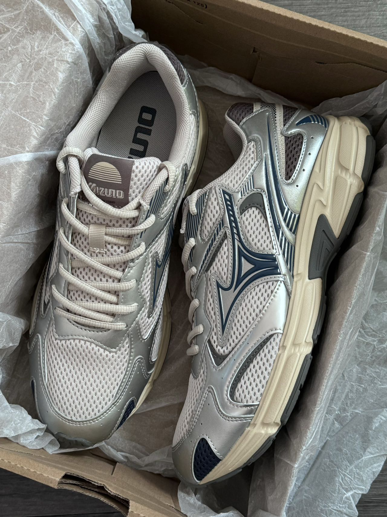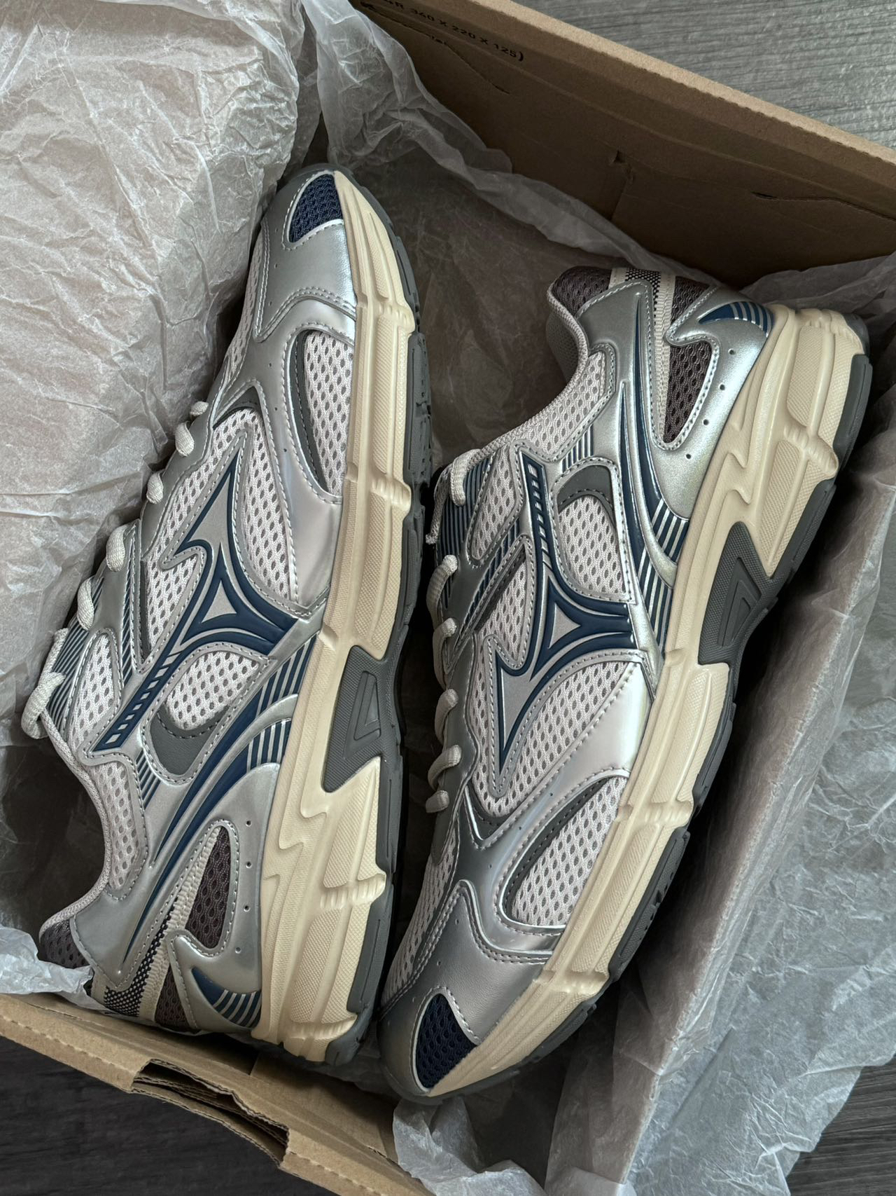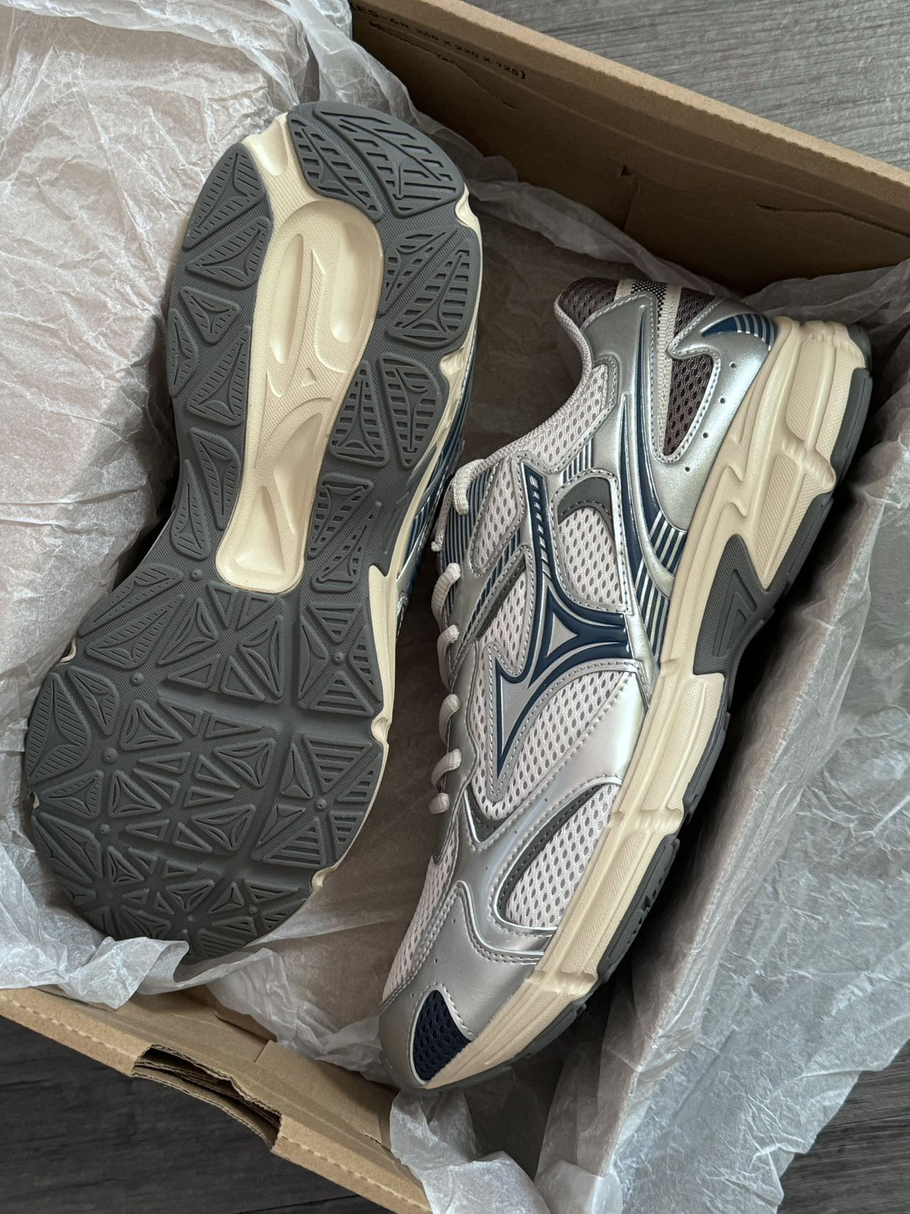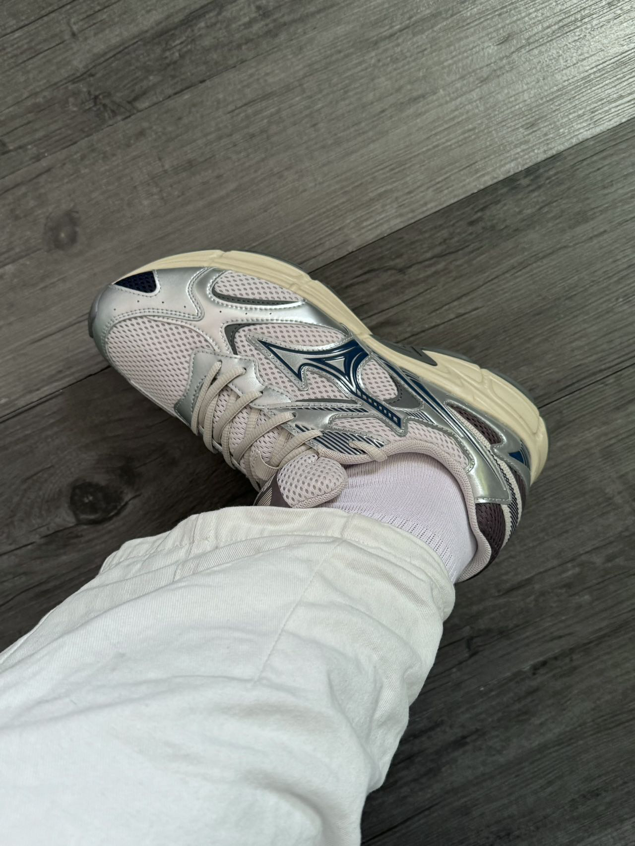 今年超偏爱银灰色~简约又高级! 美津浓这双配色长在我心坎上了😭 细节处理和做工都没得挑✅ 脚感也不错,很舒服! 不偏码~Y2K的宝子们可以冲哇!