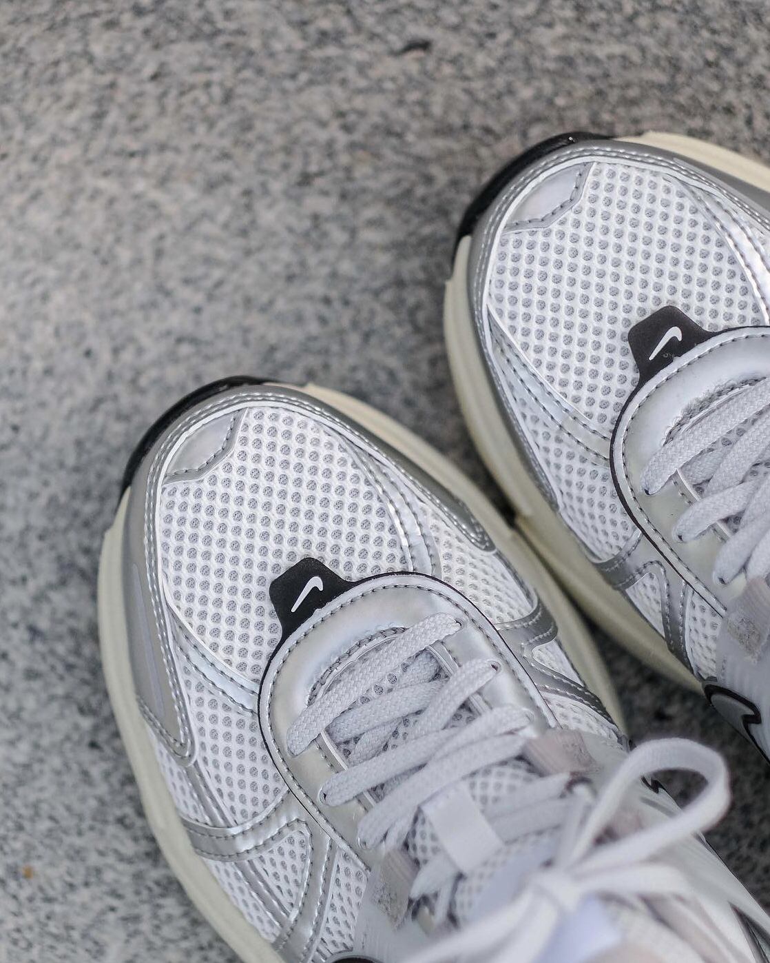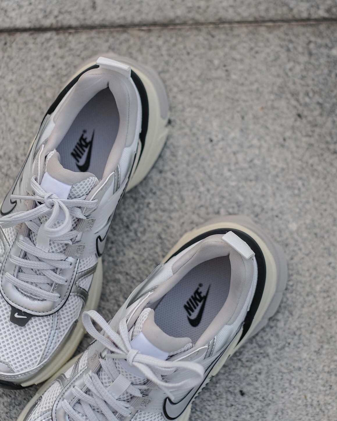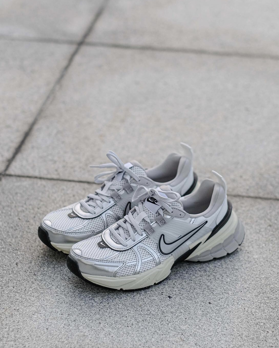 这双V2K穿起来是真的很好看‼️鞋型上是那种偏夸大的设计👏🏻所以视觉上可对粗腿的我还是很友好的💯并且鞋面用了银色皮革来装饰🍓也是现在比较流行的⚠️不过网眼布的面🫐秋冬会有点冷🍔不过其他季节还是蛮好穿的⭕️柔软的中底穿起来还是很舒服的🎨再也不担心我的“大粗腿”了😊