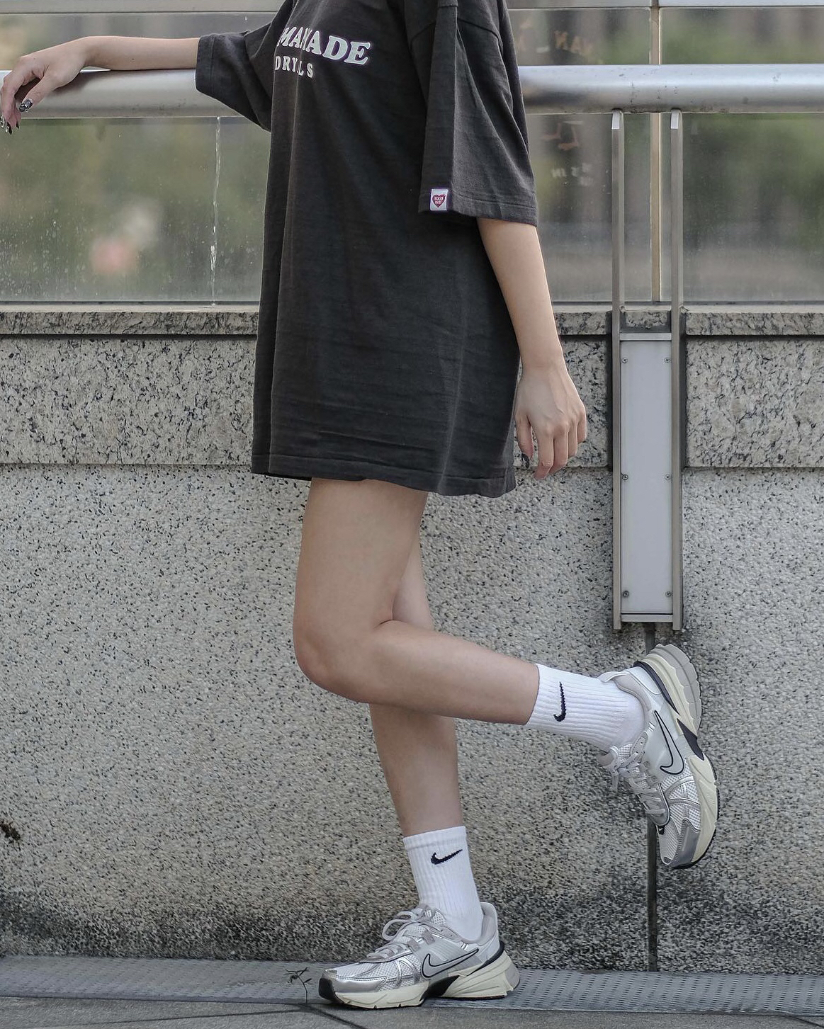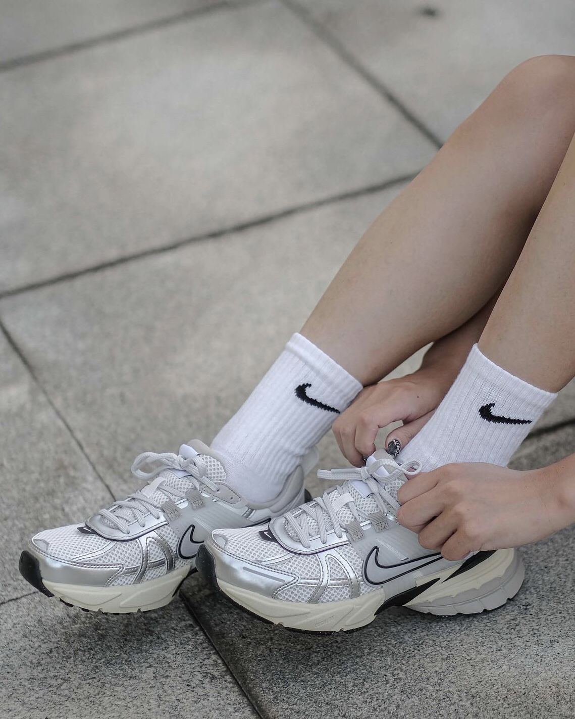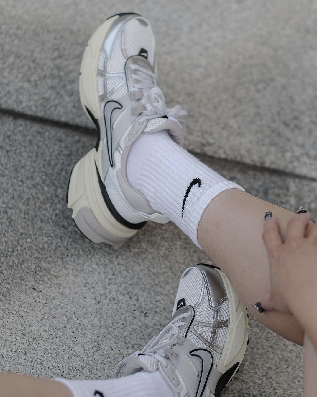 这双V2K穿起来是真的很好看‼️鞋型上是那种偏夸大的设计👏🏻所以视觉上可对粗腿的我还是很友好的💯并且鞋面用了银色皮革来装饰🍓也是现在比较流行的⚠️不过网眼布的面🫐秋冬会有点冷🍔不过其他季节还是蛮好穿的⭕️柔软的中底穿起来还是很舒服的🎨再也不担心我的“大粗腿”了😊