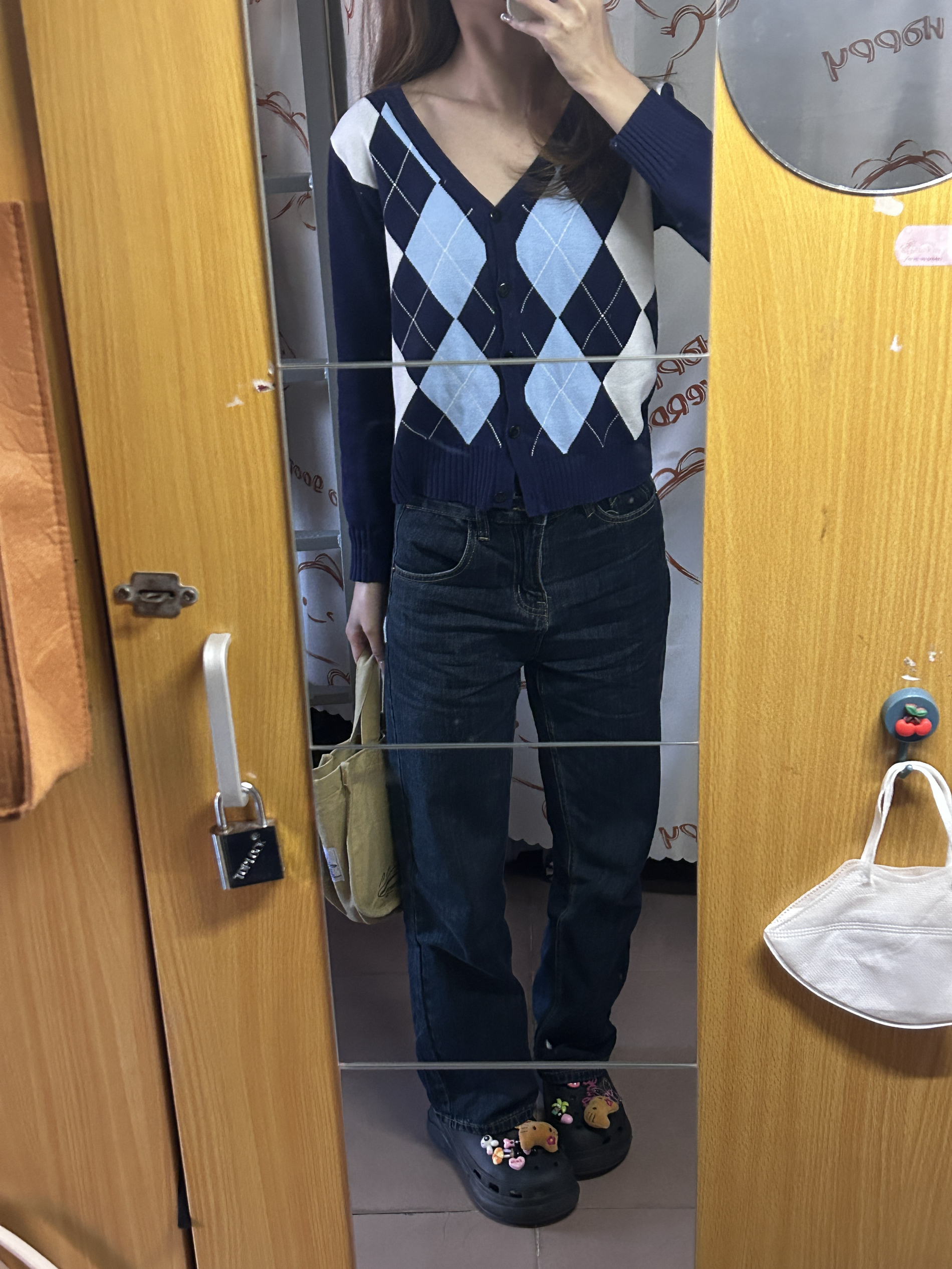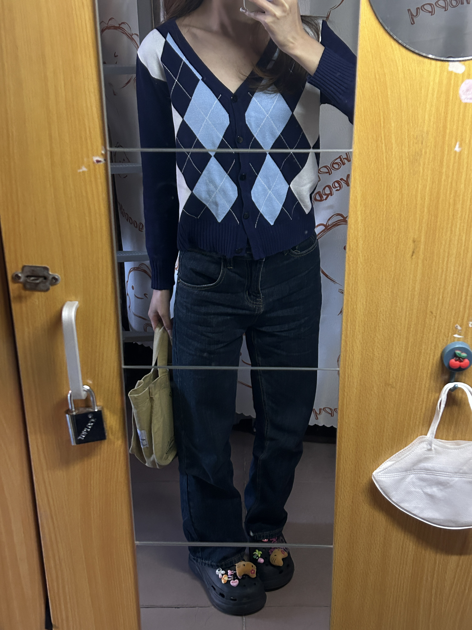 158/42 小个子女生裤子休闲搭配👖 格子开衫搭配牛仔裤百搭日常🤩