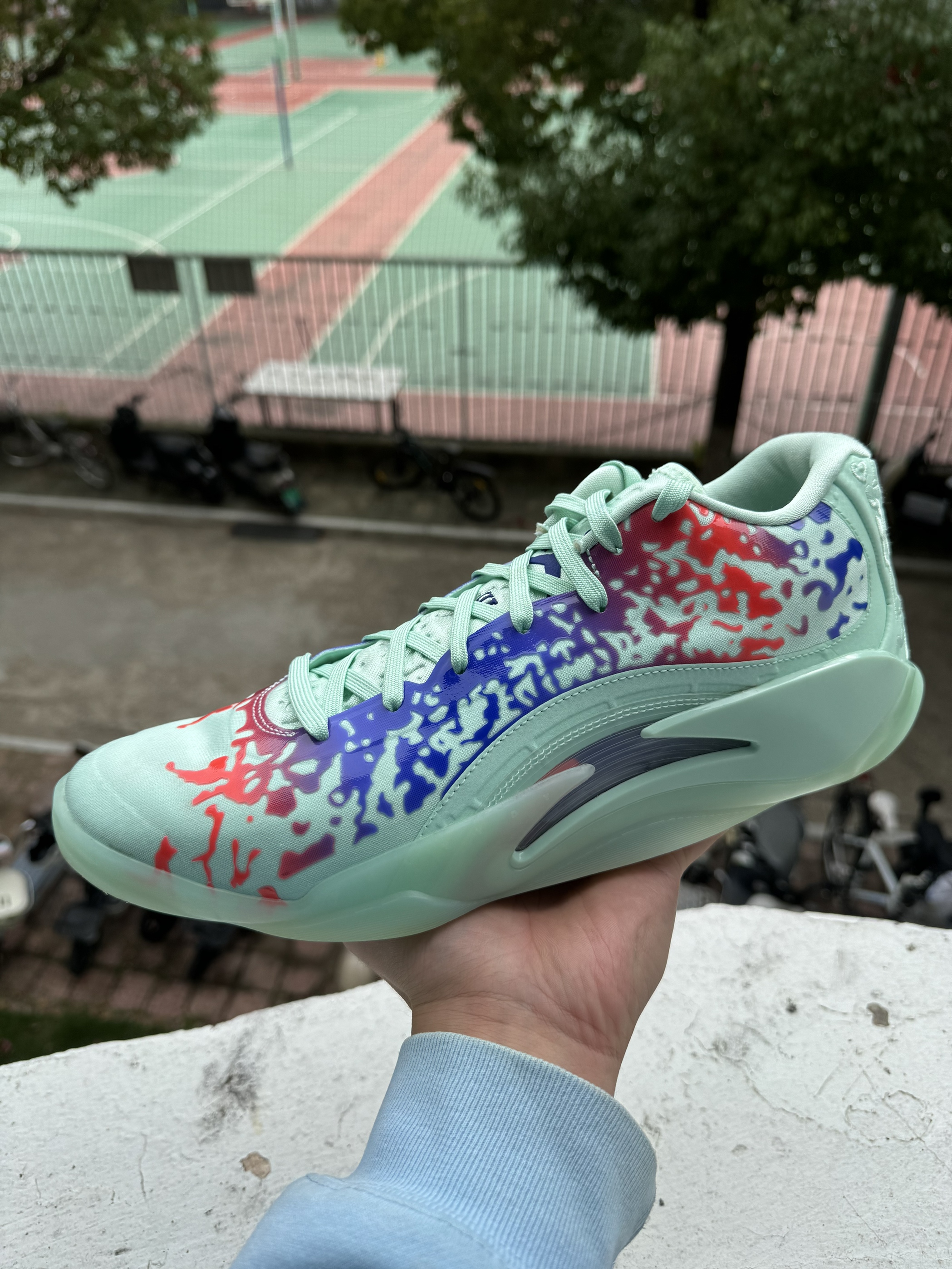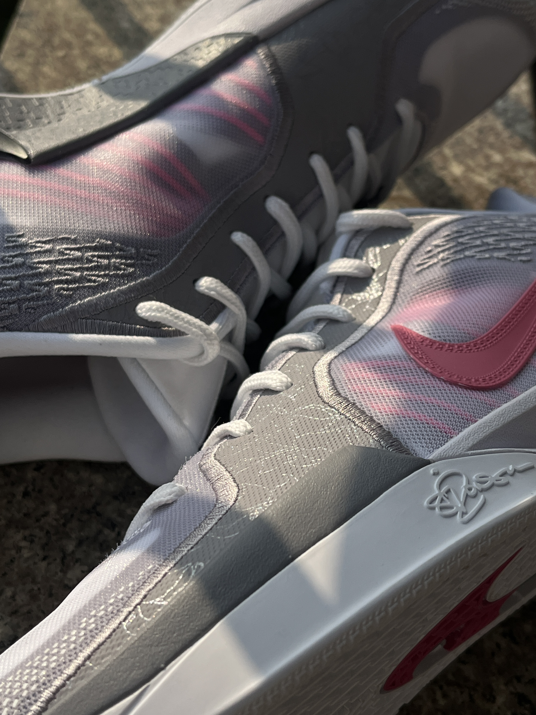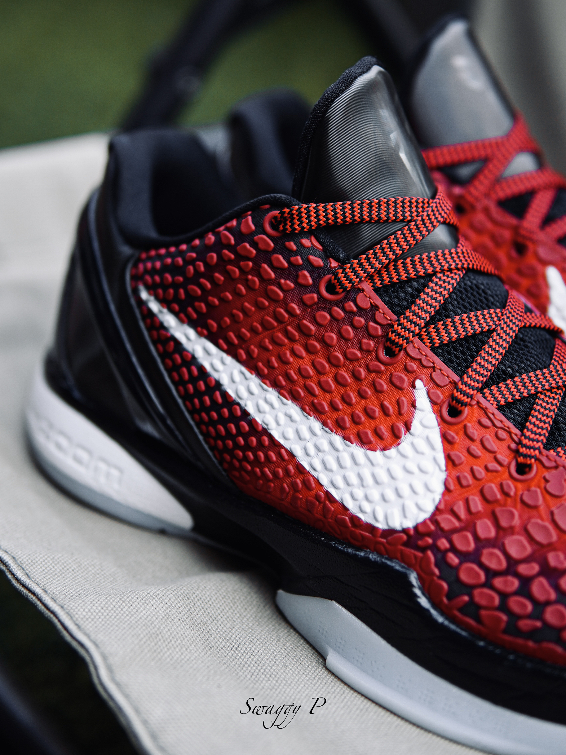 ZK6的这双复刻真的是太美式了,在网上看到很多球员都喜欢穿这双鞋。 👟球鞋名称 Kobe 6 Protro“All star”全明星 🔍设计亮点 鞋面是这双鞋最大的亮点,有点类似鱼蛇鳞的纹路,穿它上脚实战你的球风都能变帅来。 ⛹️实战感受(缓震/包裹/抓地力) 刚上脚的时候包裹感很好,室内抓地非常扎实,缓震的话,后跟有一块马蹄形ZOOM,就是后跟泡棉太软了,不是很稳定