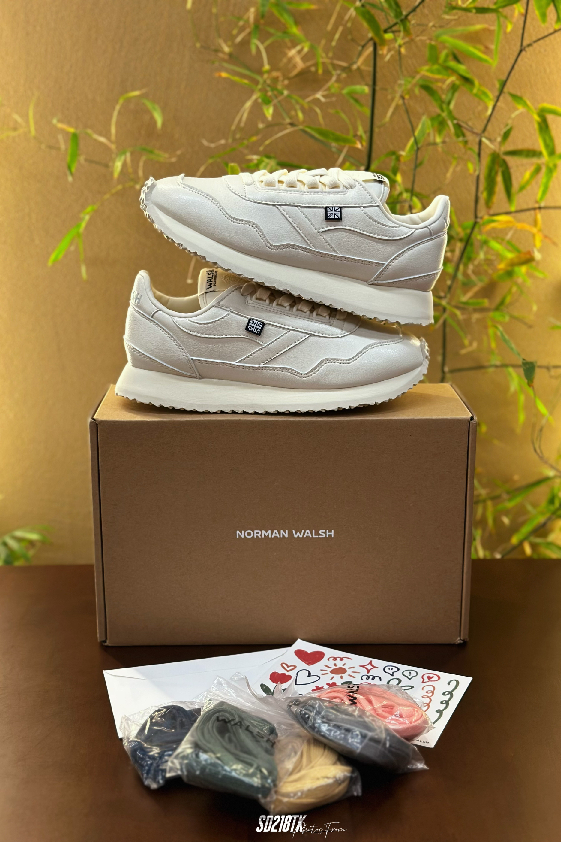 🎆球鞋介绍 我入手了一双norman walsh的Ensign系列,以前是专门为参加马拉松设计的,如今这双鞋在还原当年的经典设计的同时,利用外侧加固踵部杯垫和采用自洁橡胶鞋底,焕发出全新的生命力。刚好来到一家咖啡厅喝咖啡,感觉他的质感和这里很搭。 🎇尺码搭配 这双鞋我入的女码,不偏码,按日常穿搭选择就好。这次入的是新的全白皮质,还另外搭配送了五幅彩色的鞋带,因为是...