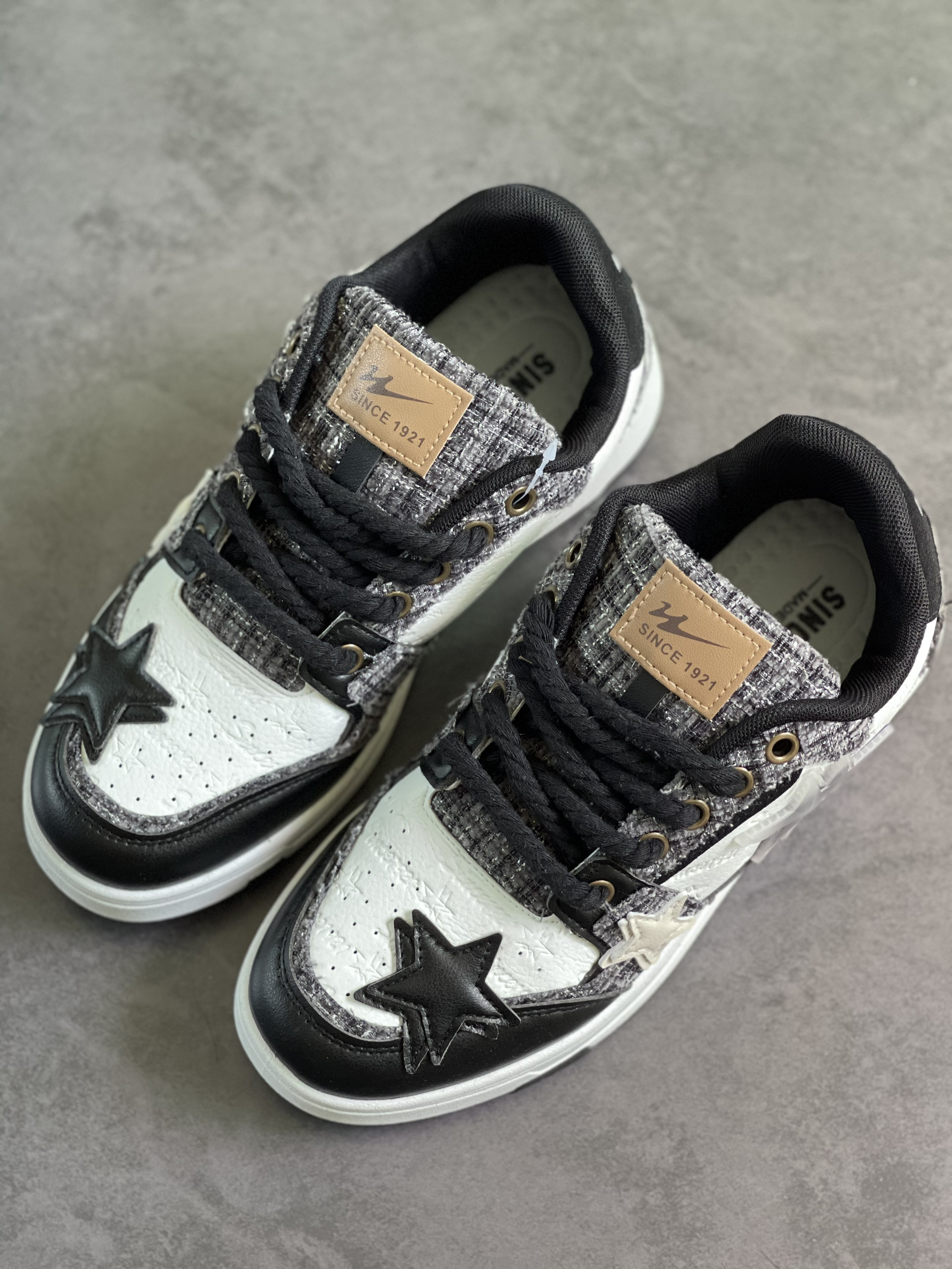 黑白双星直戳我心巴 这双板鞋真的很百搭❕ 鞋子整体的配色由黑色组成 鞋头和侧边采用了白色跟帆布的拼接 更显质感和层次感 脚感ji度舒适 鞋底不硬 码数正 按正常选择即可✅