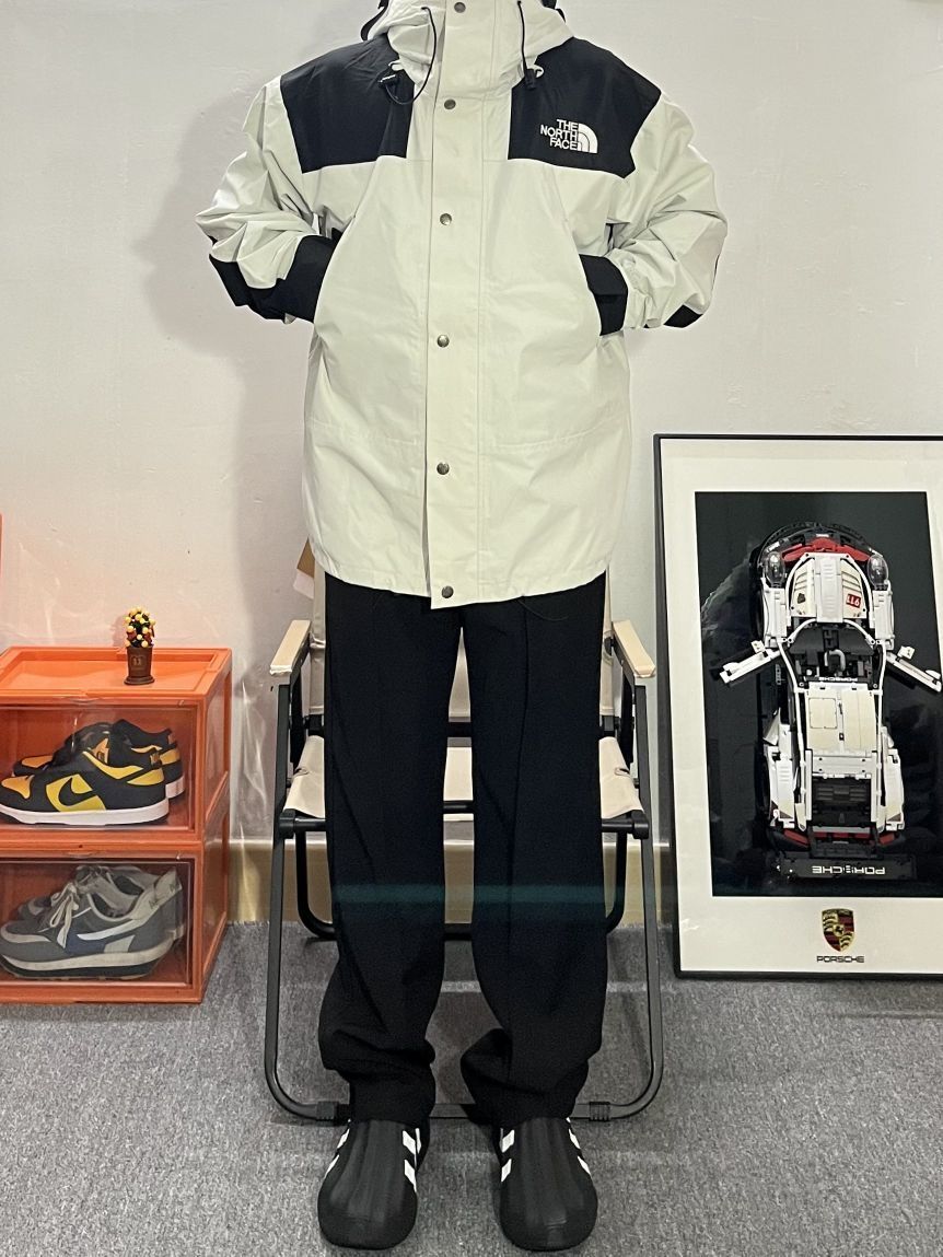 哈喽这里是pupu同鞋🏄🏻♂️ ——————————— · 👔:北面冲锋衣 白黑色颜值真的很好看 上身很帅 秋冬防风防水才能扛得住☁️ 上身无压力但是保暖是真的保暖 · 👖:直筒休闲裤 中间压条设计高级不单调 简约休闲日常通勤很百搭✔️ · 👟:adidas fom ——————————— 💁🏻♂️:170/115 以上都是个人观点🍟欢迎讨论