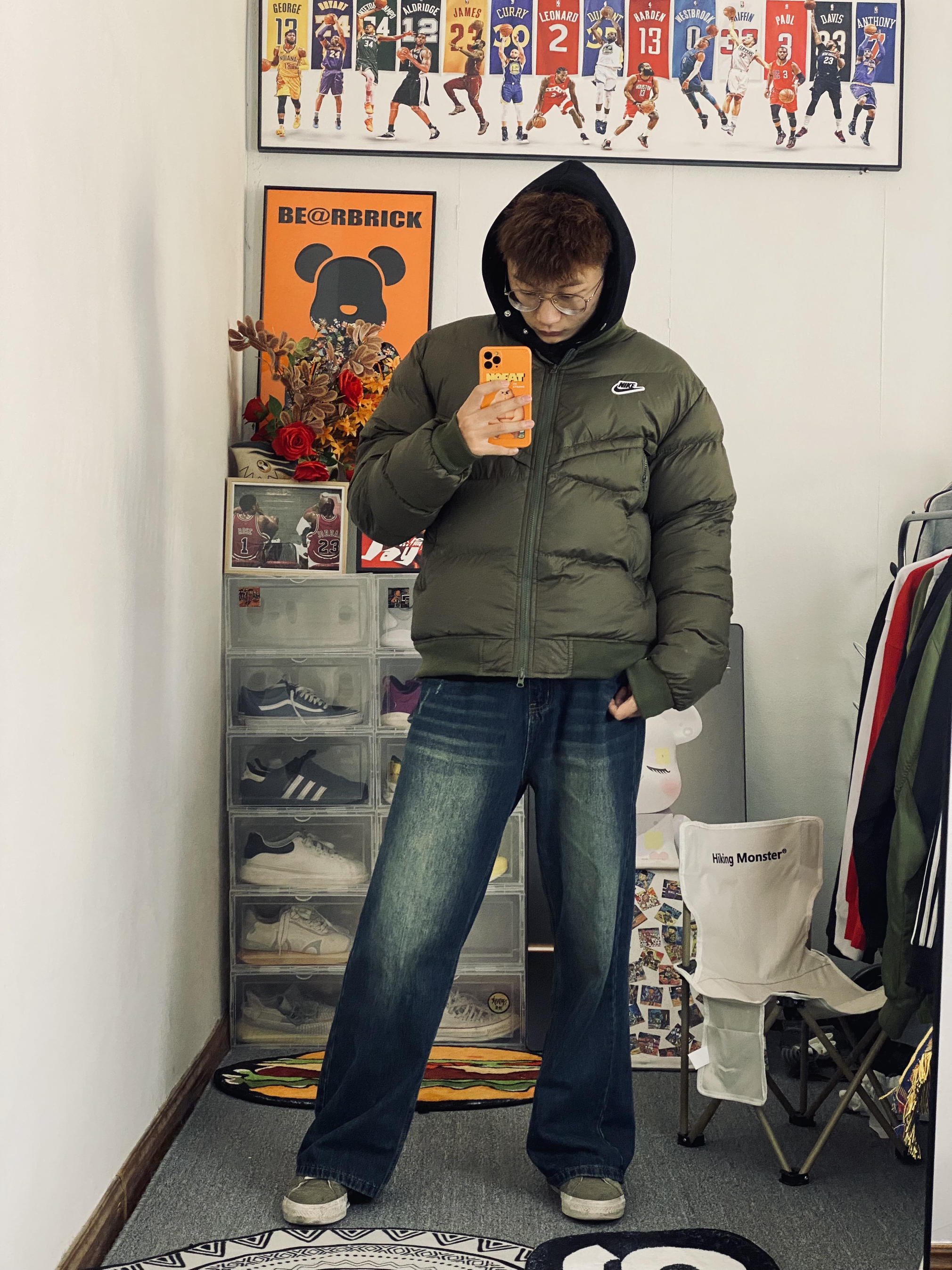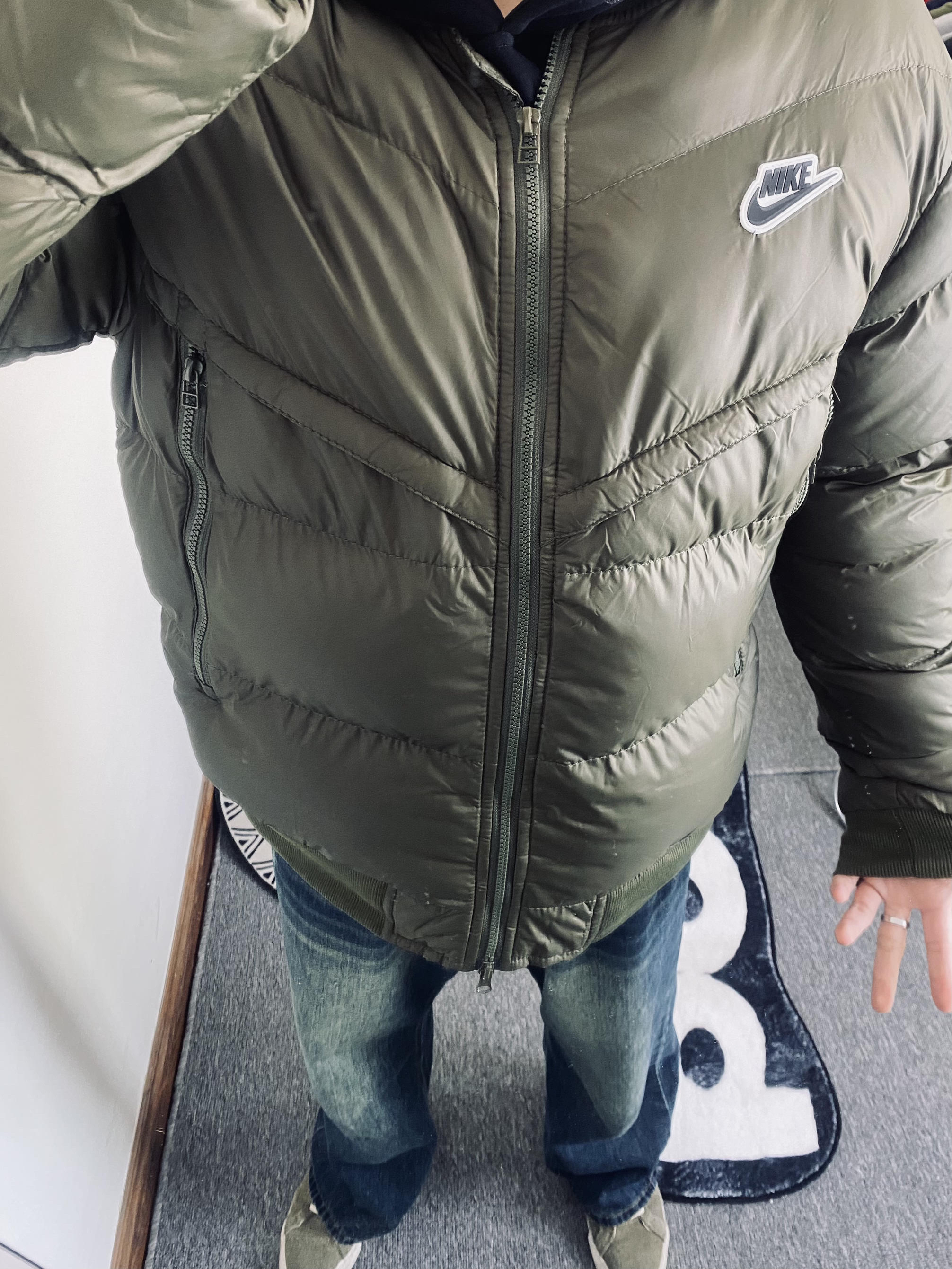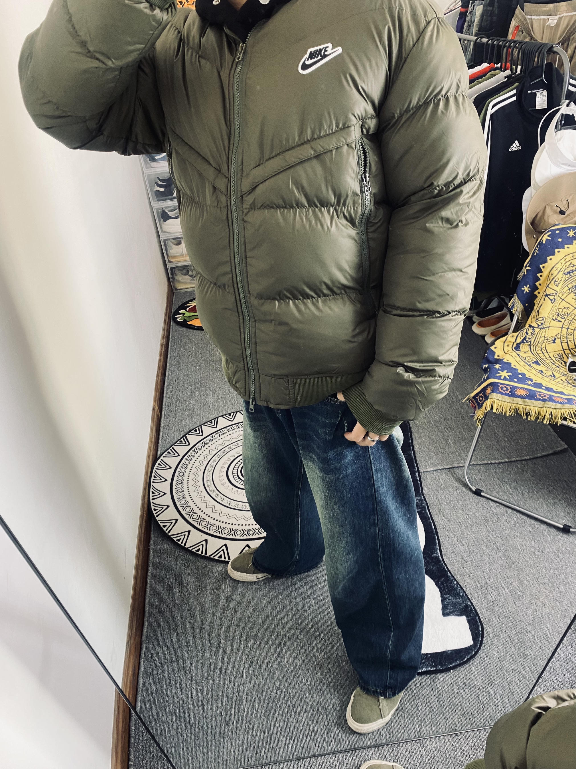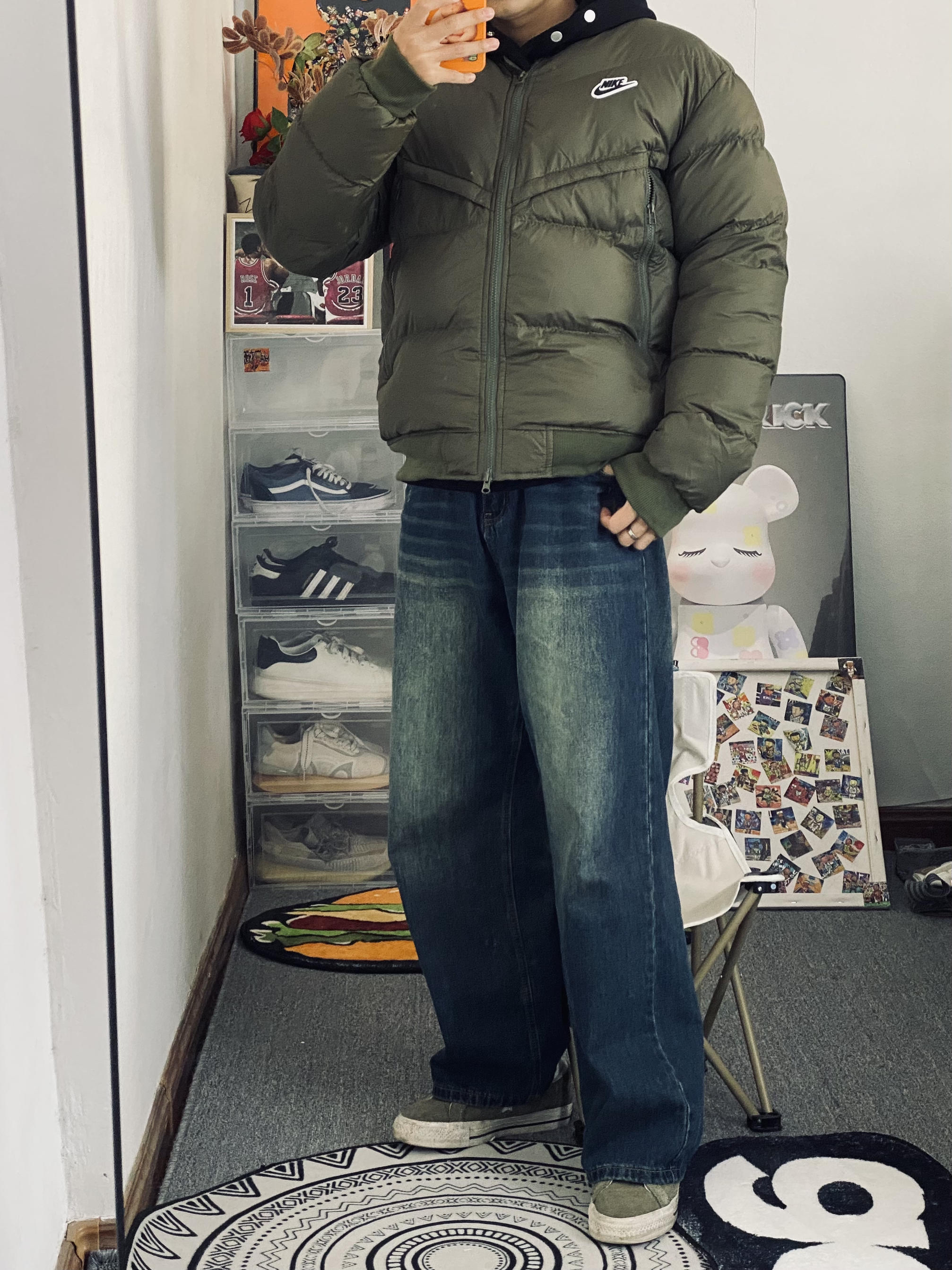 本篇笔记关联了Nike AW 拉链小Logo徽标运动保暖立领飞行员防风短款羽绒服 男女同款 DV4275 绿、复古痞帅水洗拖地牛仔裤 23051616 基础色等商品,为用户提供真实的使用体验和购买参考。