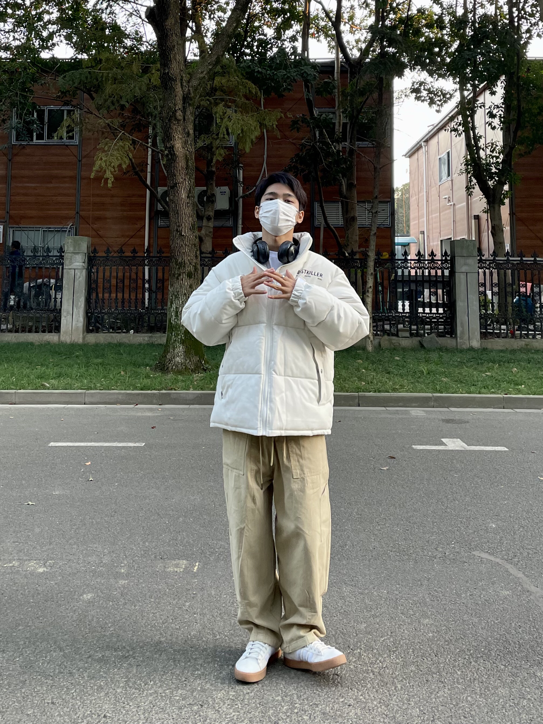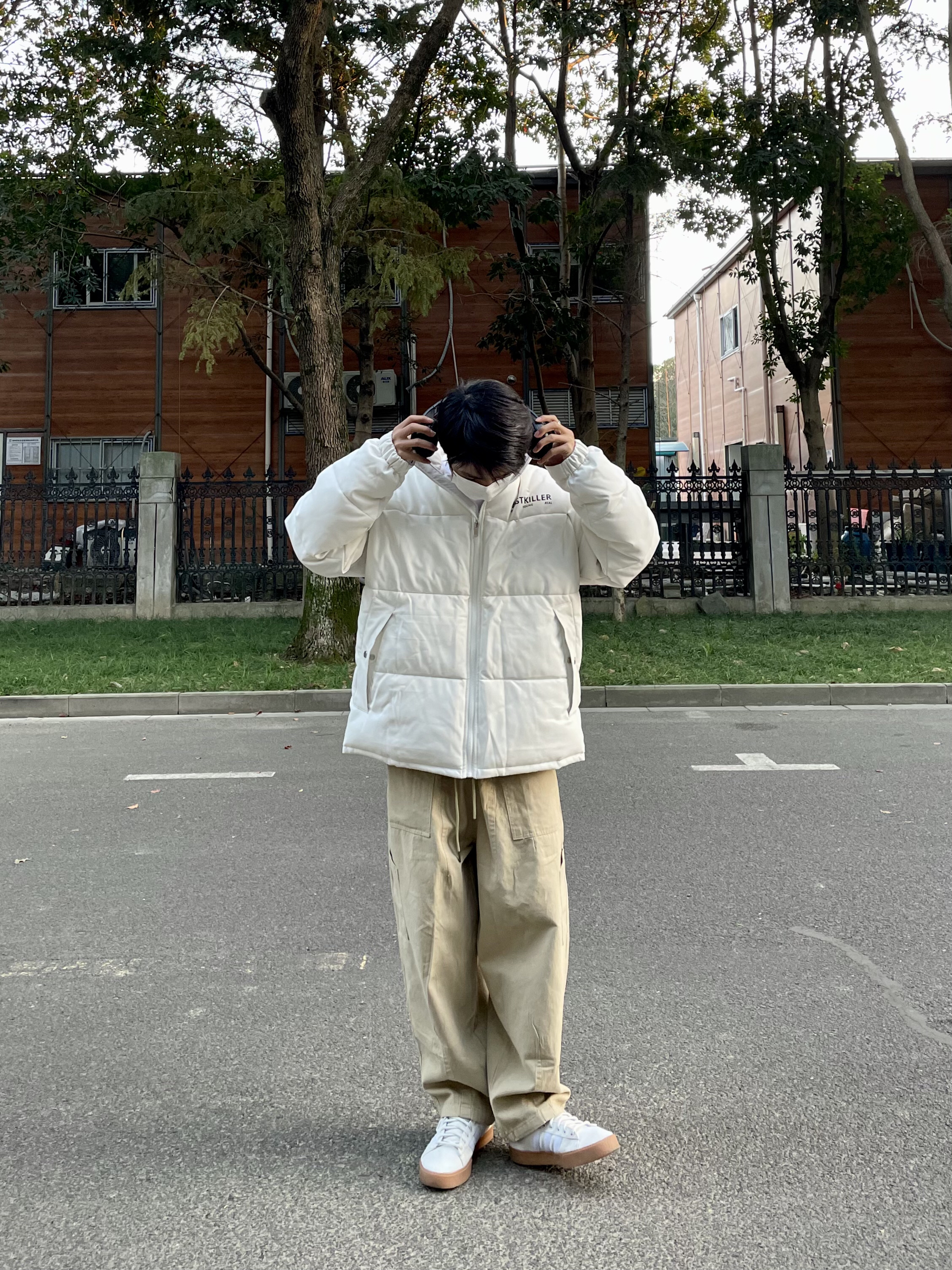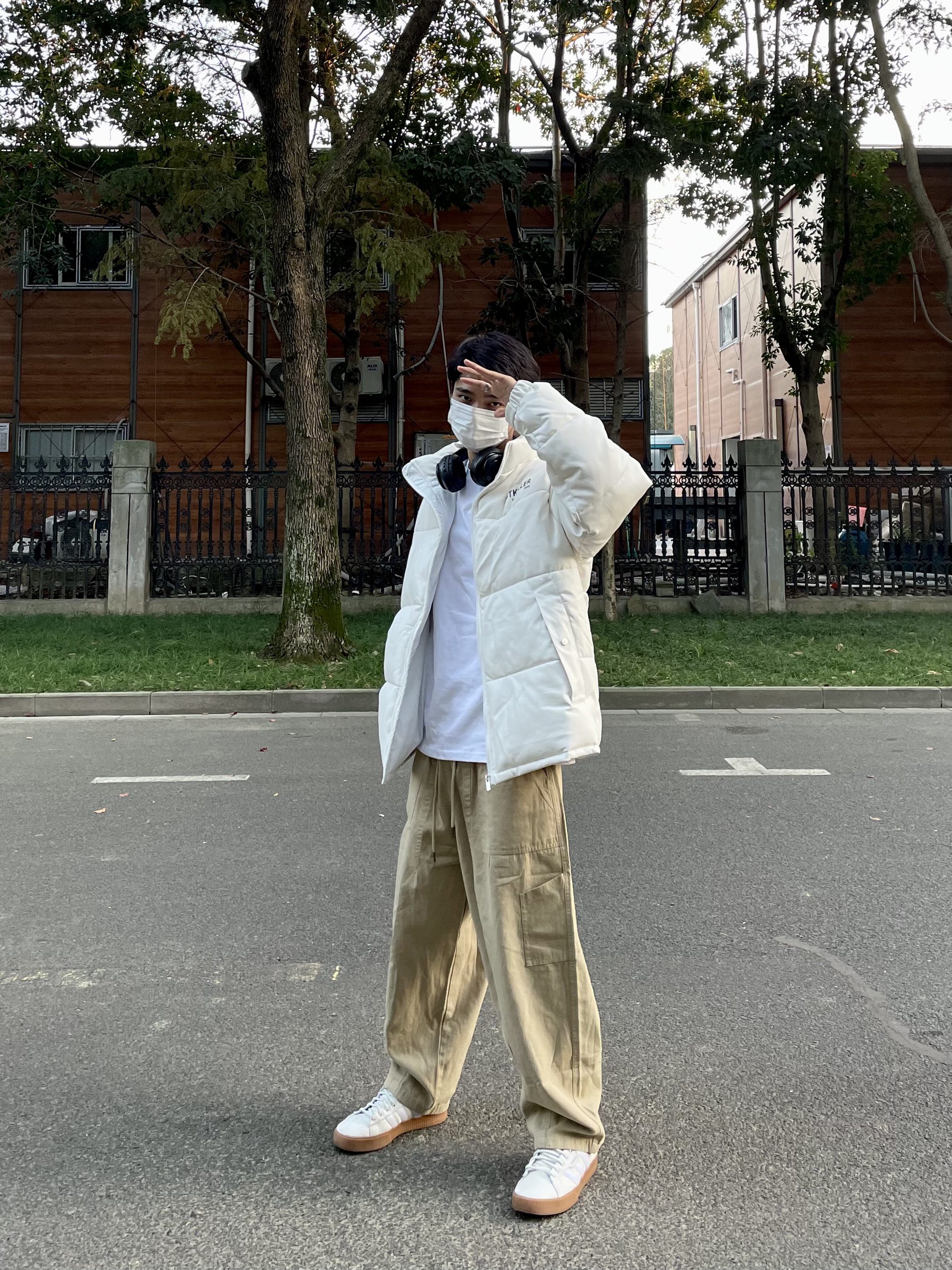 上衣:字母印花PU皮棉服 下装:卡其色直筒休闲裤 棉服很厚实北方也能抗🤪