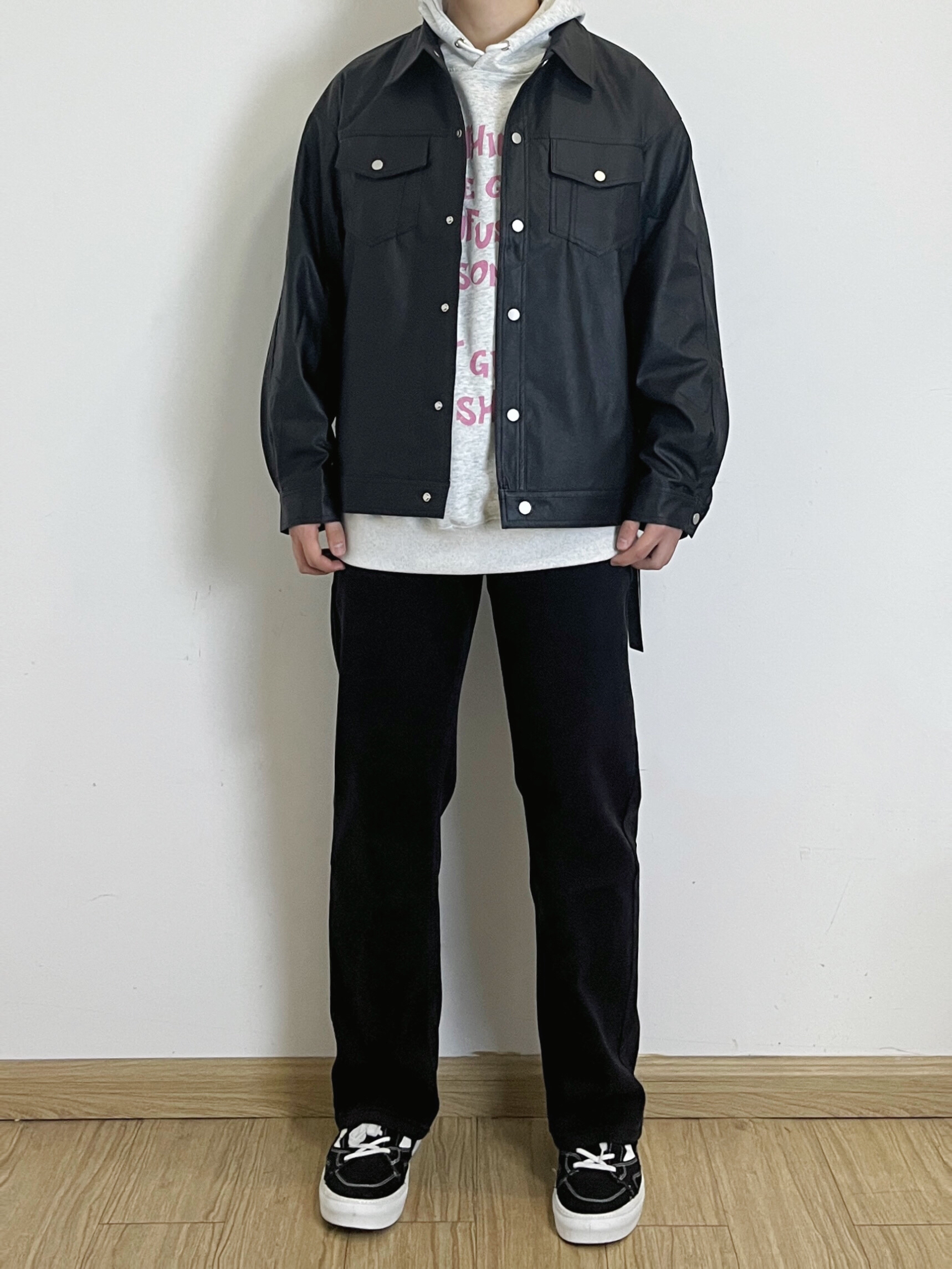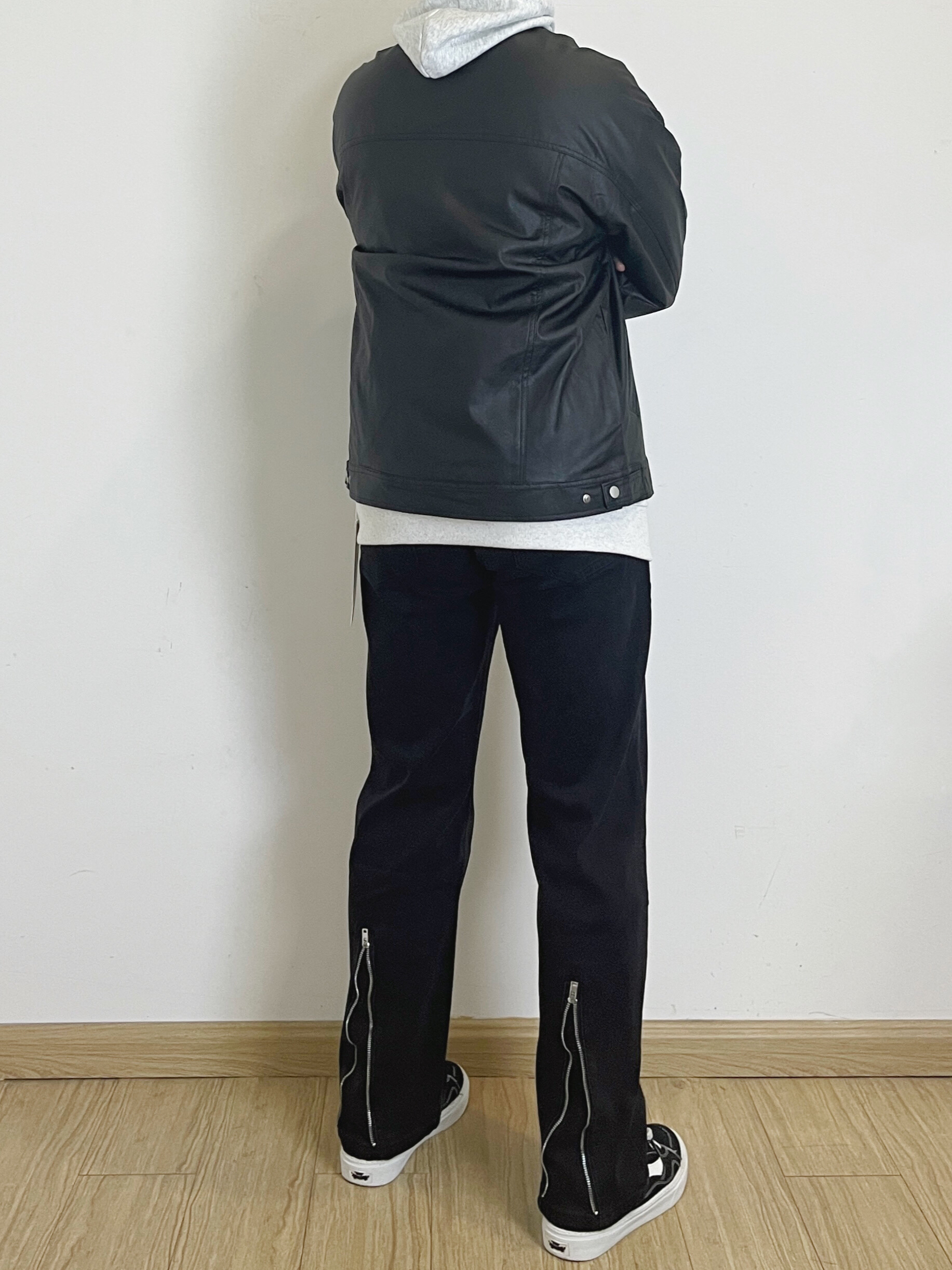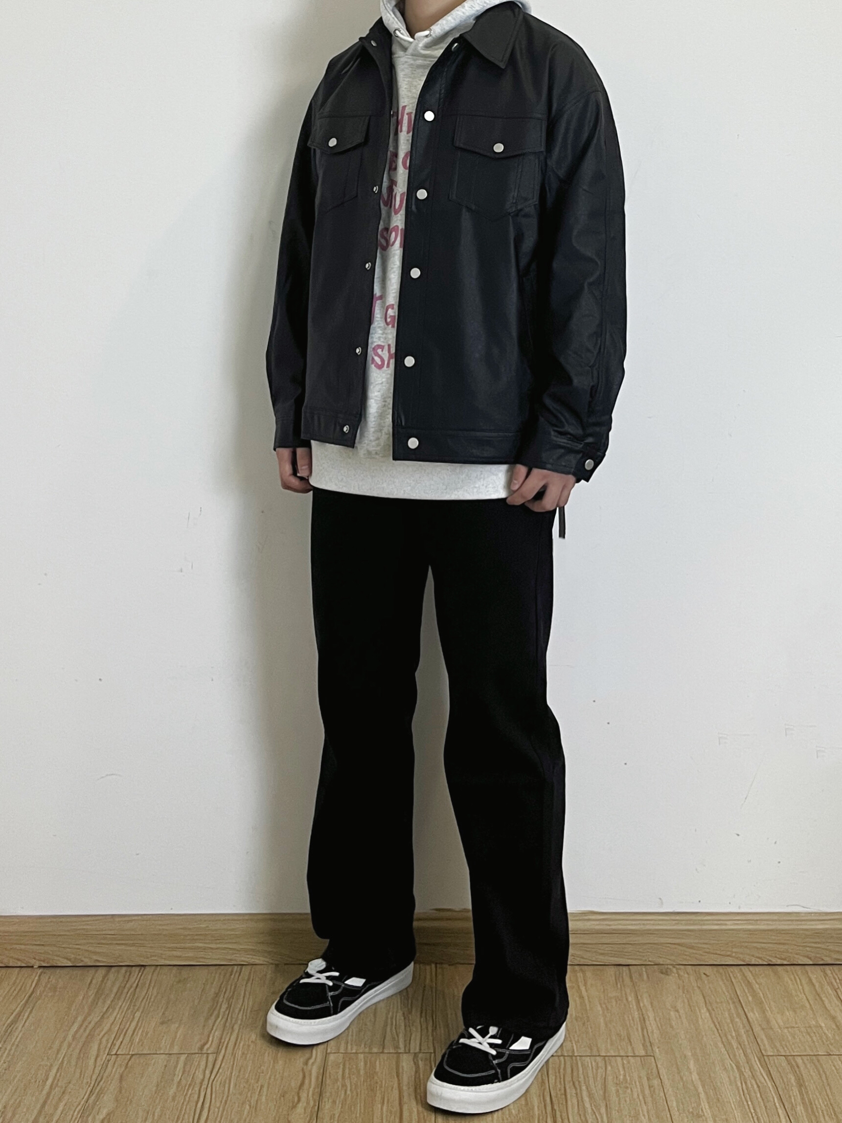 😼身高178体重68 美式穿搭分享~ 兄弟们入冬穿搭想要帅 叠穿少不了啊 黑色美式复古飞行员皮衣夹克叠穿花灰色连帽卫衣 再搭配上黑色美式拉链牛仔 一身黑的搭配加上了灰色对点缀更具美式复古感啊 牛仔的拉链设计真的太酷了 喜欢美式穿搭的兄弟秋冬快试试叠穿