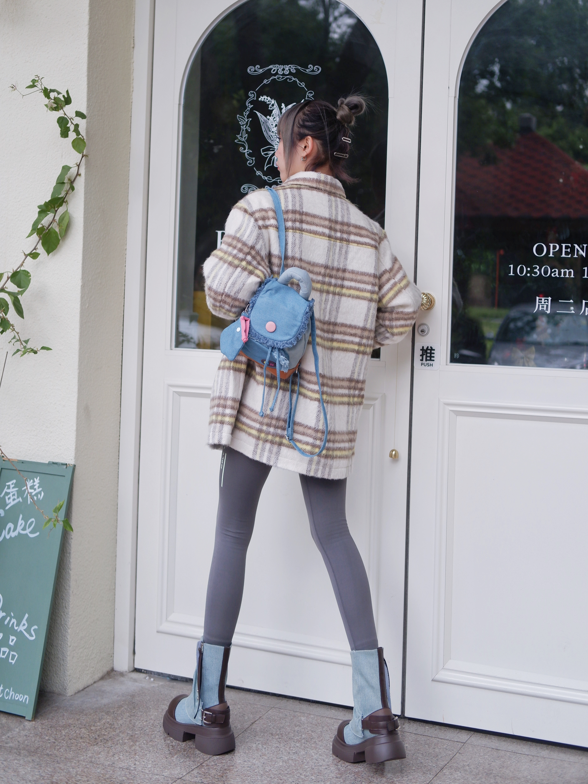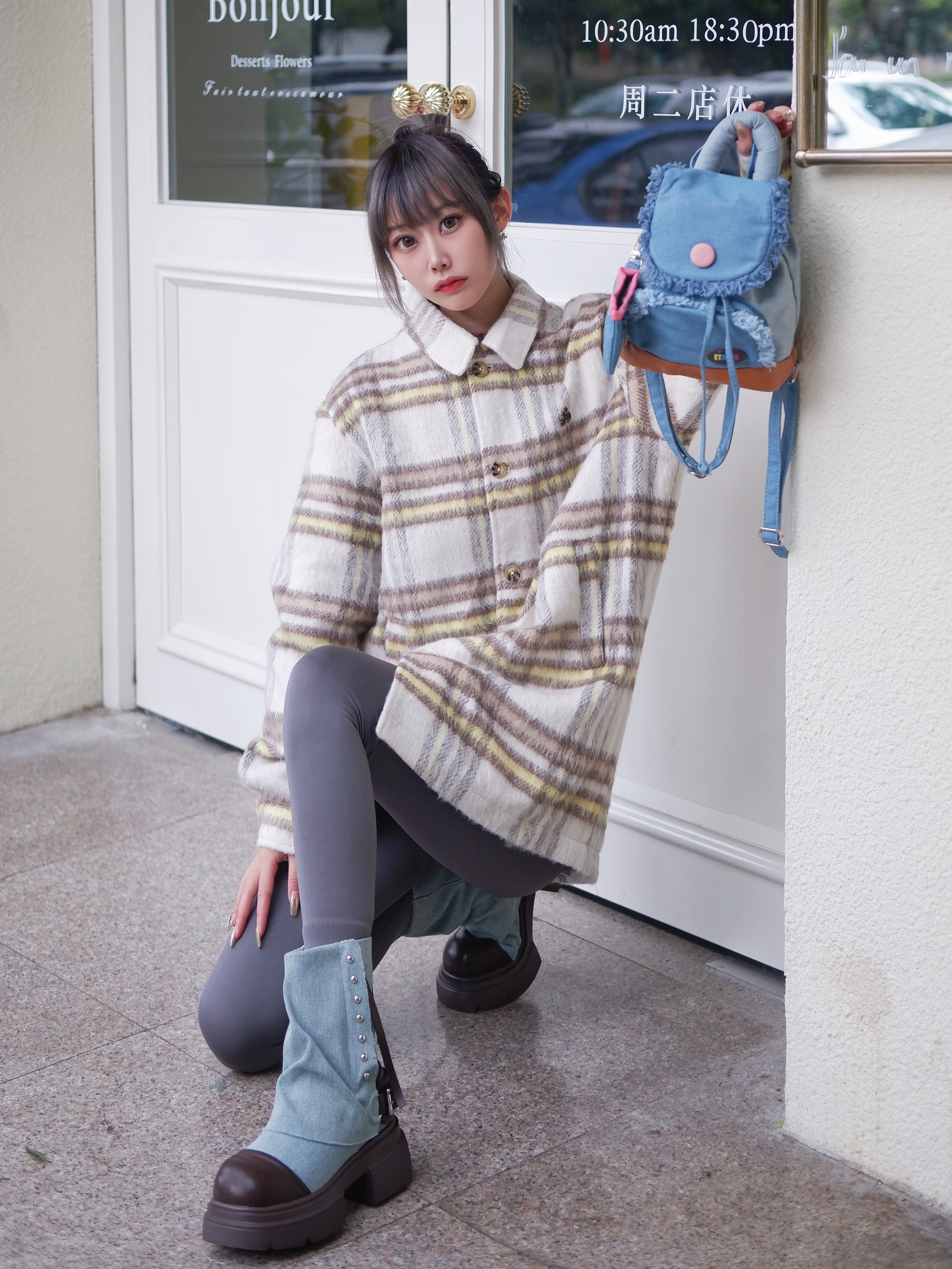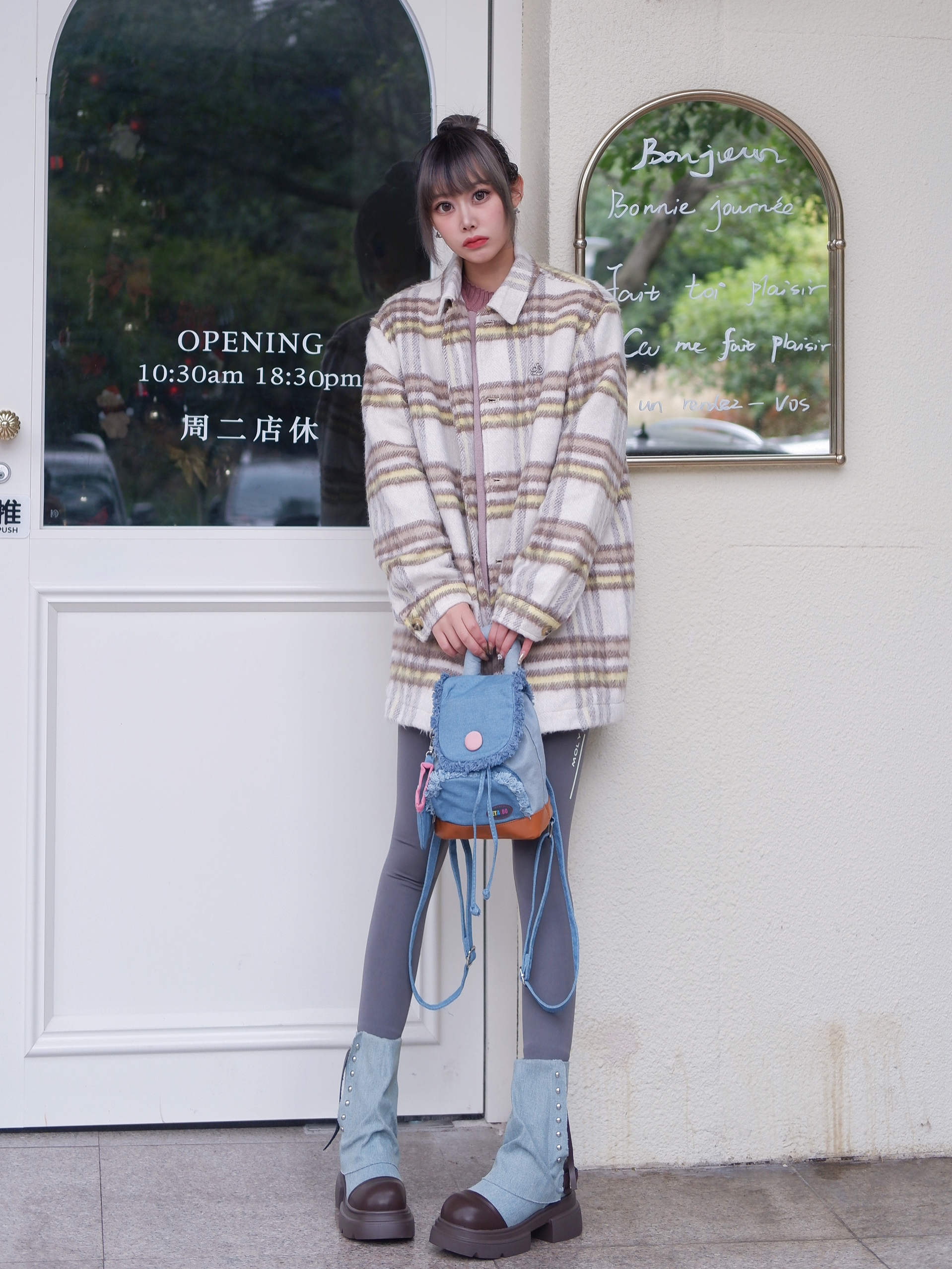 天气可以冷❄️,高颜值穿搭可不能减~ 谁能不爱格子外套呢‼️ 复古慵懒感真的太爱❤️ 宽松版型不挑人 面料软糯舒适 格子控百搭休闲感十足💯 搭配紧身裤真的很显瘦⚡️ 马丁靴直接省去堆堆袜的环节~ 颜色是复古牛仔蓝💙和咖色🤎的撞色~ 再来一个牛仔双肩包🎒 马卡龙般色彩款式设计在线😎 全开口设计像旅行箱包 容纳笔记本完全🆗 有了靓包的点缀,穿搭就很加分啦👍 没get 到的宝子有的难咯 👔: D...