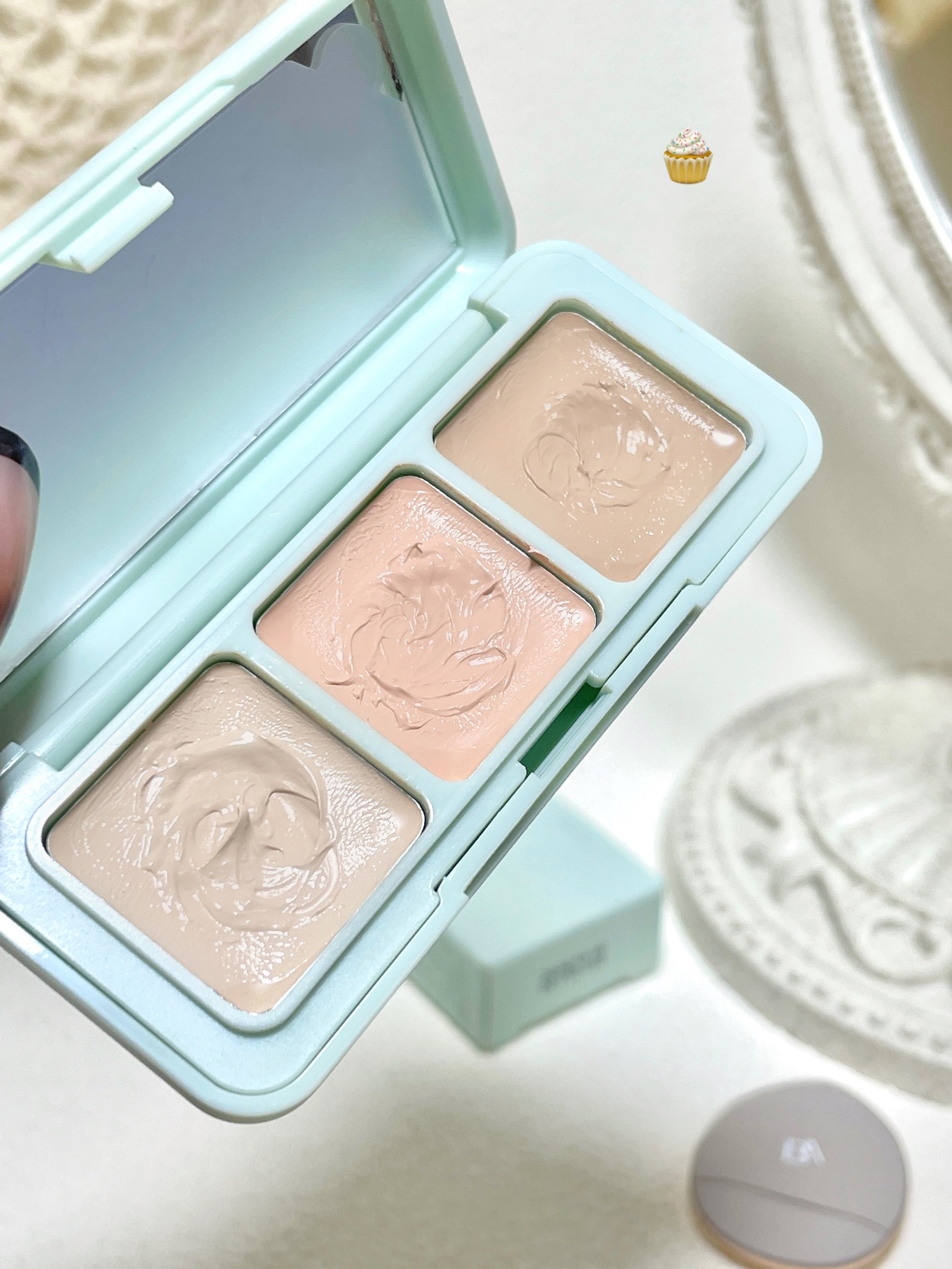 一盘让我这个干皮相见恨晚的遮瑕! 三个基础色 亮肤色+三文鱼色+深肤色 万能公式随意搭,全脸瑕疵皆可get~ 质地是和奶油一样丝滑一点也不干! 拍开以后融肤感很不戳 一层就把瑕疵遮的七七八八啦 还搭配了一个可可爱爱的mini粉扑 犄角旮旯的地方都可照顾到 芭贝拉遮瑕!活该你在遮瑕界有一席之地!