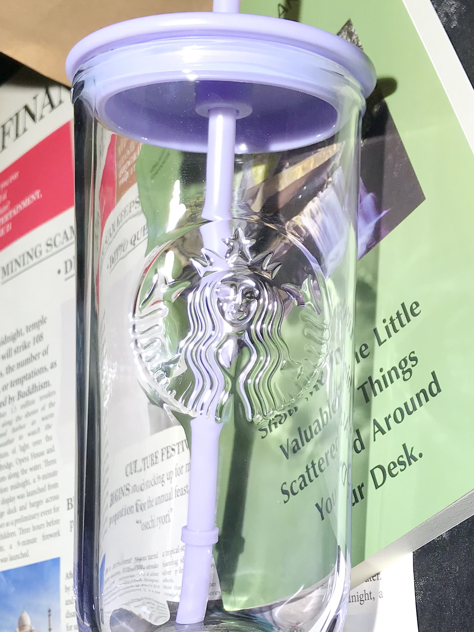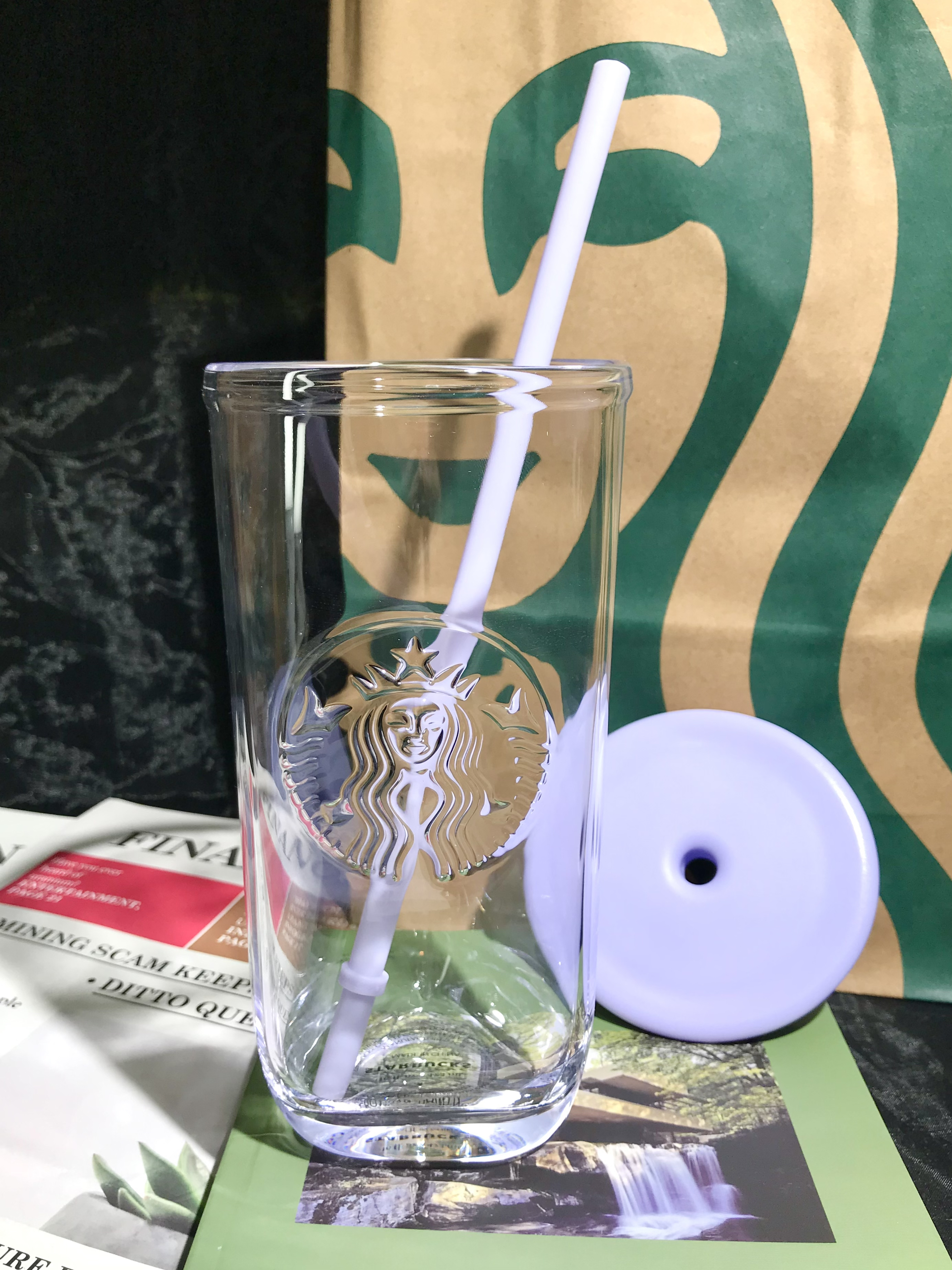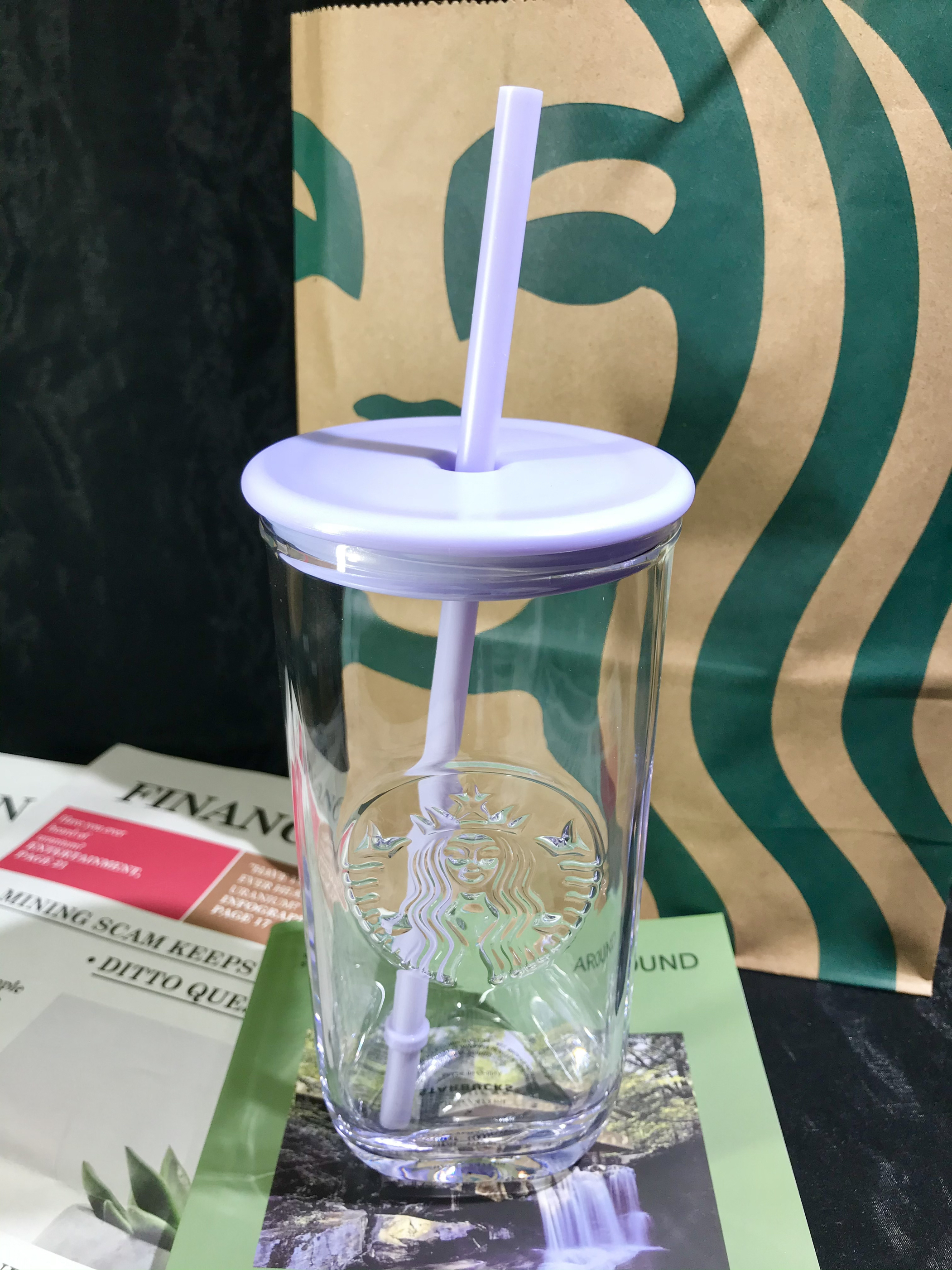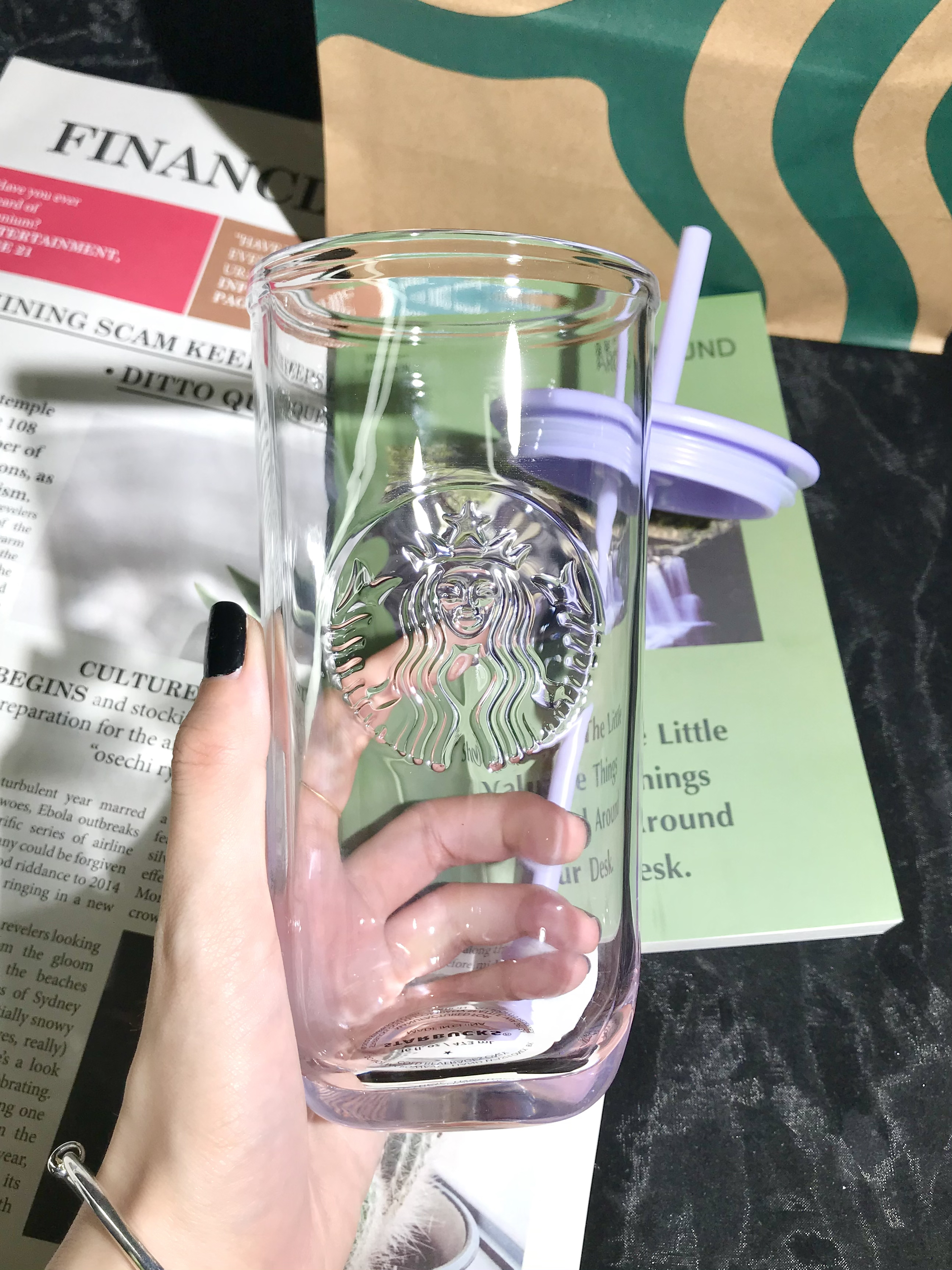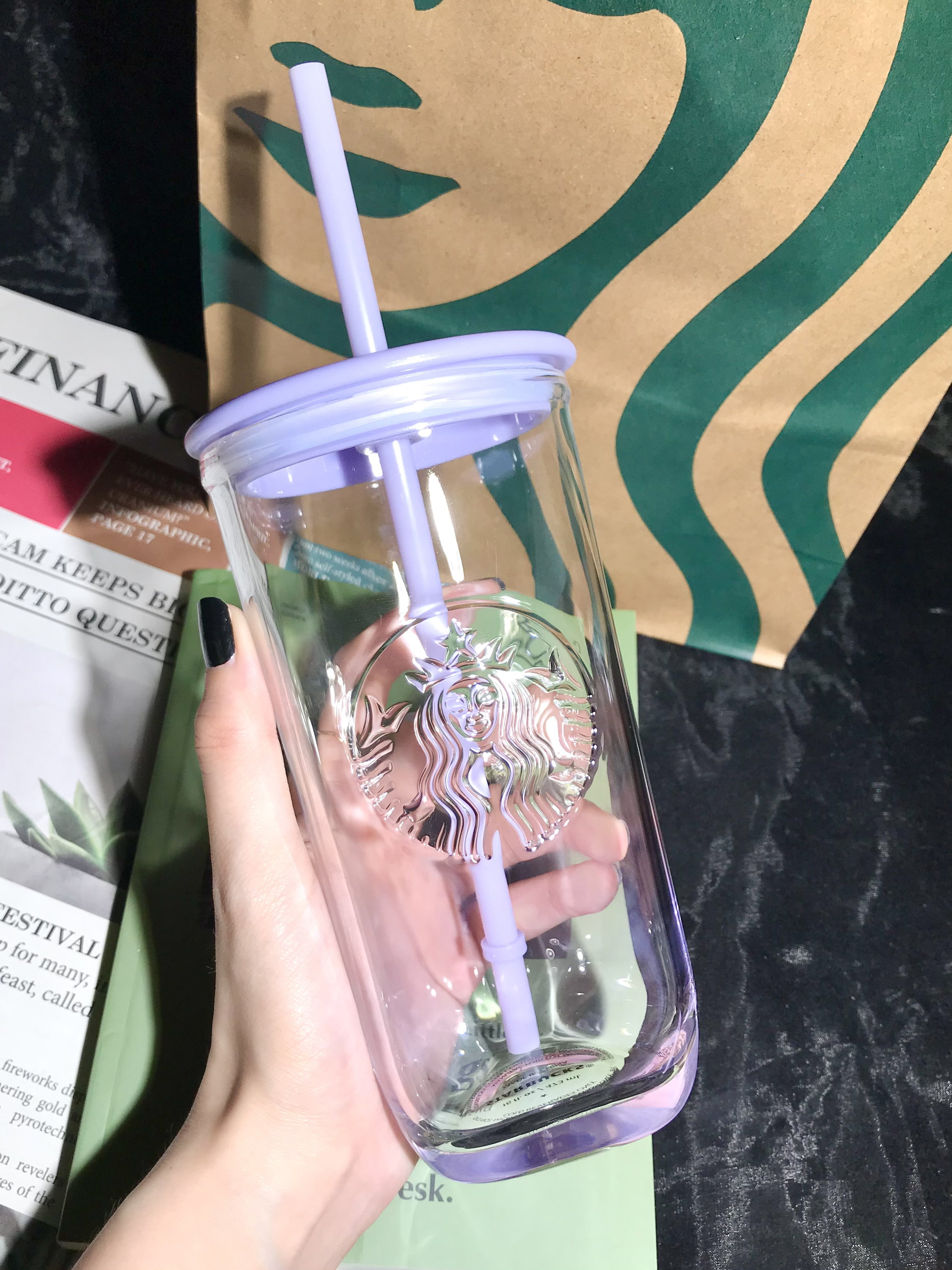 透紫玻璃杯~星巴克你是得懂浪漫滴! 星巴克新杯子! 萌宠系列三角底吸管玻璃杯~ 我真的太喜欢紫色啦! 我最近的咖啡+喝水搭子! 颜值超高 满满ins风!
