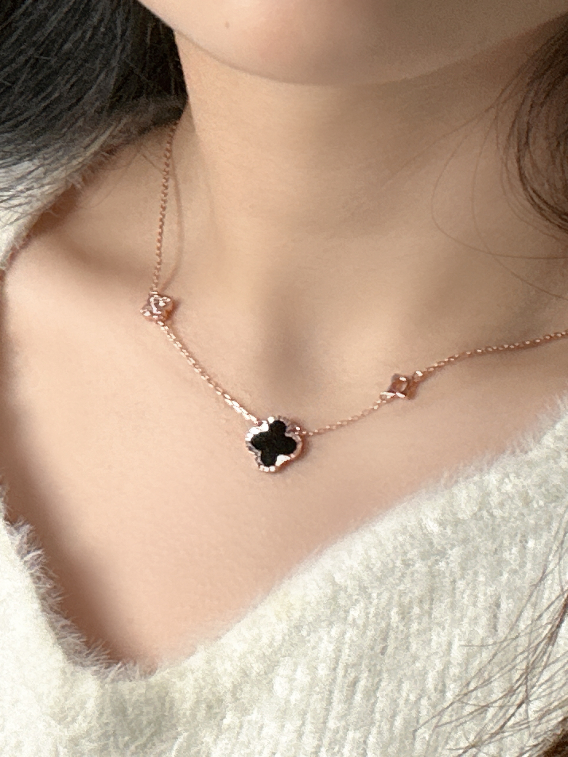 不得不说npy真的越来越会送礼物啦~ 这次恋爱四周年送了我四叶草项链 是双面黑玛瑙的四叶草 百搭又精致 四叶草也有很好的寓意🍀 男朋友希望我事事如意 幸福幸运 戴上去温柔又气质 太喜欢啦 希望我们的可以一直幸福快乐的在一起