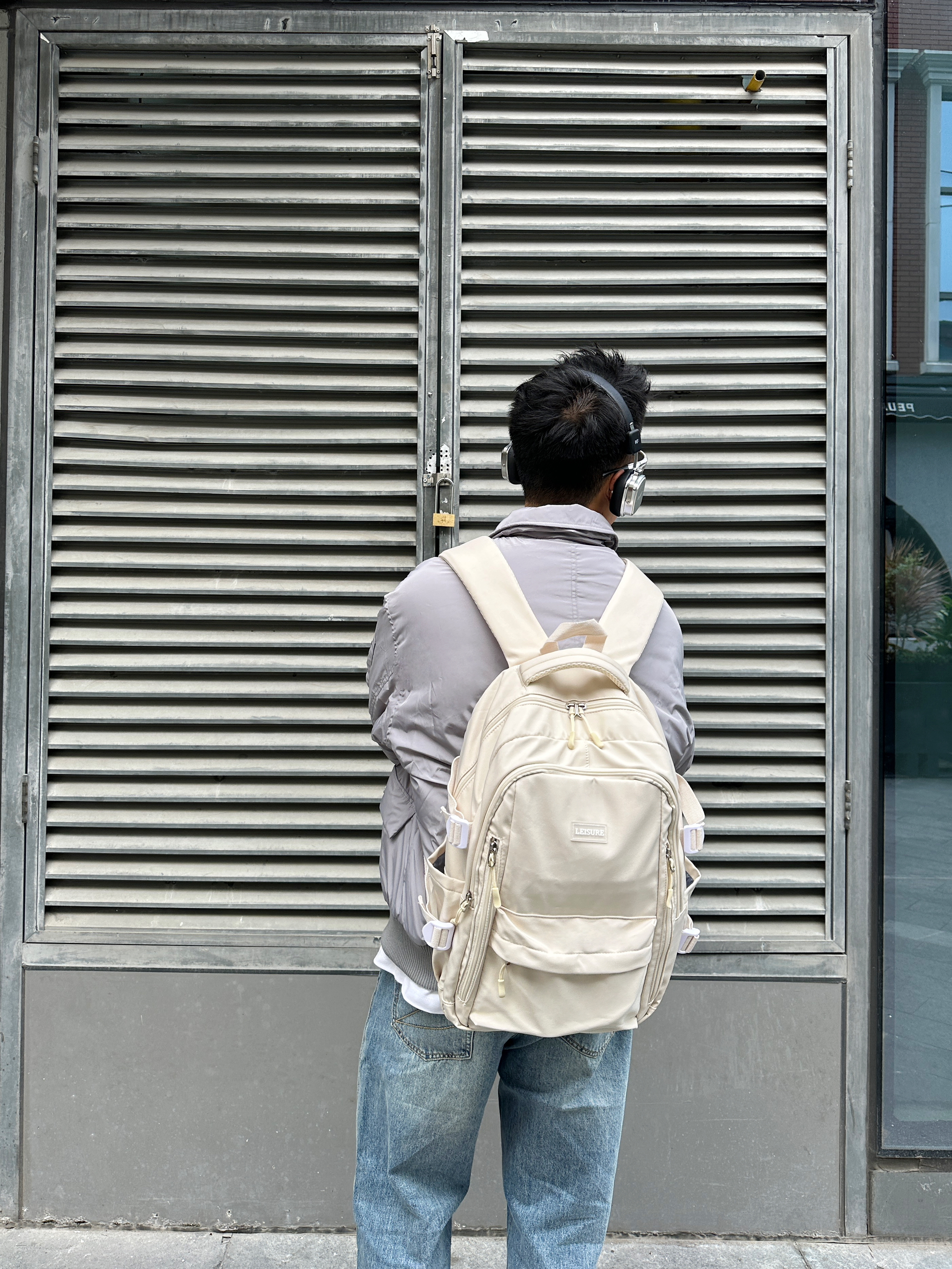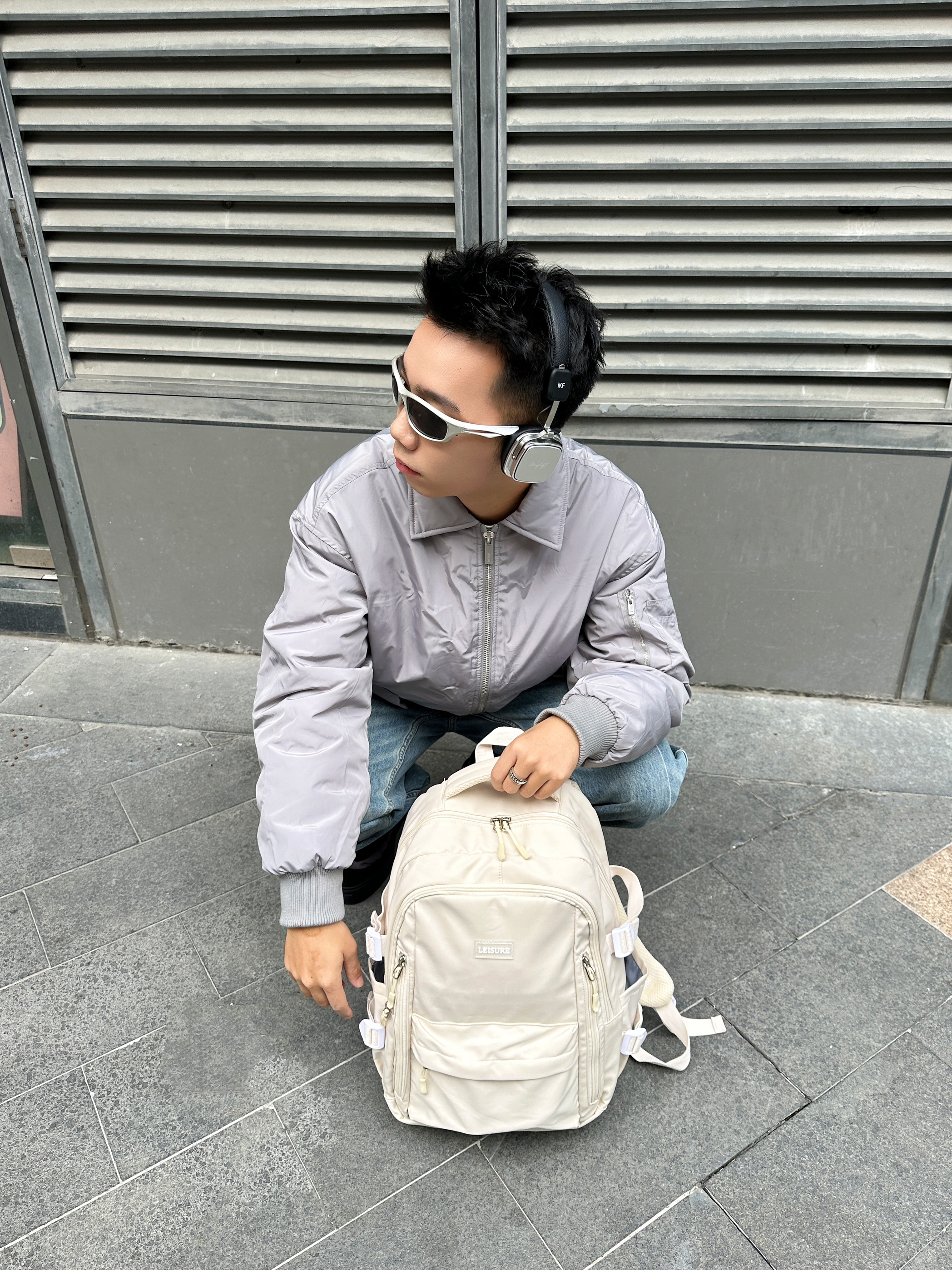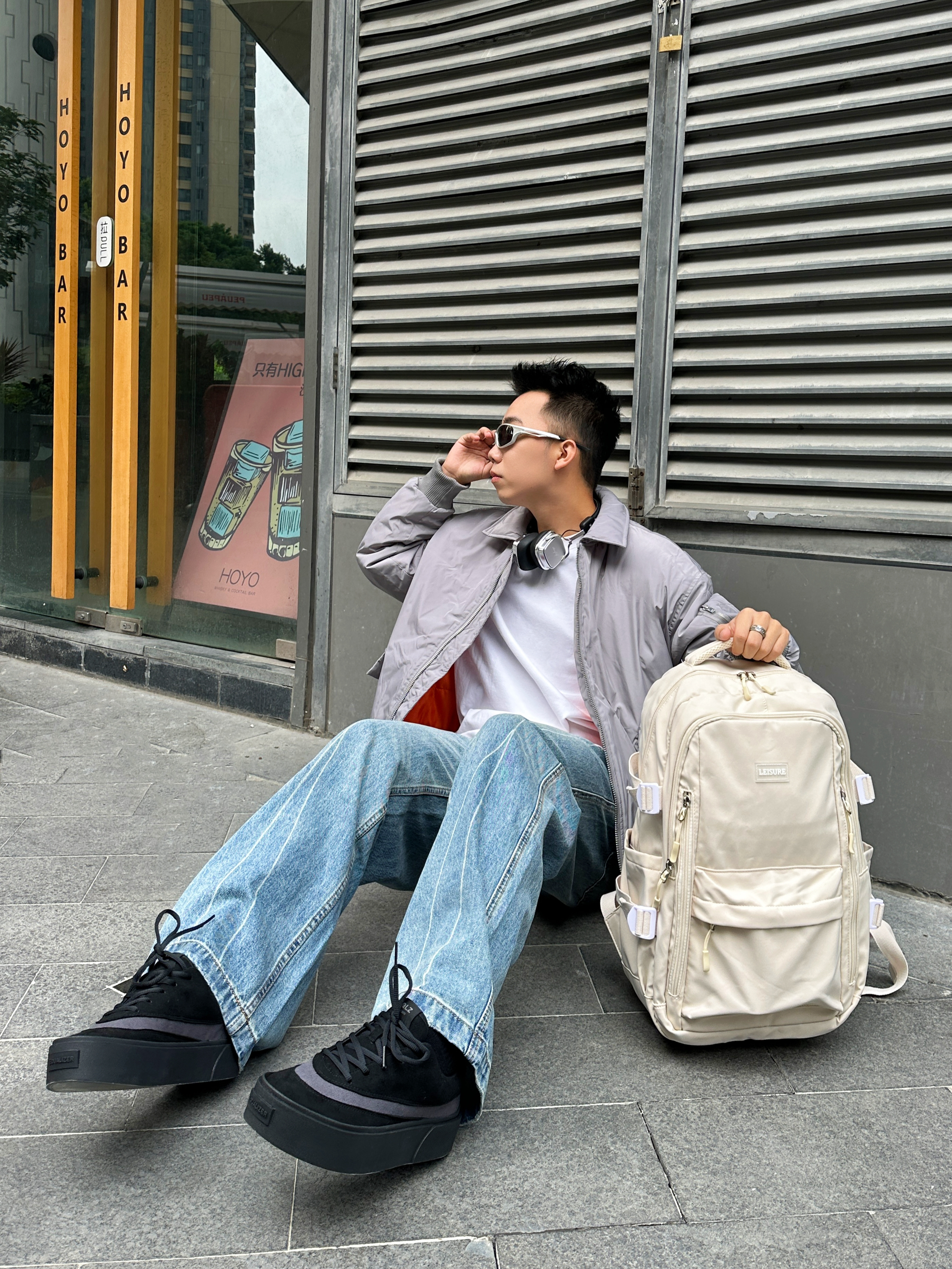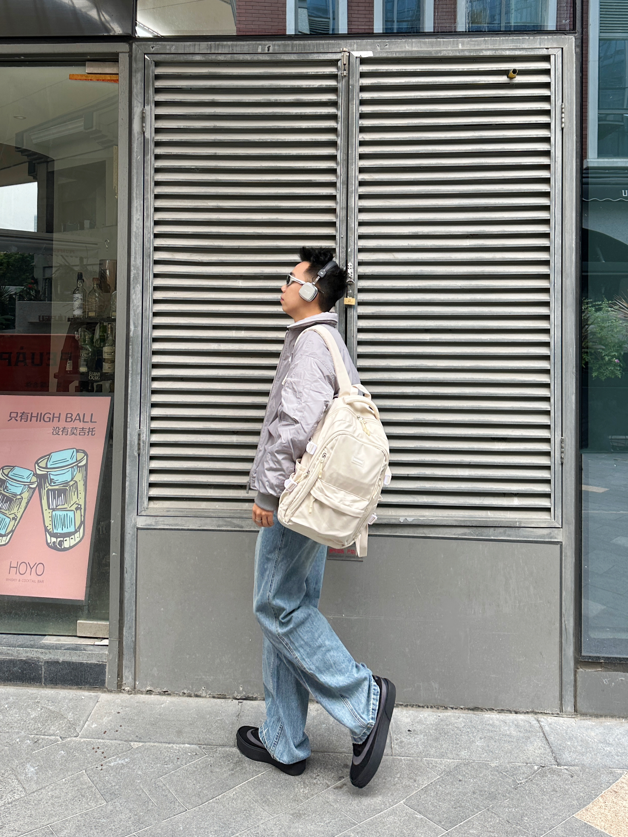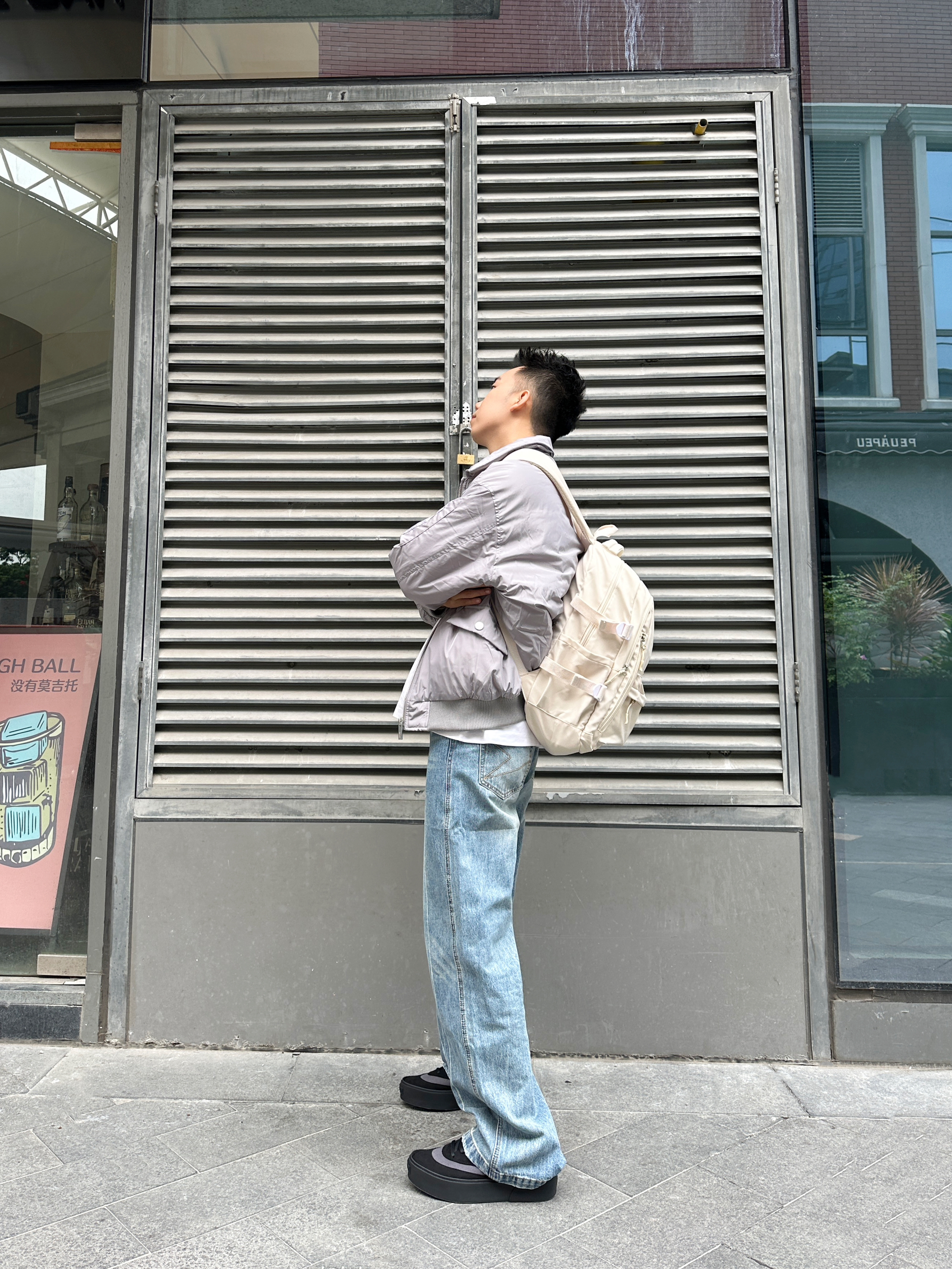 - 这两年来,cleanfit穿搭风格的大🔥 让更多人了解到简约穿搭的高级时尚感~ 所以呀,基础款也可以很帅气哦😯 - 上身浅灰色休闲夹克➕一条微喇牛仔长裤 这么基础的单品,搭配起来往往能出效果! 上脚再来一双EQLZ的黑色板鞋👟 🆒就完事~ - 通勤出门也得讲究功能性,这不背包🎒也得安排 米白色百搭双肩包,颜值在线而且实用! 好搭配衣服,关键是容量也大,上学旅游背它准没错👍 - 那么今天的穿搭就...