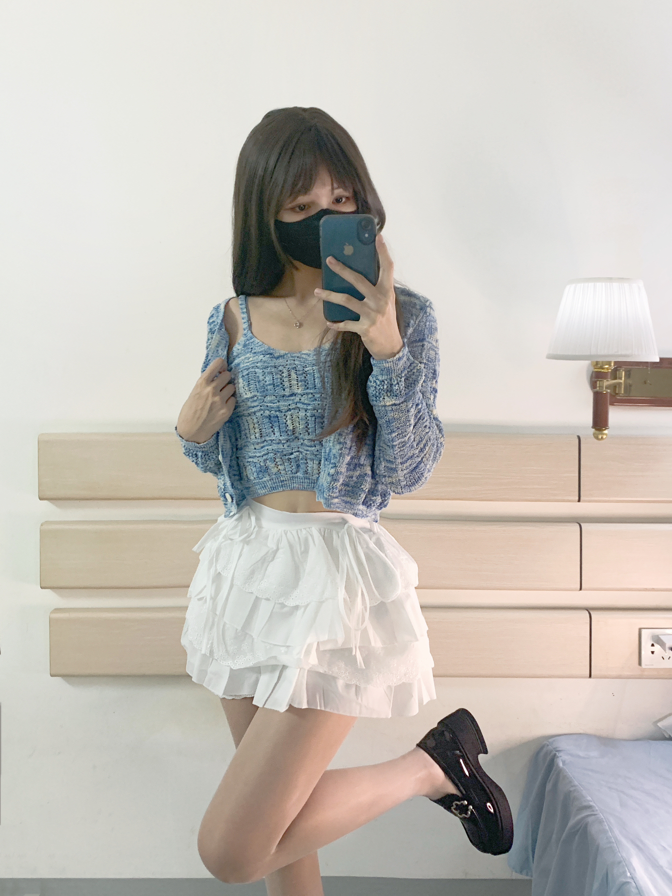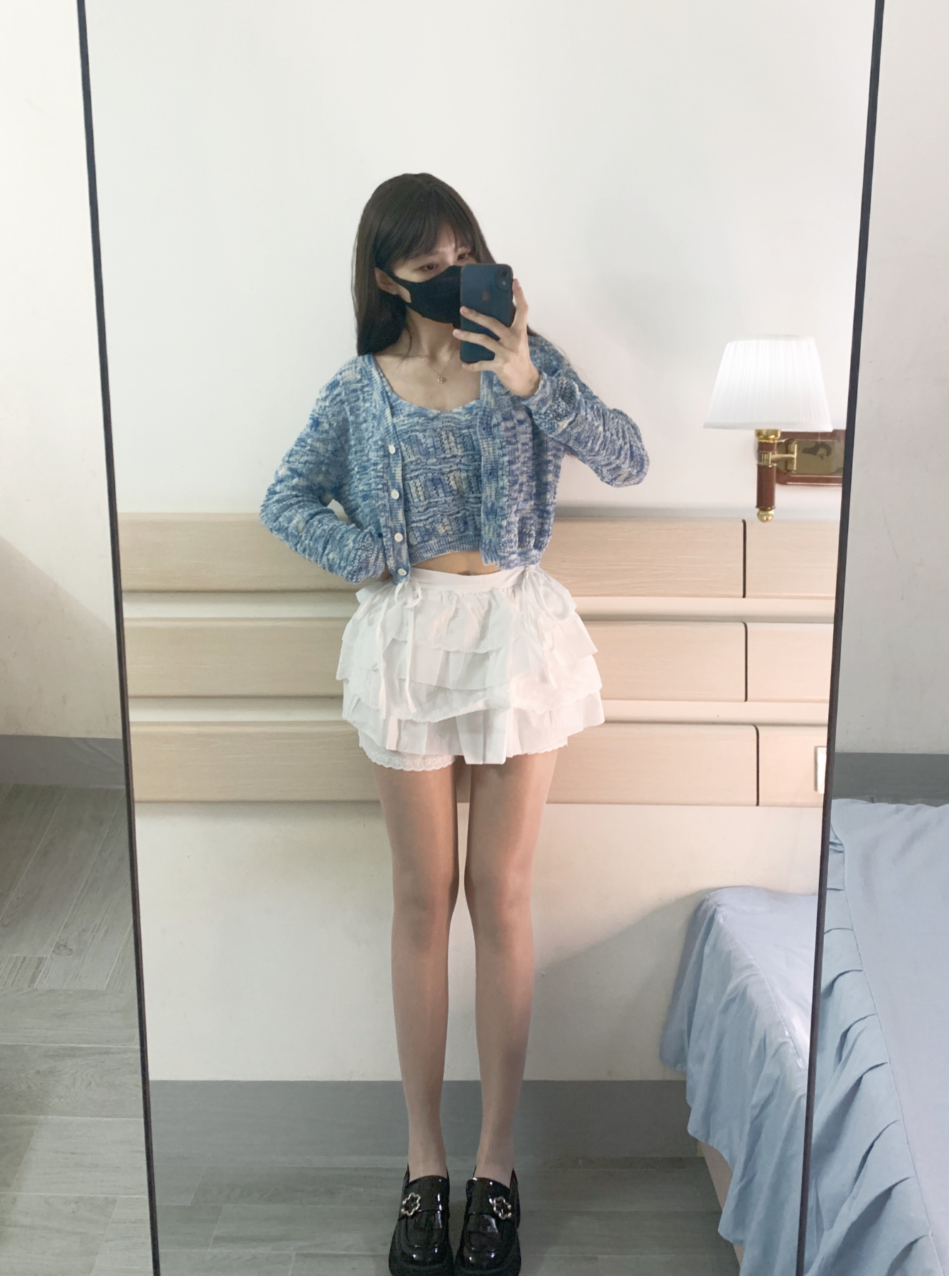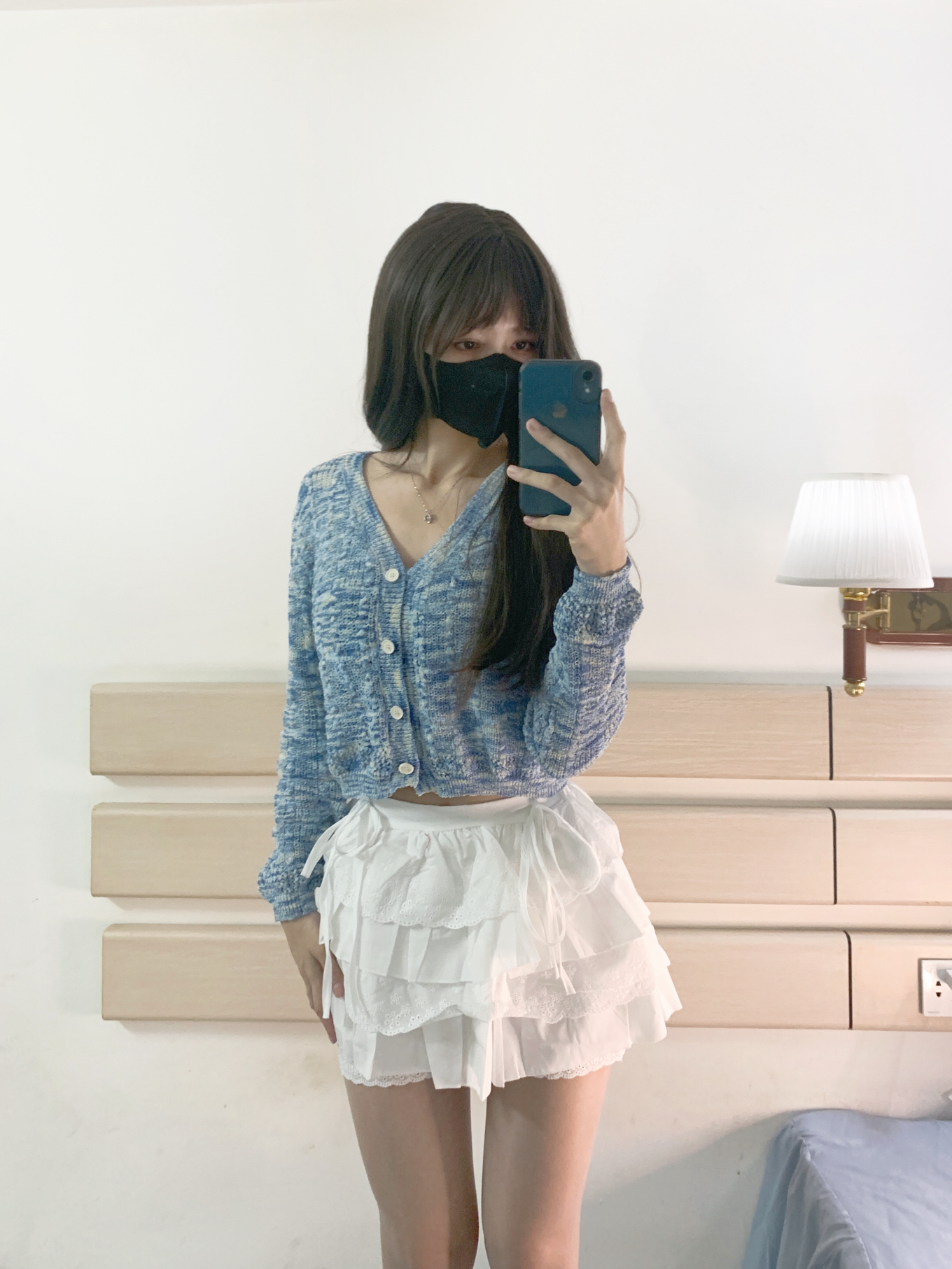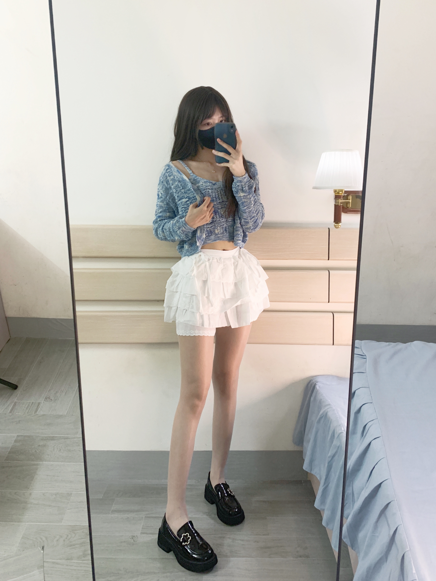 OOTD今天是一身清爽凉快穿搭~ 蓝色针织开衫➕小白裙 上蓝下白 整体的颜色很青春活力~ 这身搭配在视觉上很有清新感 还搭配了小皮鞋 淑女范十足哈哈哈 毛衣上身很舒服也不扎身! 这个蓝色也很衬肤色 显白不挑人!