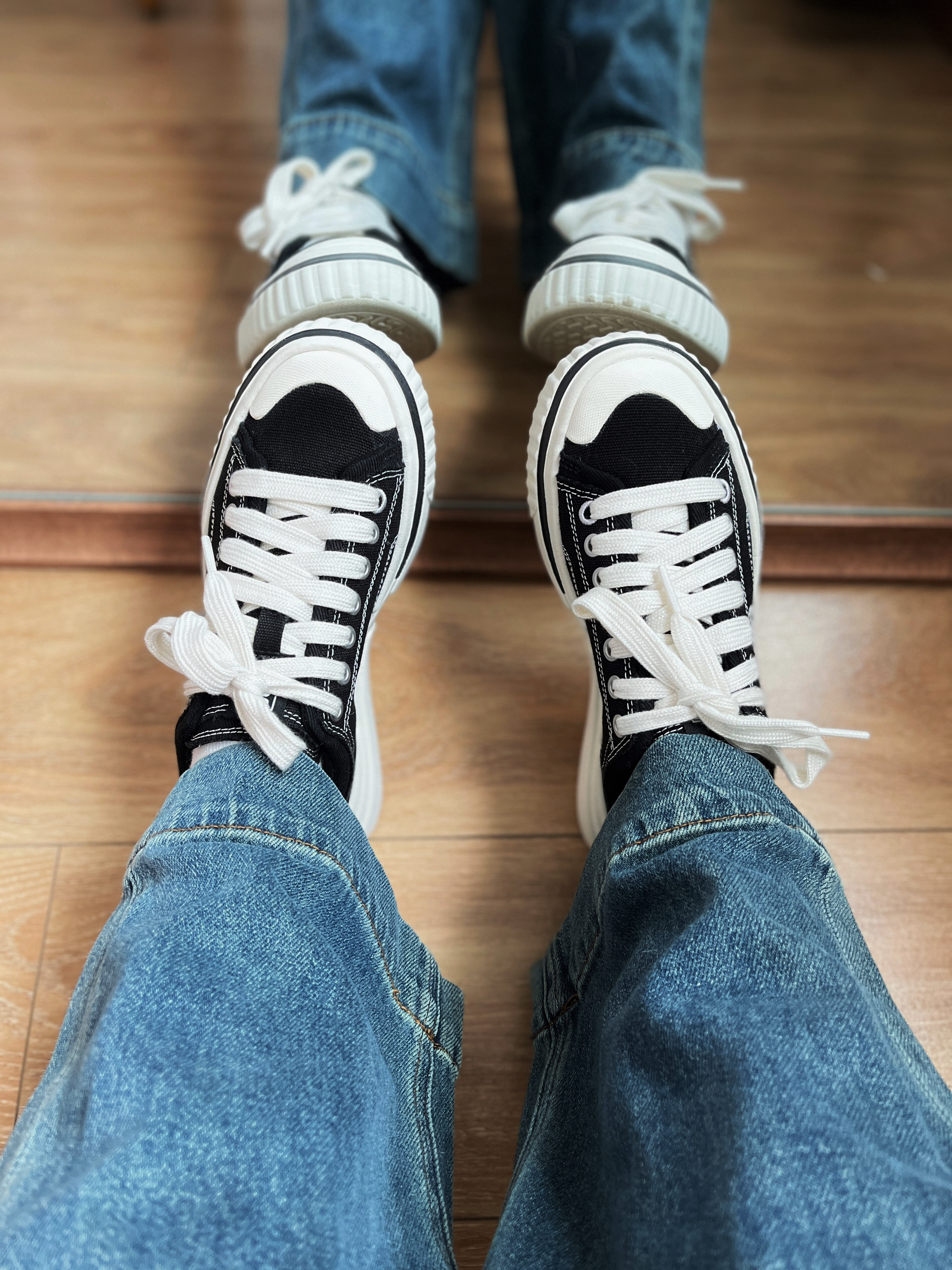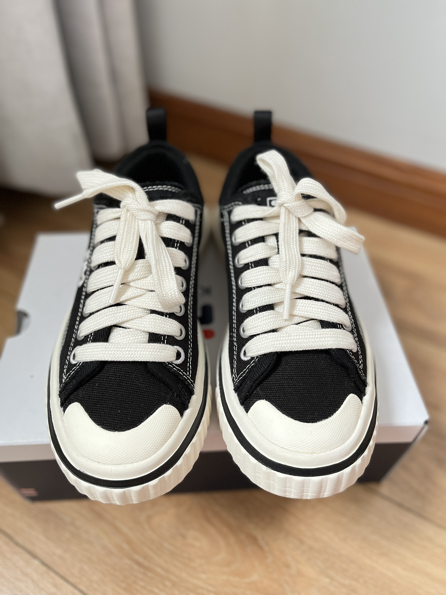 很喜欢穿这个小板鞋😋 鞋底是发泡材质的尊滴很轻很软! 帆布的透气性也好~ 逛街必穿鞋、走再久也不累💃 黑白配色简单高级 也很百搭~