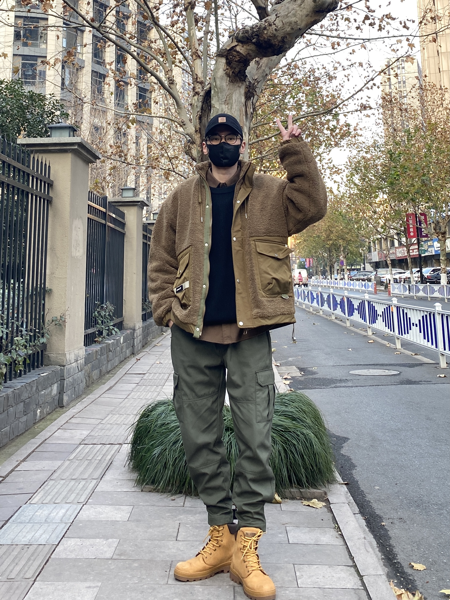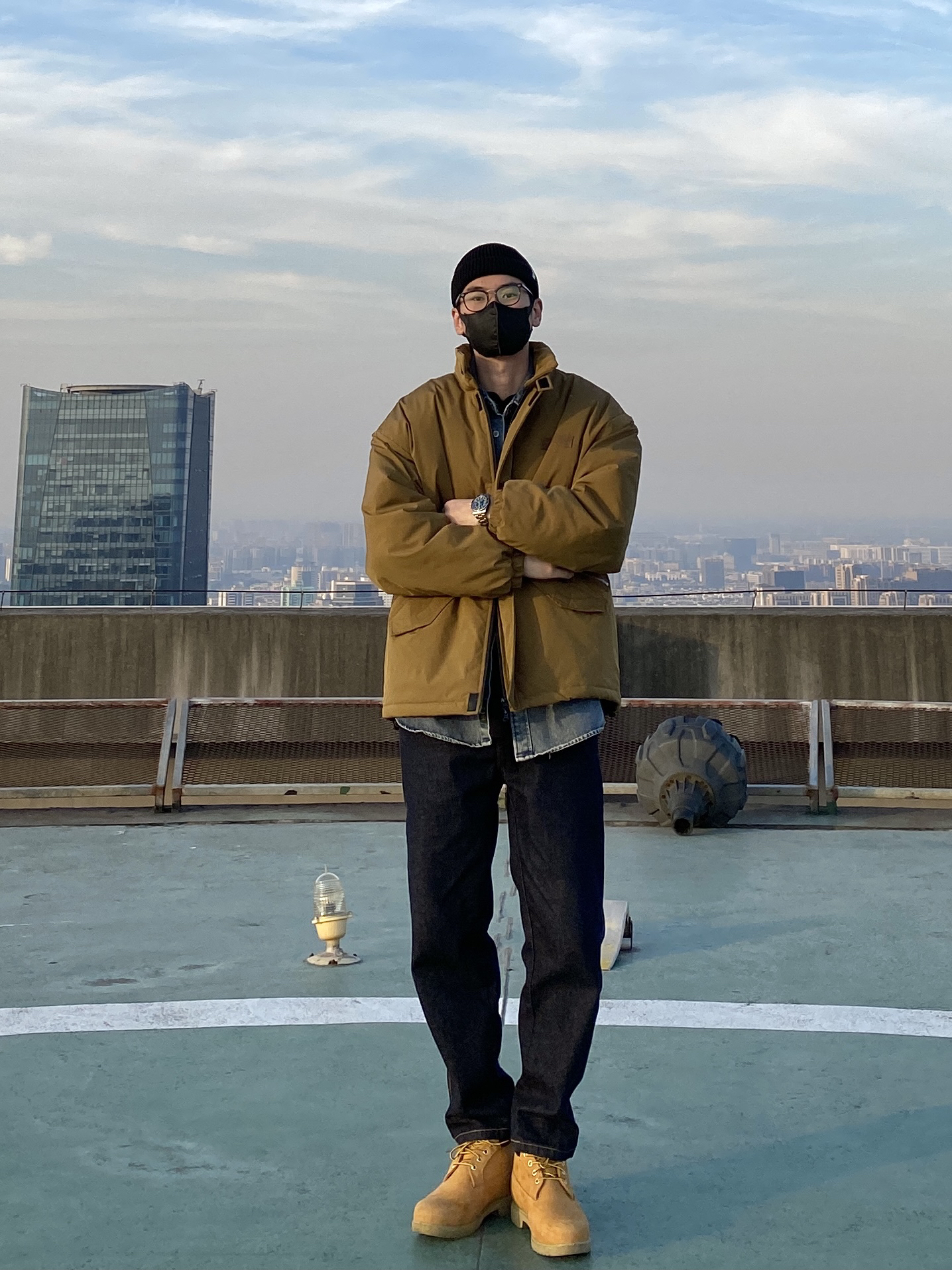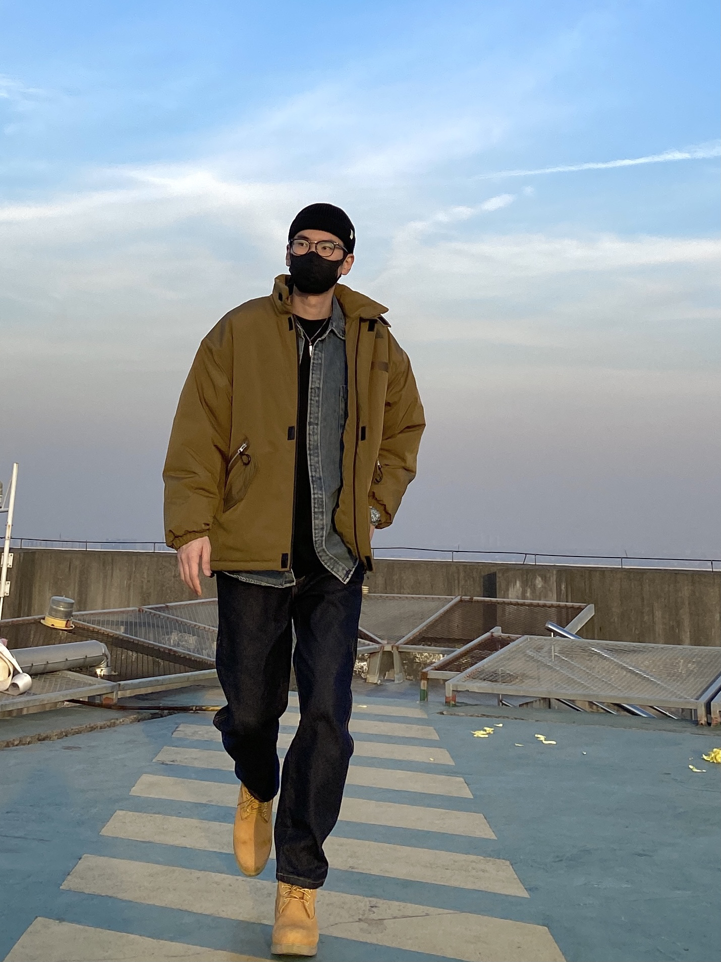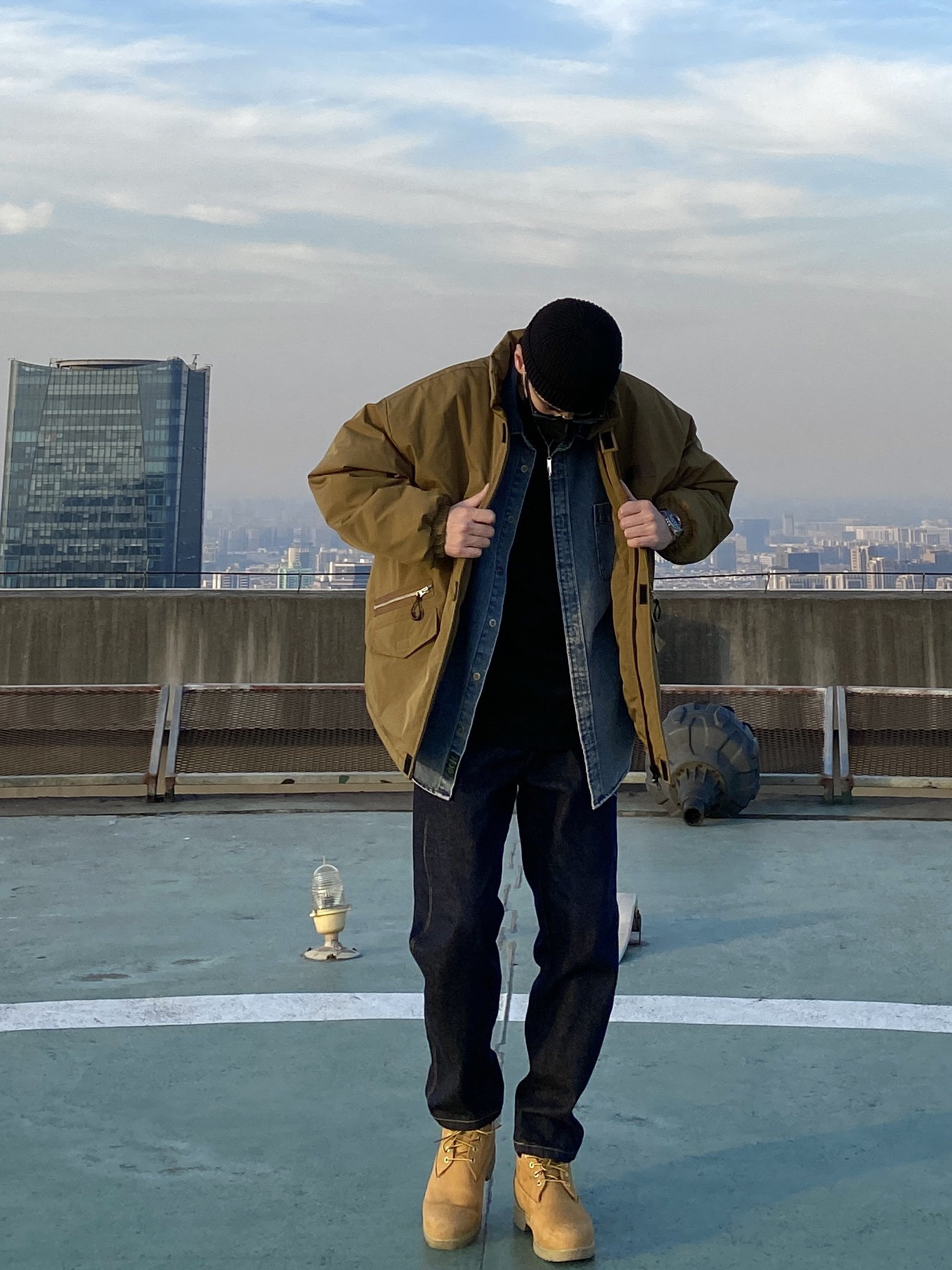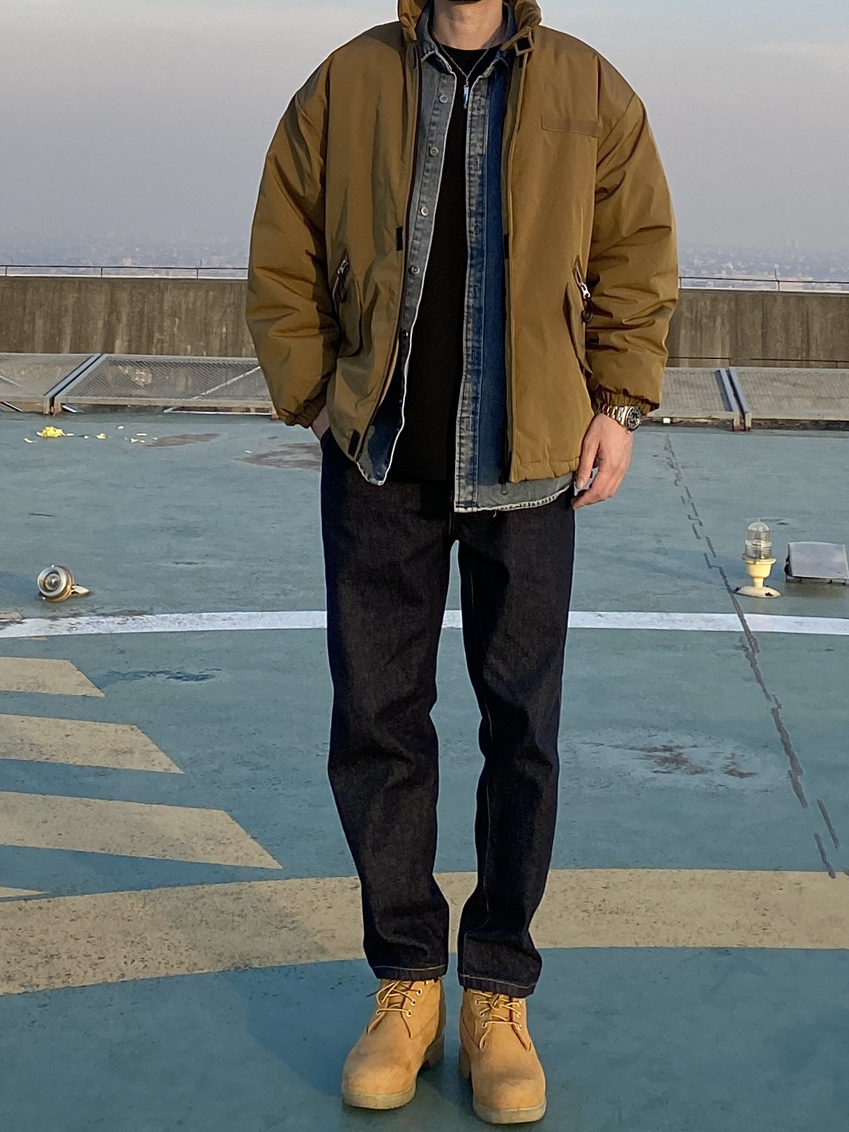 今天这套先用浅蓝色水洗牛仔衬衫做内搭,裤子选择不挑腿型的直筒原色牛仔裤,鞋子上脚经典百搭的timberland工装靴,接着套上卡其色重磅多口袋立领棉服夹克,最后戴一顶黑色线帽,OK,出门看看搭配效果吧! - 今日穿搭 衣服裤子:NICE LILI 鞋子:timberland