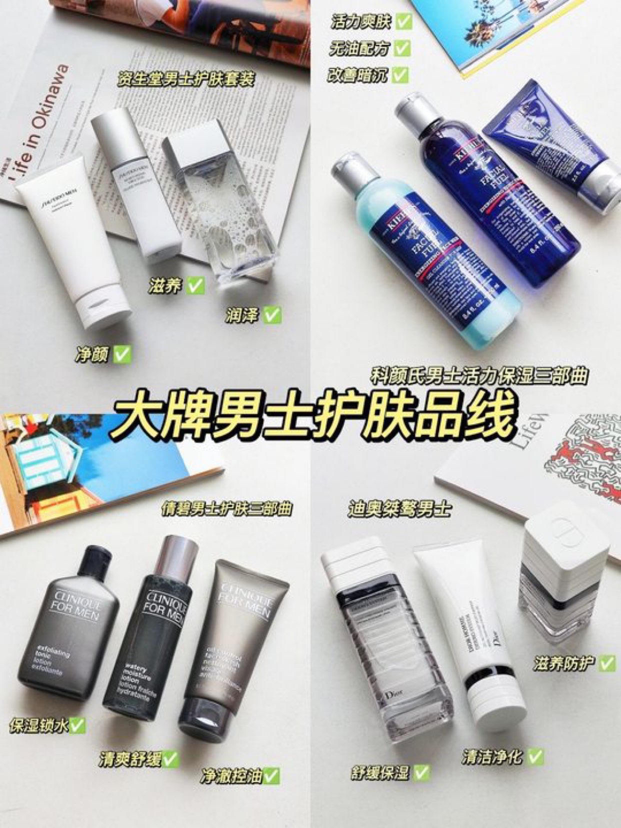 清爽男士护肤套装,油痘肌必看|||🔗汉和中方男士护肤套装 吃土都要入手的一款水乳,里面含有美国金缕梅,能够控油祛痘,上脸吸收很快,坚持用还能收敛细腻毛孔 🔗兰芝男士护肤套装 适合秋冬使用,干皮、混干皮可以冲 🔗珂润男士护肤套装 质地偏轻薄,适合敏感肌,对改善舒缓肌肤很有效 🔗欧莱雅男士护肤套装 凝露质地,抹在皮肤上瞬间化水,吸收力不错 🔗碧欧泉男士护肤套装 适合各种干皮使用,缓解皮肤干燥 🔗WIS...