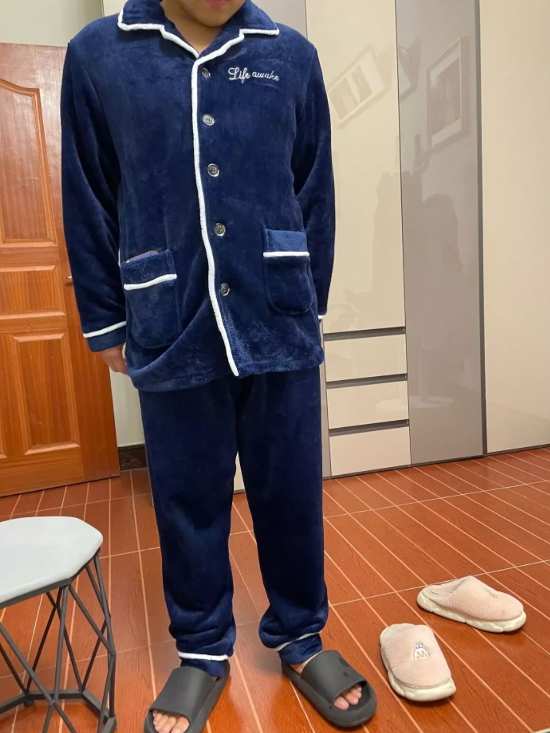 🫰🫰秋冬睡衣 |软fufu的珊瑚绒睡衣穿起来也太舒适啦! 今天的宅家快乐是来自这套珊瑚绒睡衣~ 睡衣是开衫加睡裤的组合~ 深蓝色的配色很耐脏 上身的效果还是蛮好看的~ 🌟🌟很适合男士穿 睡衣很轻巧 上身蛮轻盈的