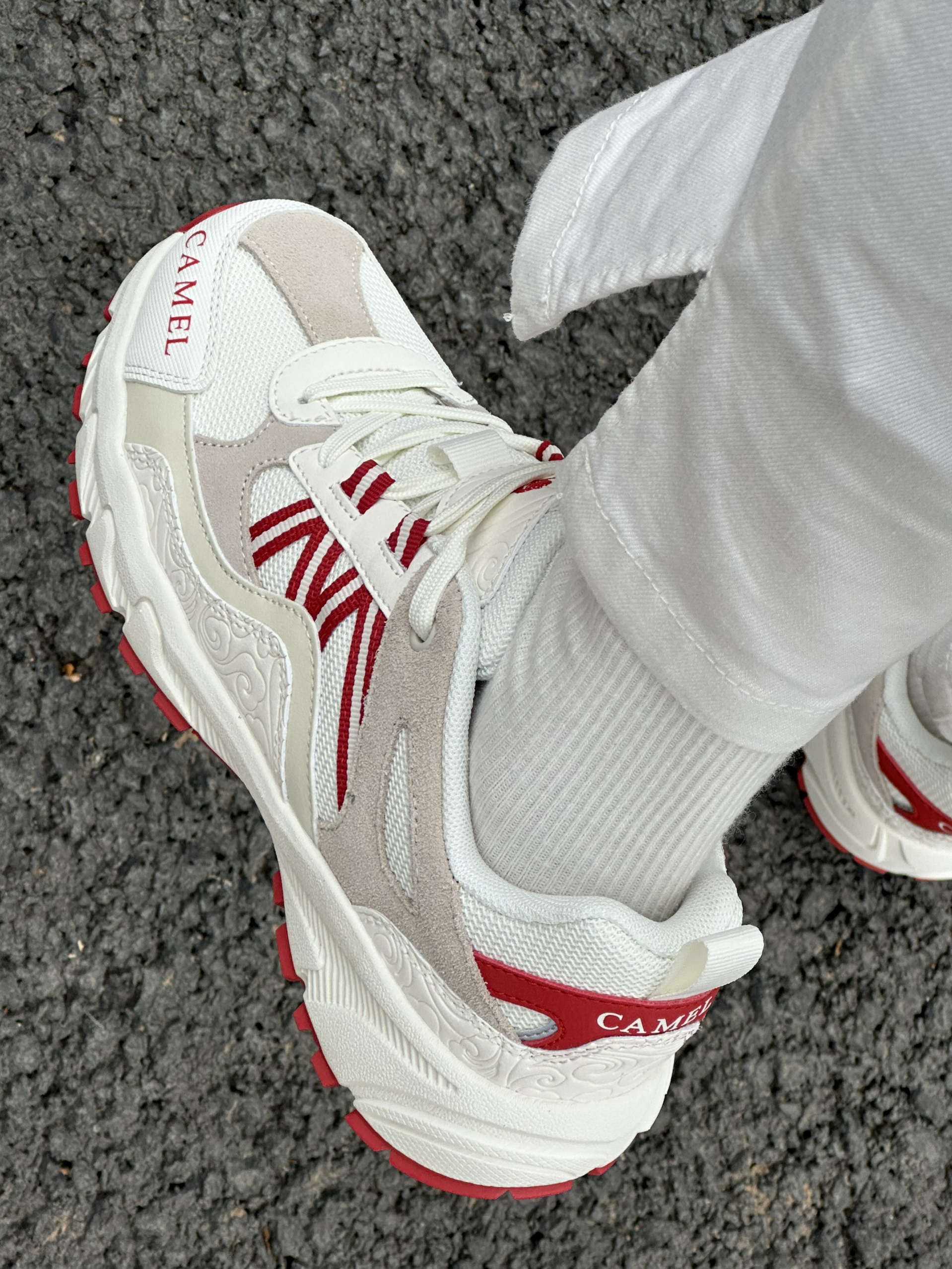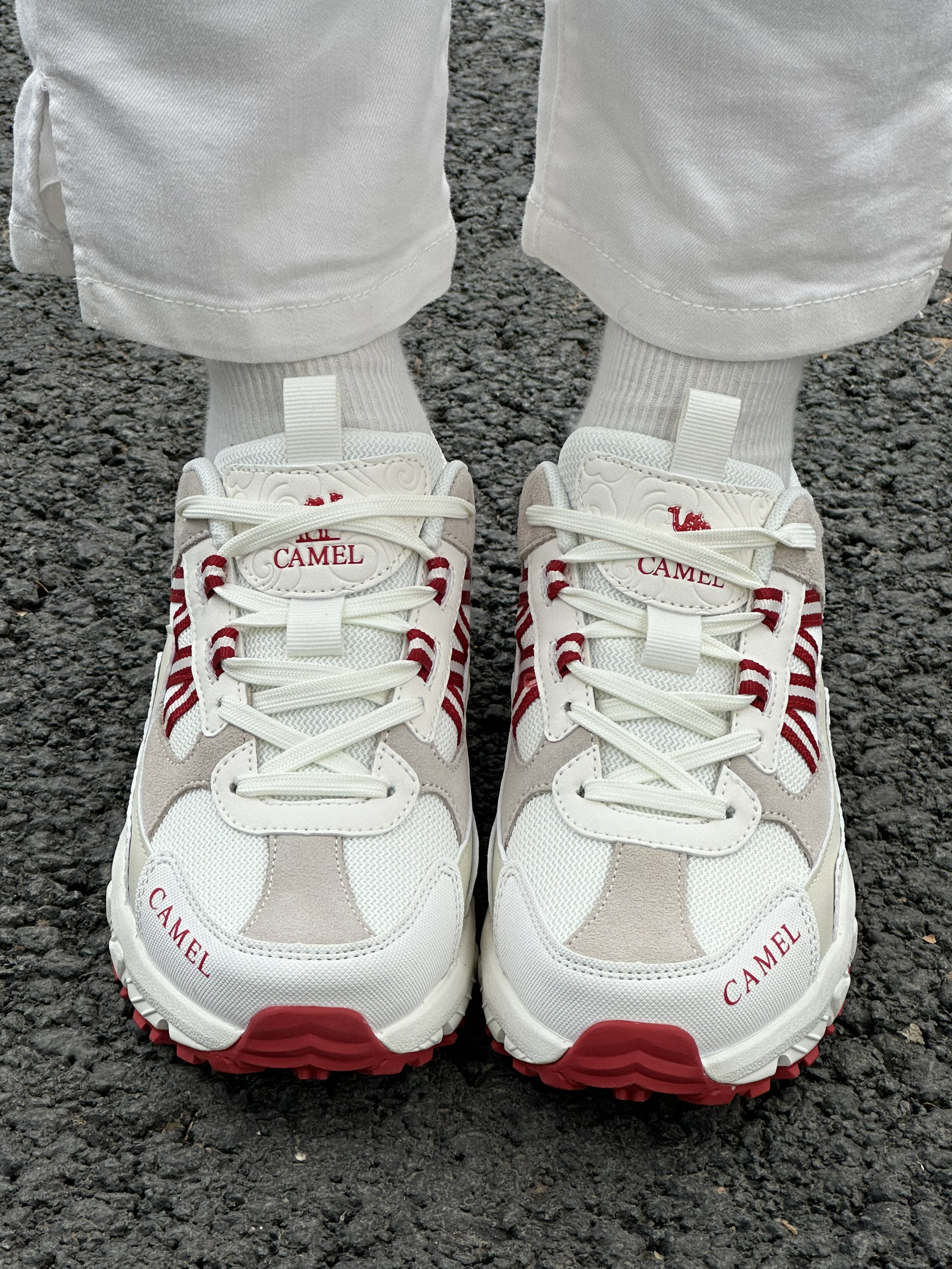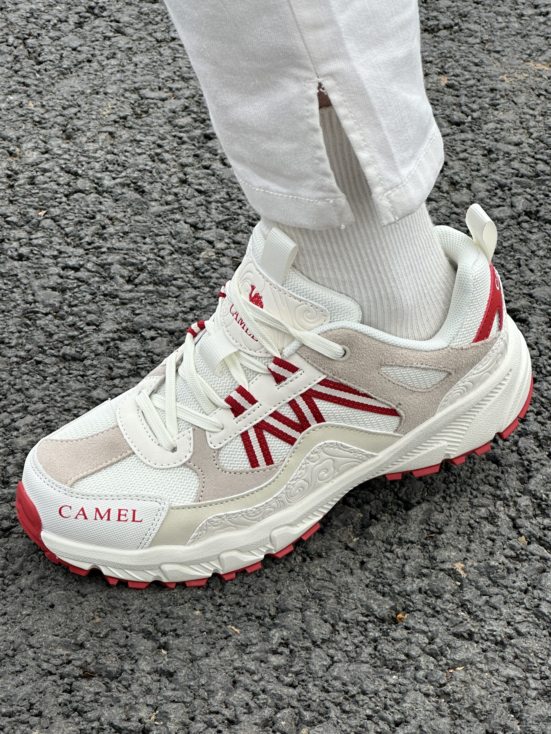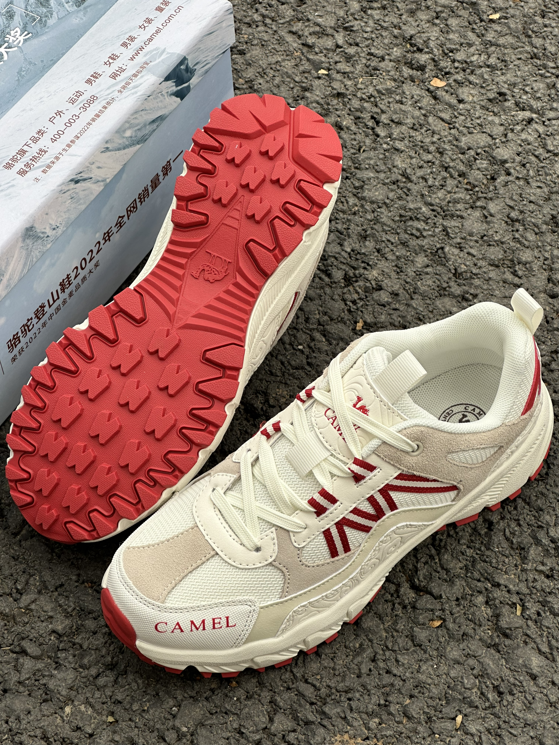 超好看的白红配色~ 上脚很轻,抓地力很强! 超级适合年假爬山的鞋子~