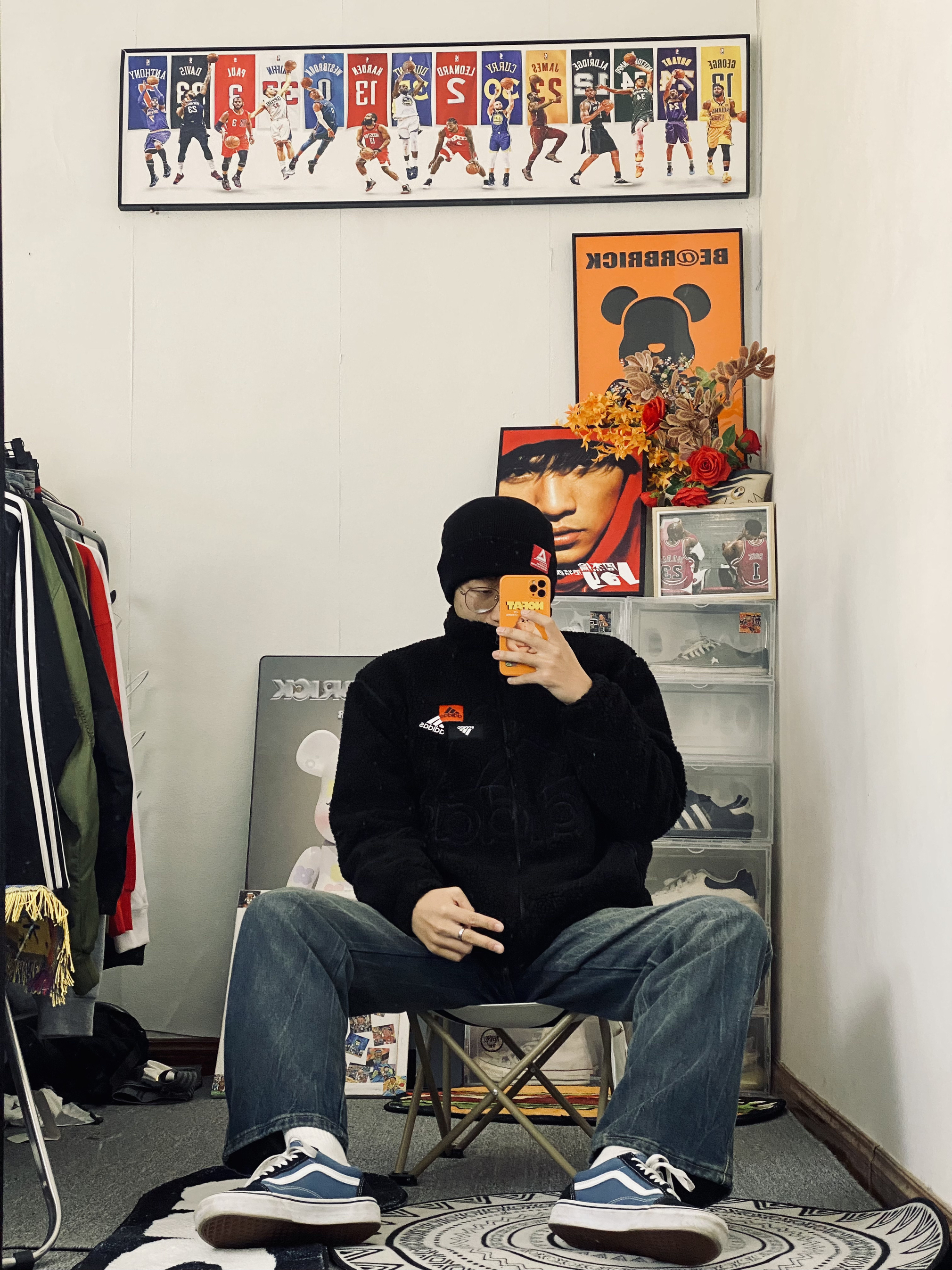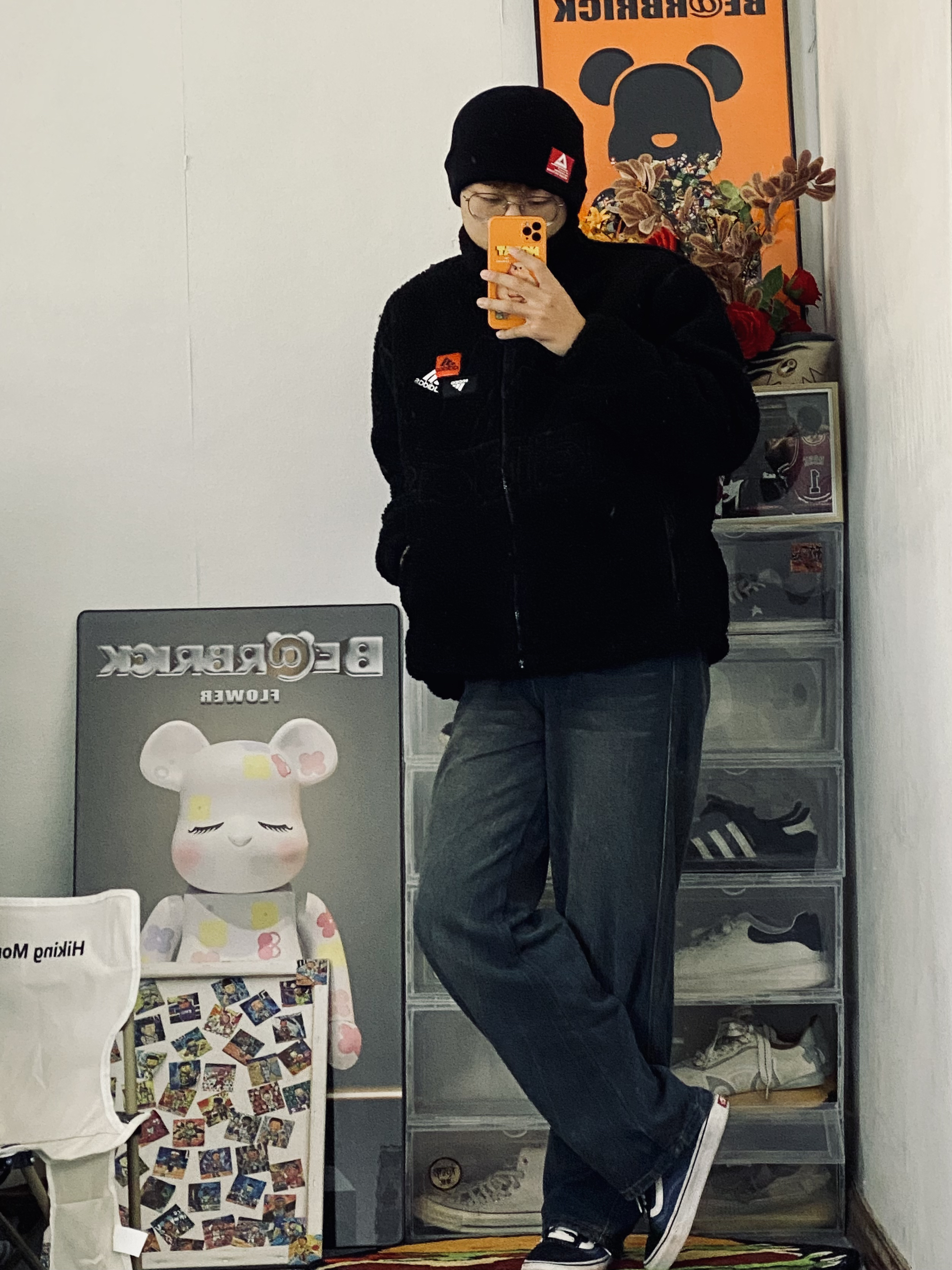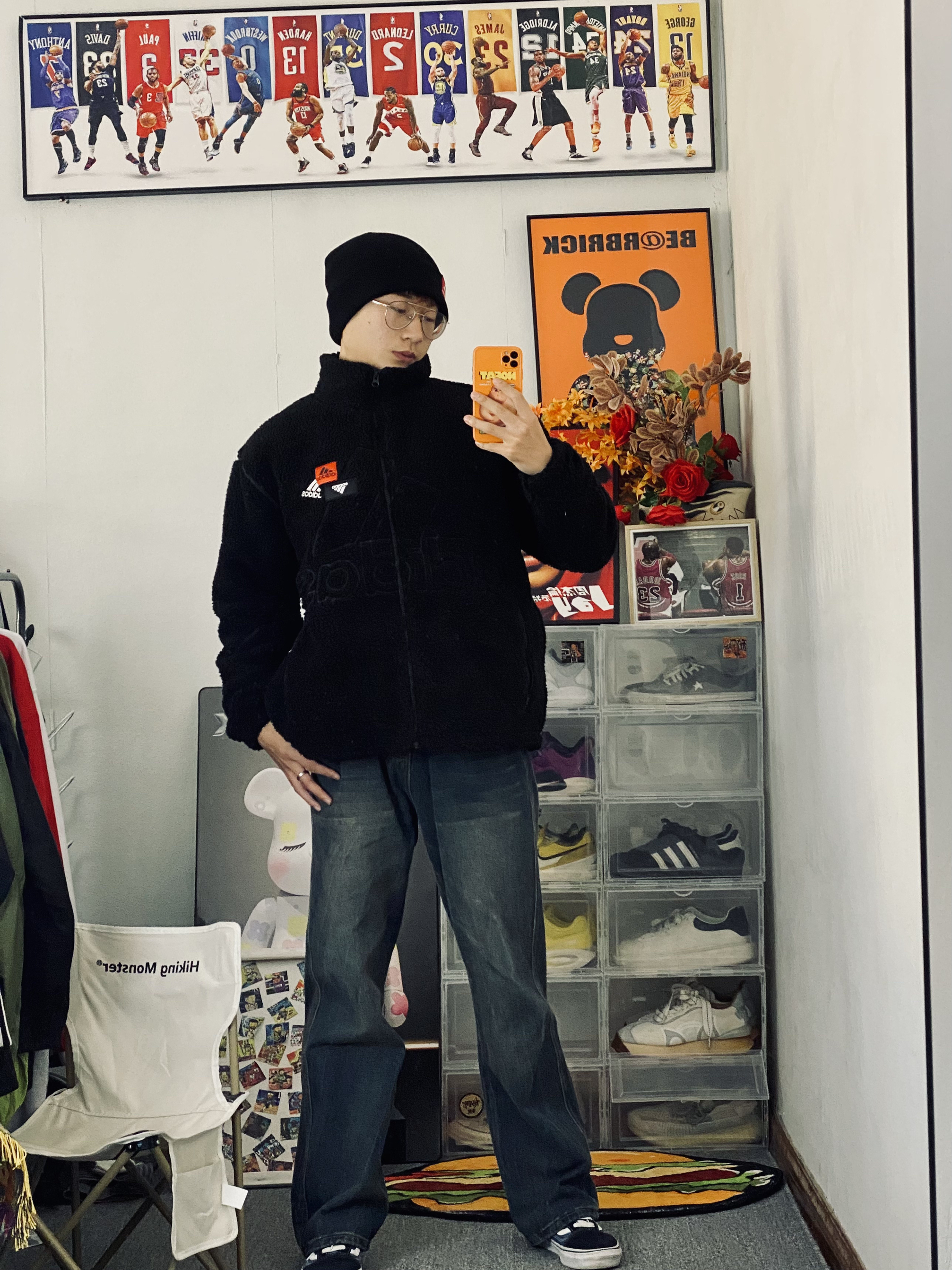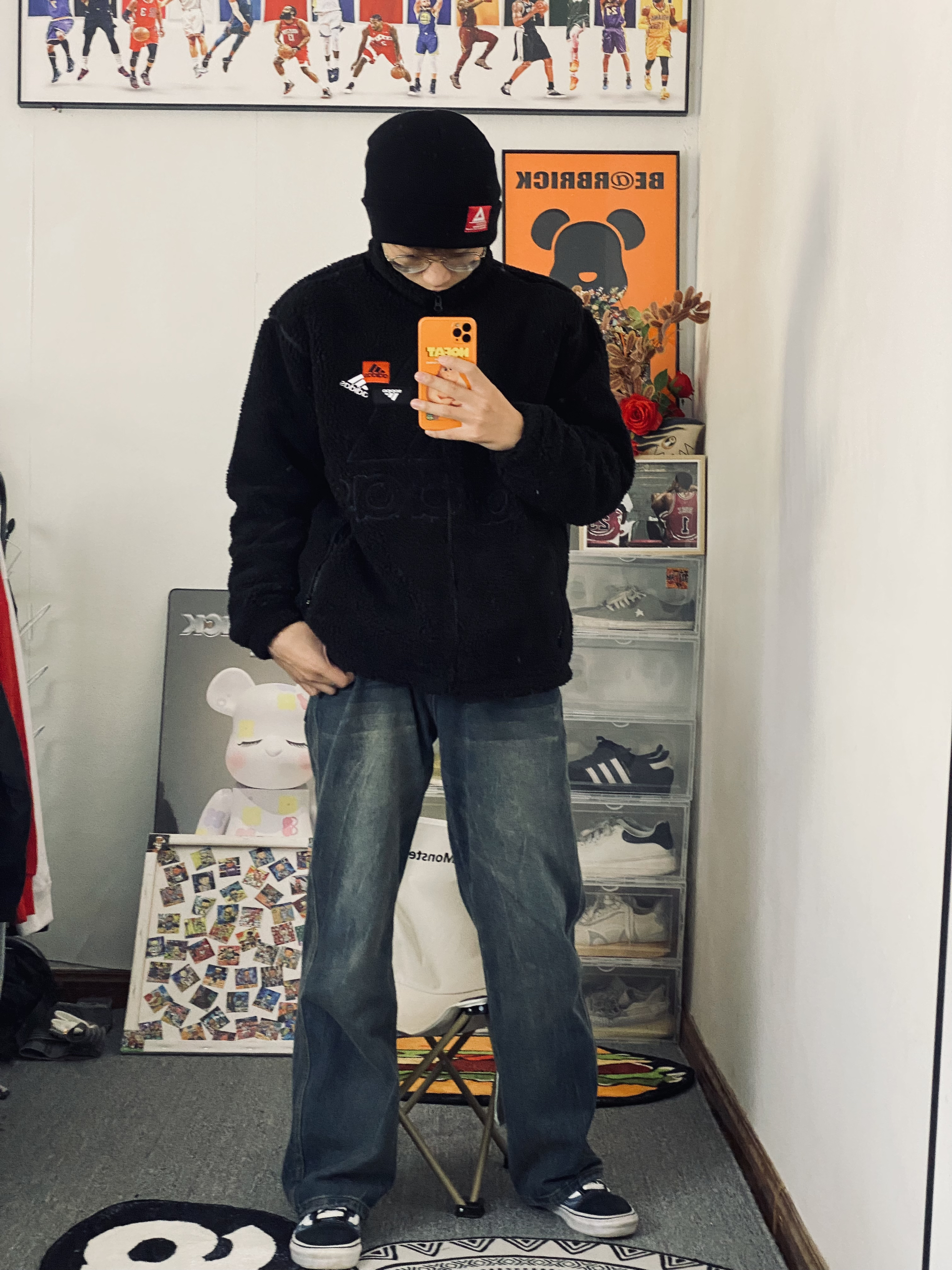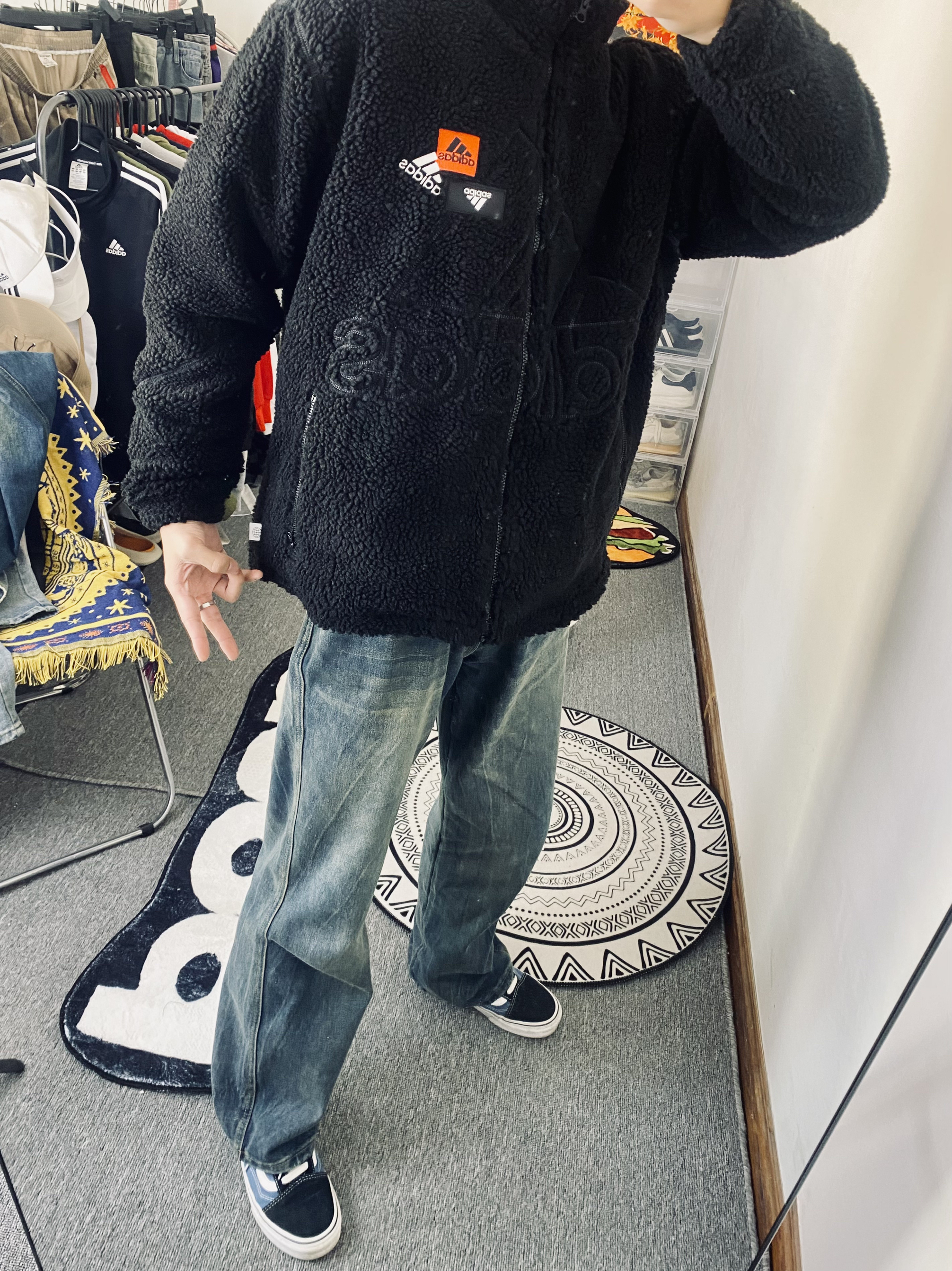 👔衣服是一个阿迪达斯纯色大Logo摇粒绒外套 摇粒绒面料穿起来舒服柔软 穿起来保暖也不错 立领设计防风保暖啊⚡️ — 👖裤子是一条宽松版型的牛仔休闲裤 裤子百搭 男生裤子推荐🕺🏼 — 👟鞋子是一双万斯海军蓝配色板鞋 海军蓝的颜色比较搭牛仔裤 三色原则穿搭不容易出错🔥 身高/体重:178/130 👔xl