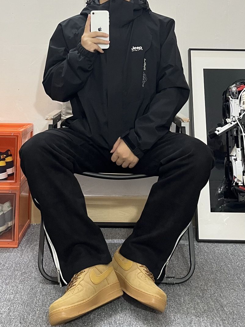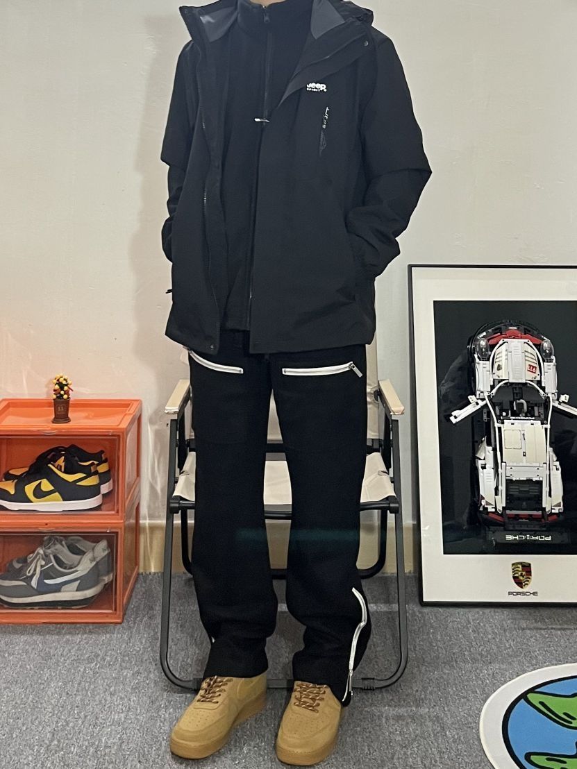 哈喽这里是pupu同鞋🏄🏻♂️ ——————————— · 👔:jeep吉普三合一冲锋衣 颜色我选择的是黑色,比较适合大部分男生✔️ 三合一对于大部分人日常通勤实用性十分大✌️ 内衬加绒巨暖和,外层防风防水🌊🌧️应对多变天气👋🏻,这一件就够啦~ · 👖:麂皮解构长裤 麂皮绒非常有质感 保暖舒适很抗冻 结构设计很帅 裤脚可以调节 冬天穿很合适❗ 裤长刚好盖住鞋面显高显瘦 运动休闲都很实穿 · 👟:...