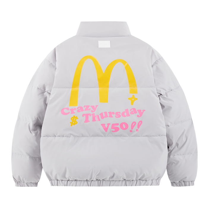 哈喽哈喽 欢迎来到睿汀的频道📻 对于喜欢麦当劳的麦门朋友们 冬天搞一件有麦当劳元素的羽绒服不过分吧 - 浅灰色的高级感搭配M家logo 秋冬氛围感拿捏了 配上一双暗夜紫复古球鞋 复古味道就有啦 今日LOOK🏷 👔 ICONSLAB 👟 TCELLARS