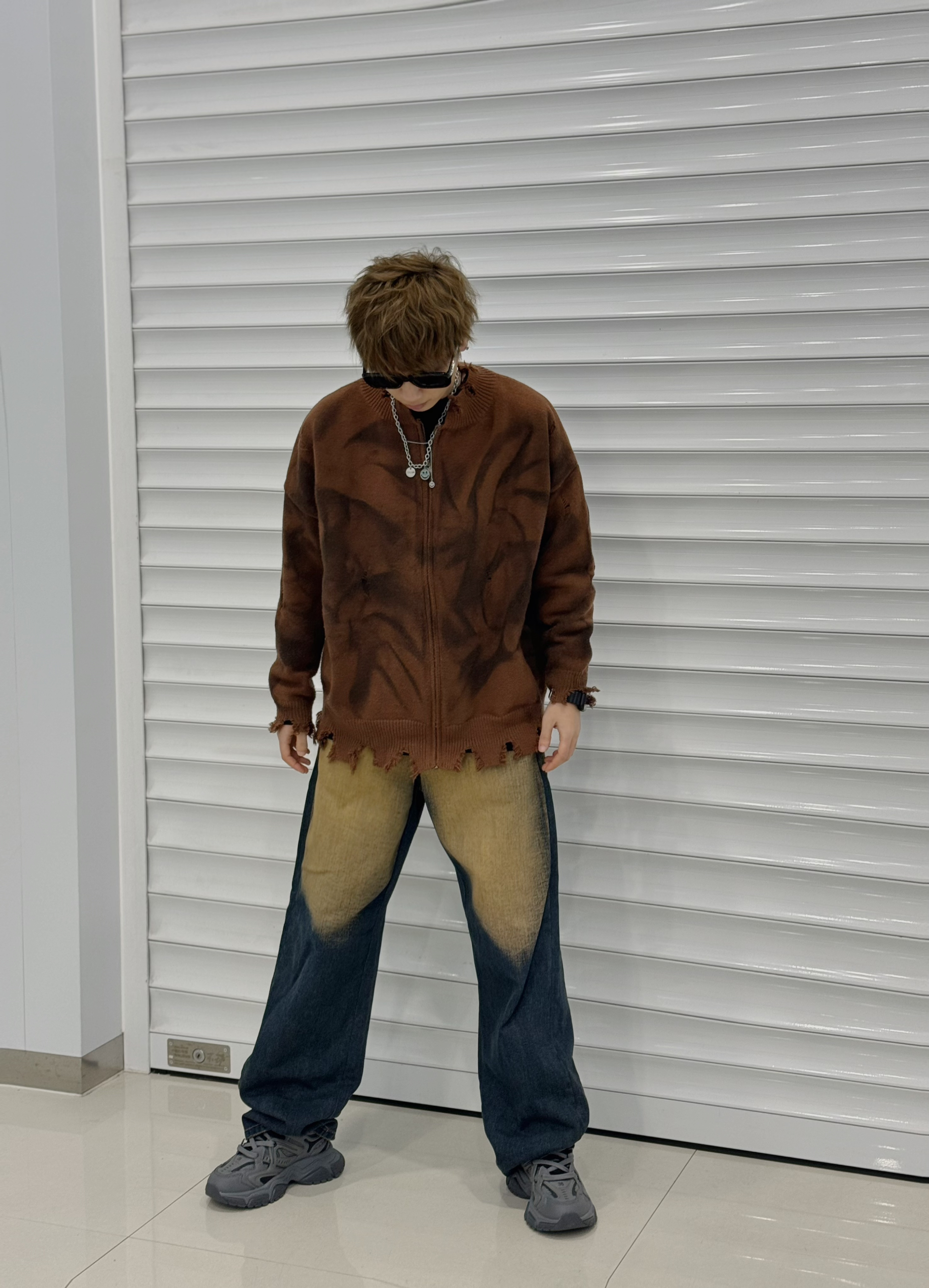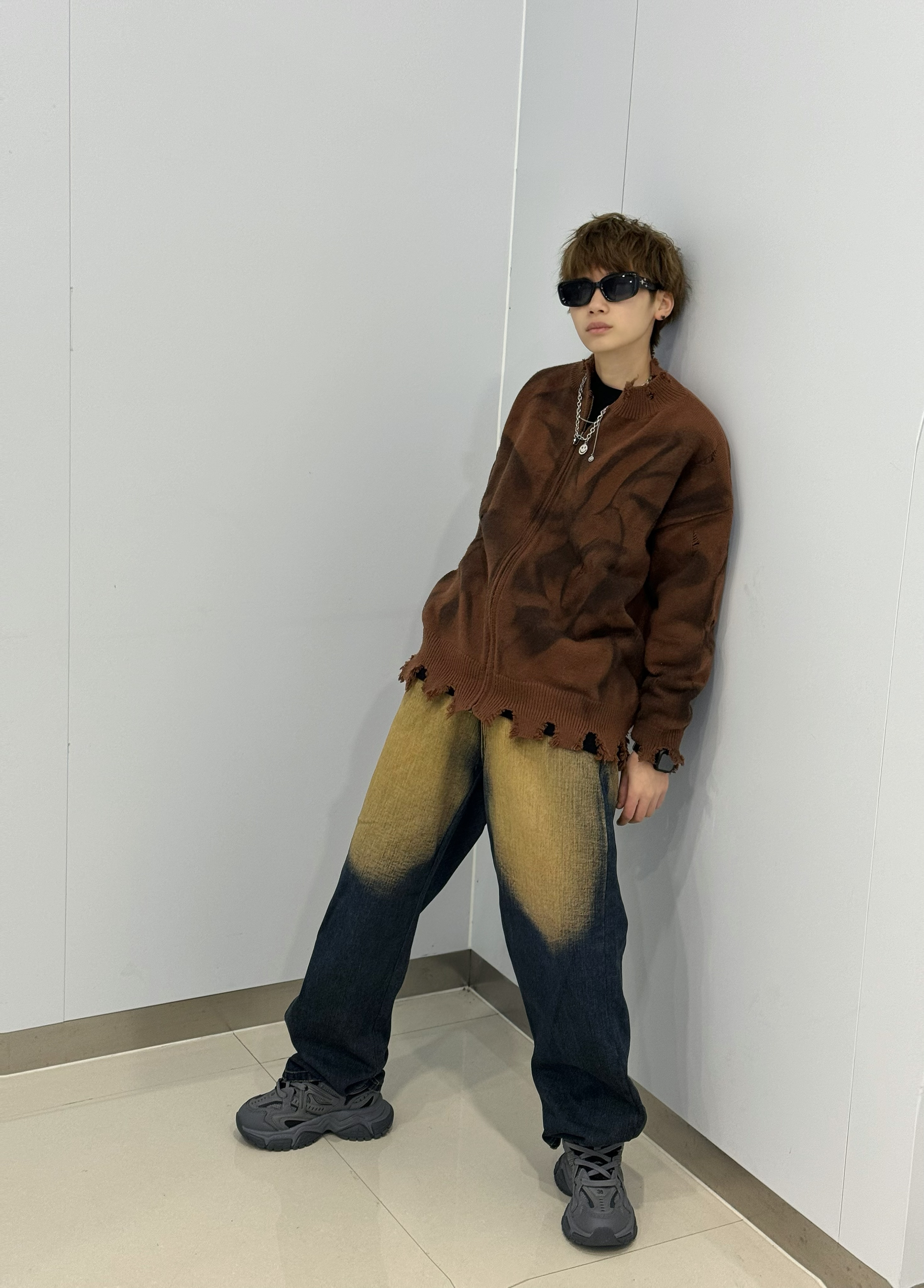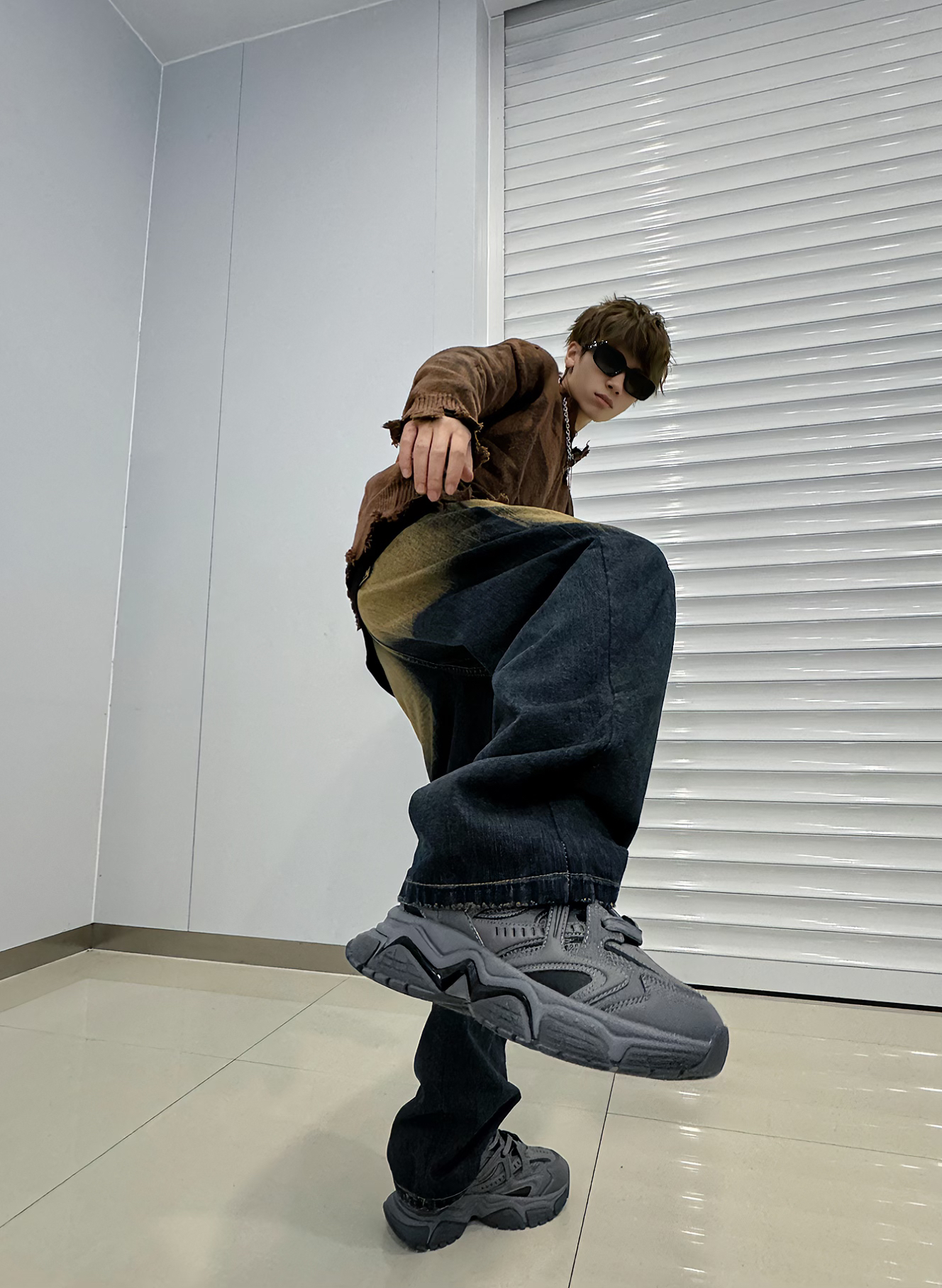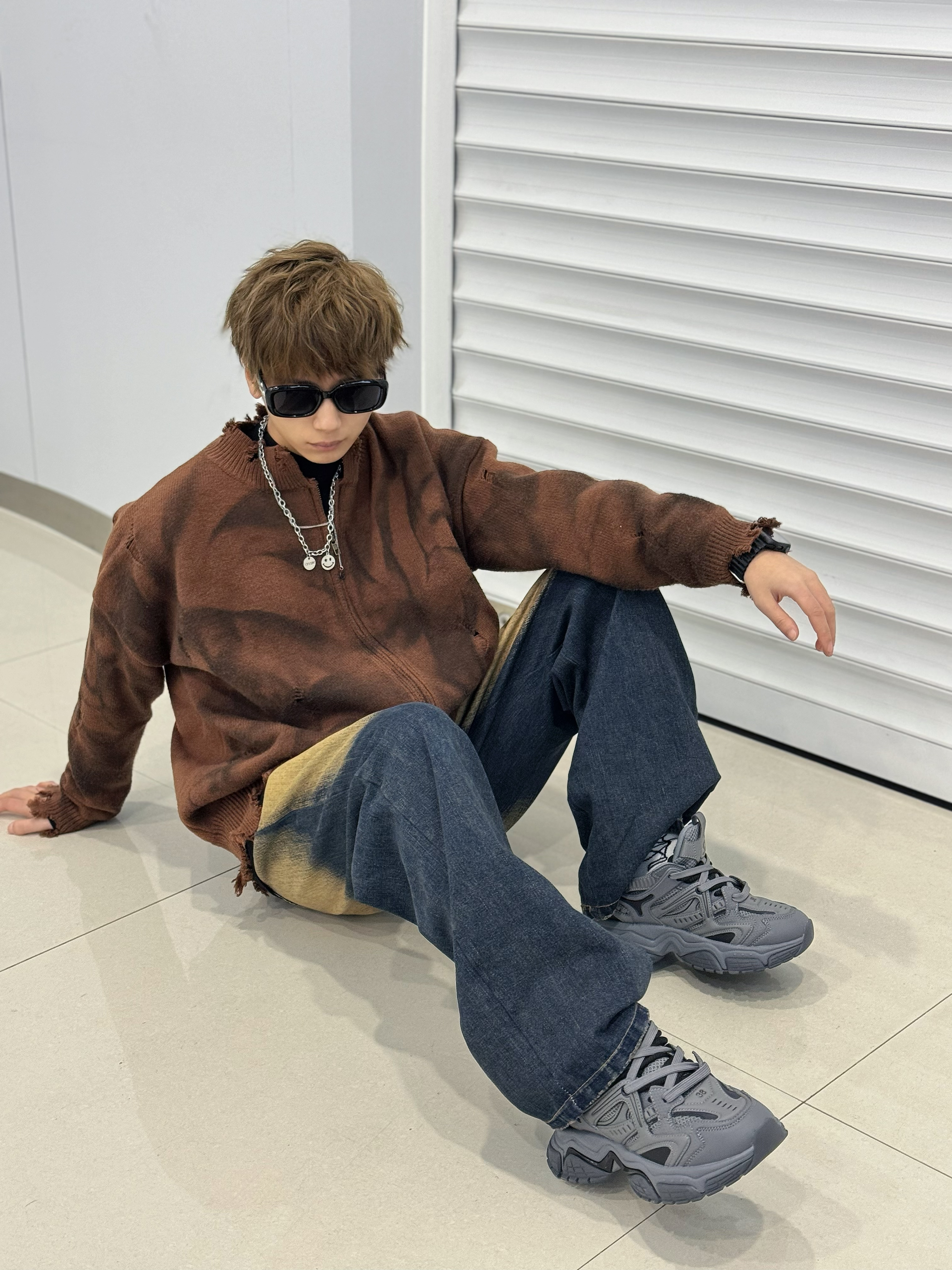 halo这里是嘎嘎的日常穿搭分享🥳 - 看腻了千篇一律的黑白灰,可以试试美拉德 棕色的开衫毛衣,做旧的破坏风设计很有街头感 内搭黑T和一串项链增加层次感 下身选择渐变做旧的直筒牛仔裤 宽松的裤型让整体穿搭变得很松弛 最后搭配一双灰色老爹鞋 纵横交错的拼接设计,机能感十足 5cm的增高厚底,可以拉长腿部比例 脚感软弹适中,日常搭配无压力✔️