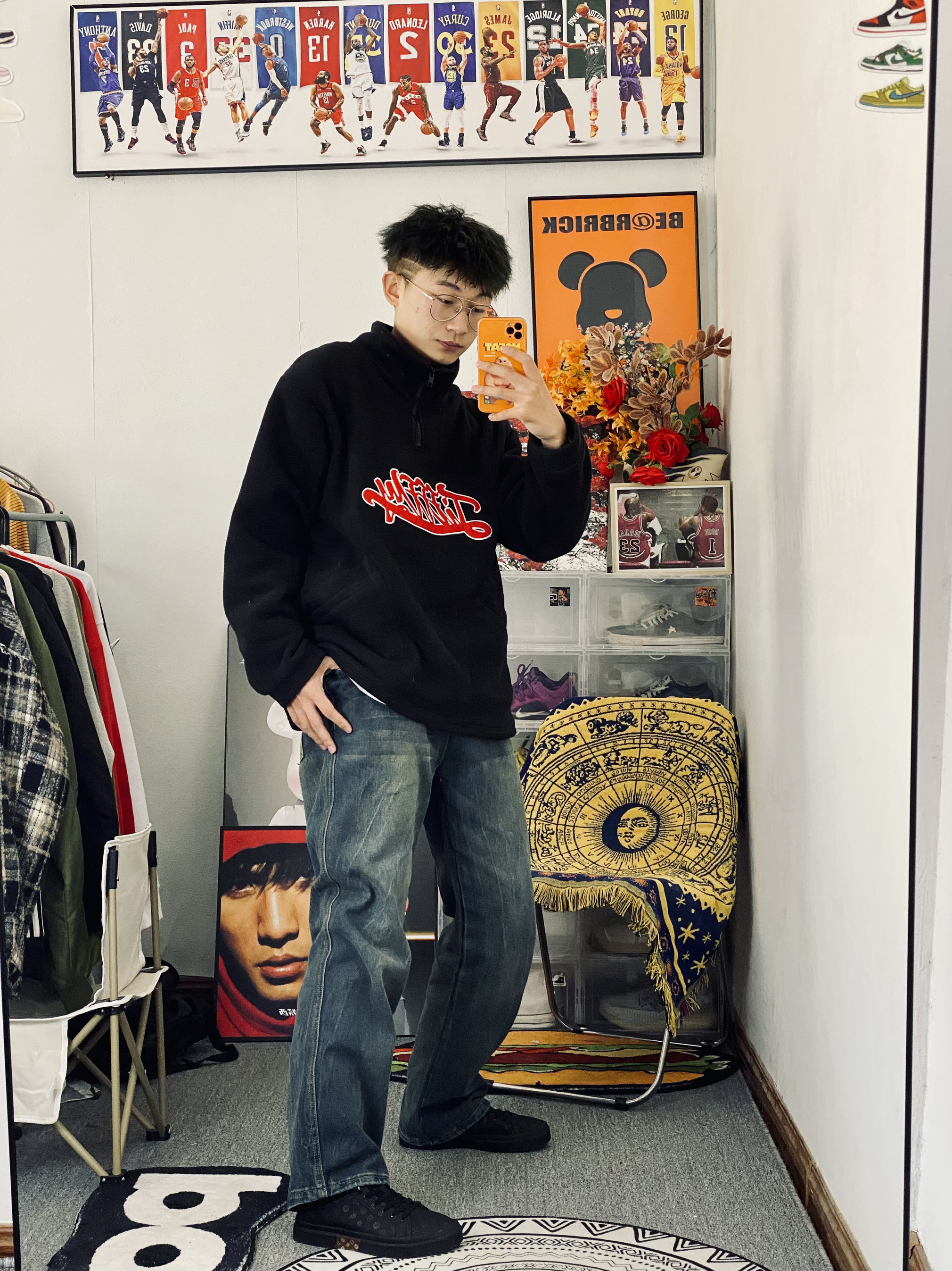 👟今天上脚穿了一双海澜之家的休闲百搭板鞋 他的款式有普通款和加绒款 加绒款让你冬季穿小板鞋也不冻脚 脚感舒适百搭 橡胶大底久穿不累 鞋带用了伸缩系鞋带的设计摆脱了我老是系不好鞋带的困扰🙈 — 👔衣服穿的是一件黑色摇粒绒美式立领卫衣 我喜欢胸前的英文Logo设计 比较时尚 摇粒绒的面料摸上去软软的 — 👖裤子穿的就是一条复古蓝牛仔裤 复古蓝这个配色比较百搭 宽松直筒裤的设计又能很好的修饰我腿形上...