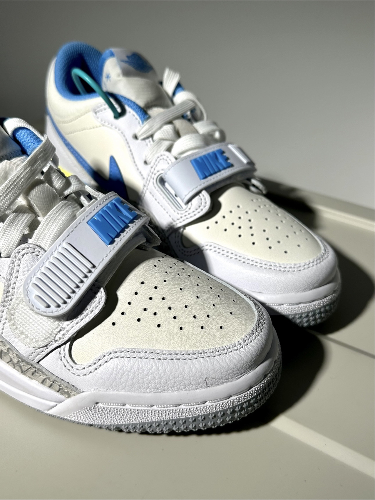 本篇笔记关联了Air Jordan Legacy 312 板鞋 运动休闲鞋 三合一魔术贴缓震复古回弹合成革 GS/椰奶白/狼灰/蓝色等商品,为用户提供真实的使用体验和购买参考。