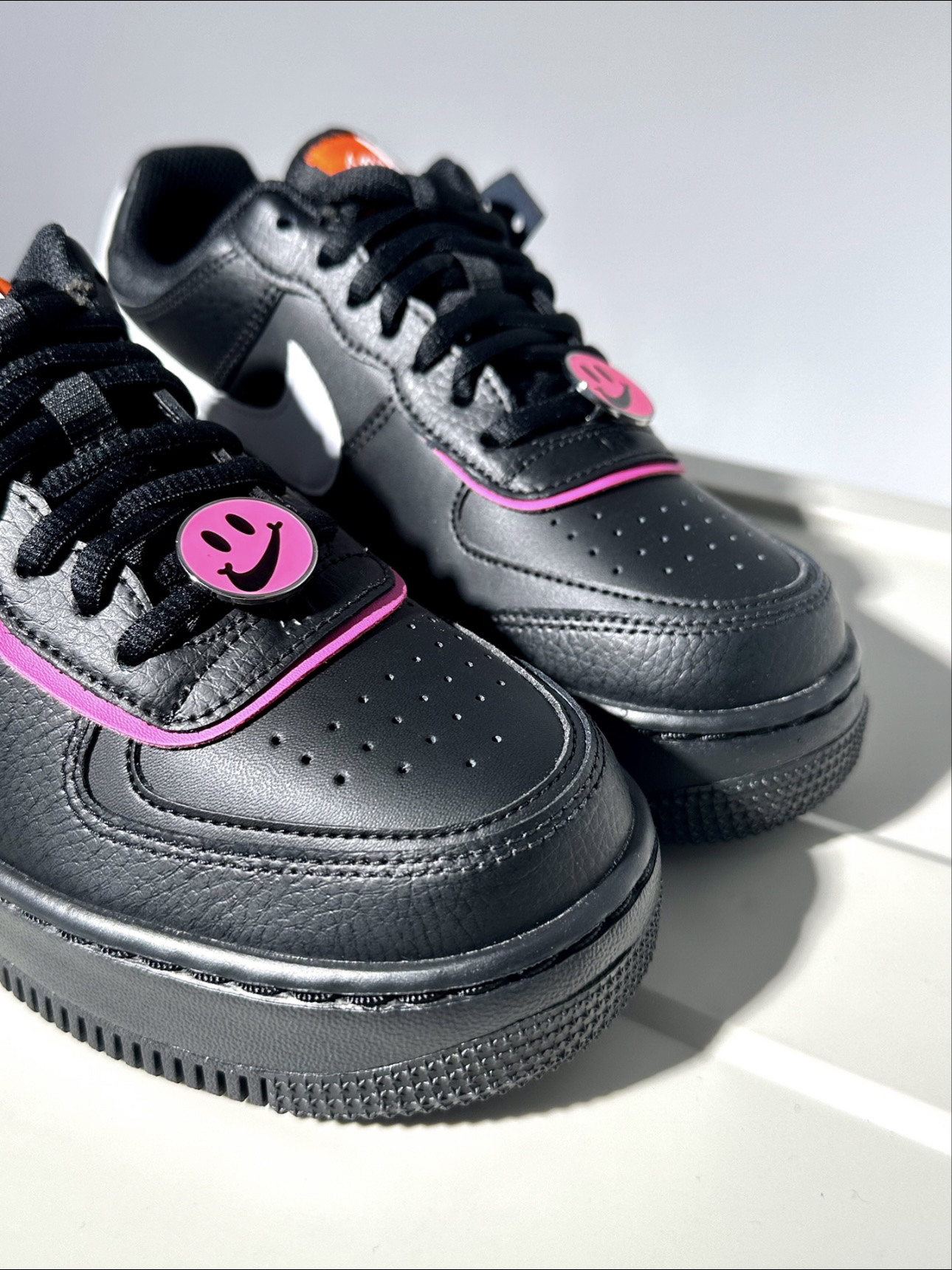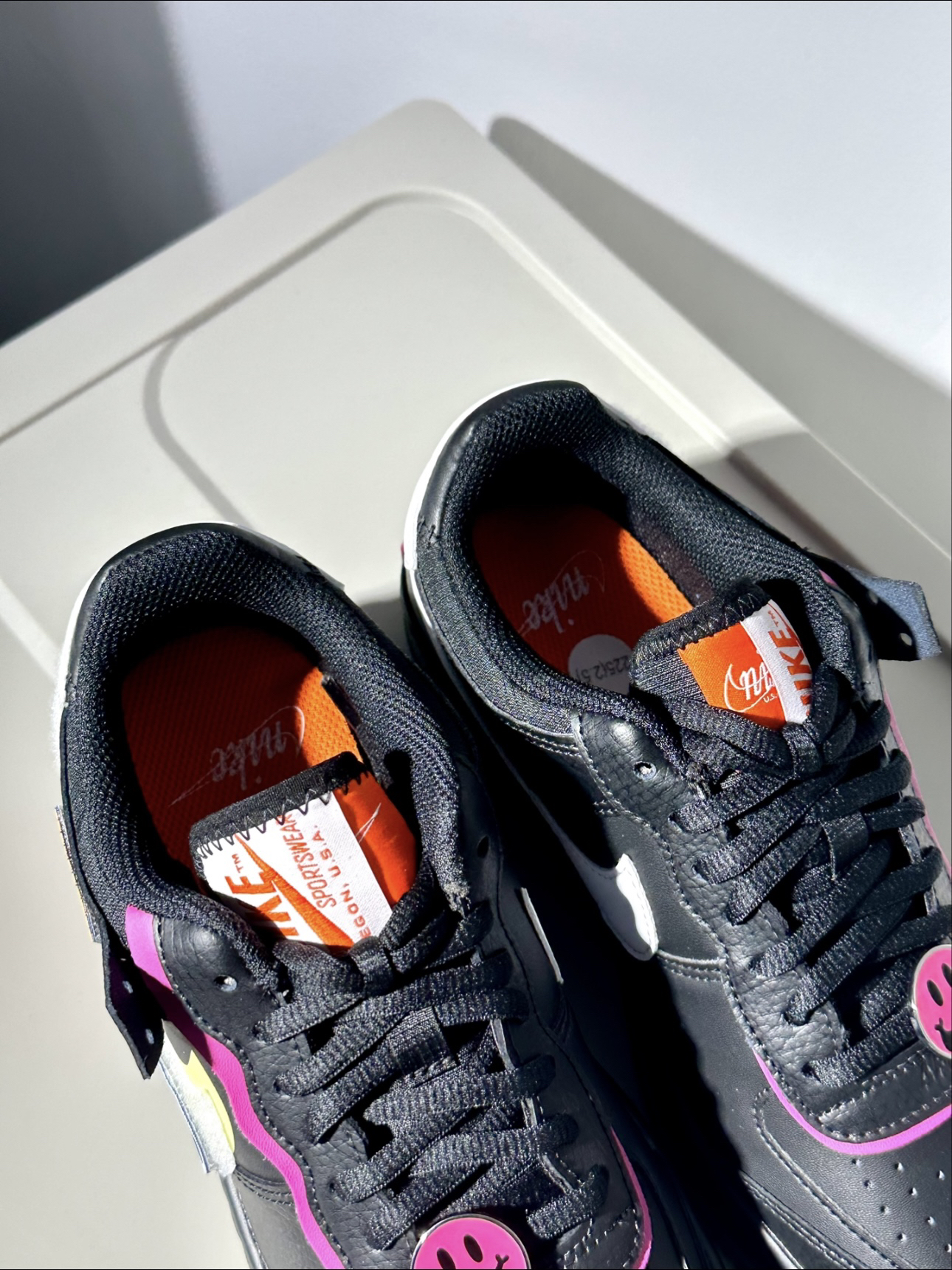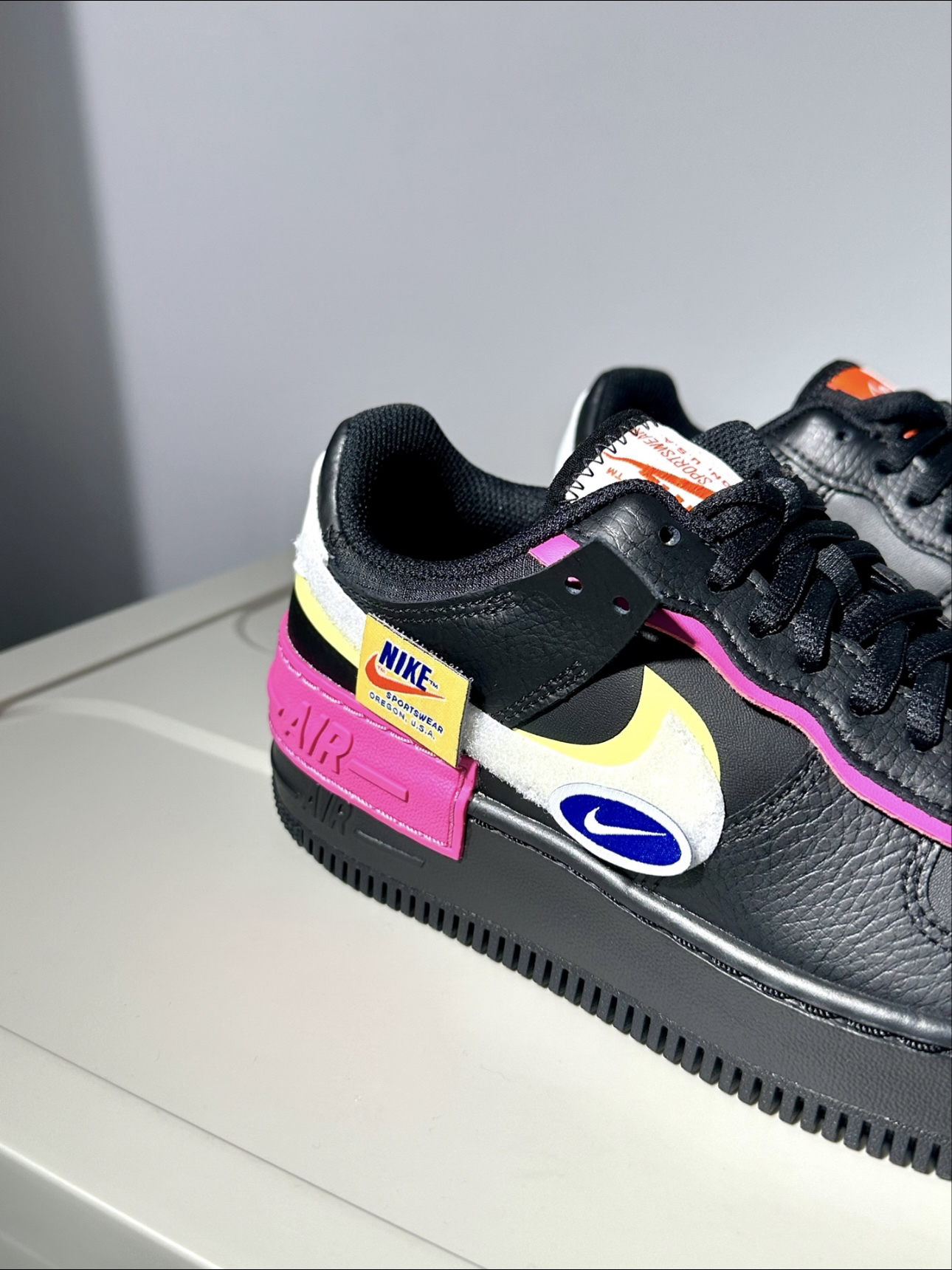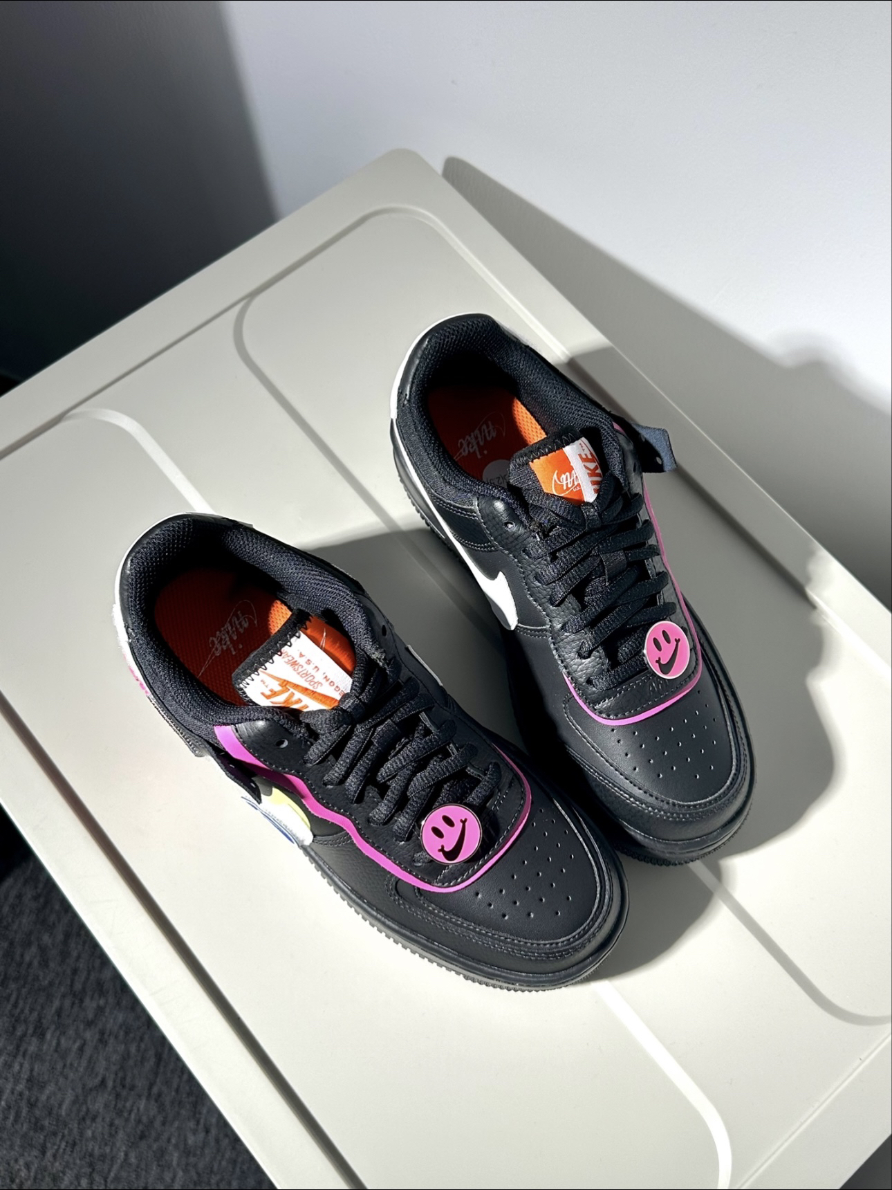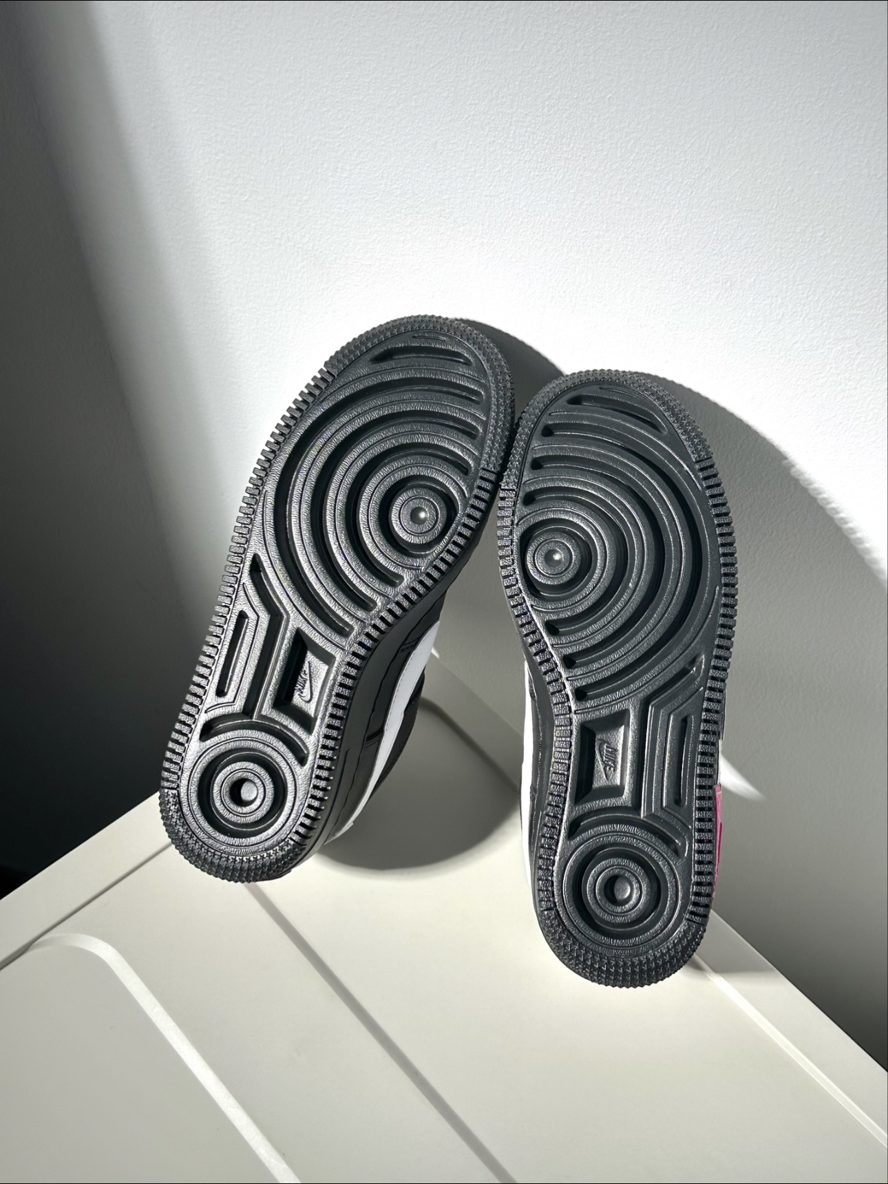 ✨配色:超酷的黑粉配色,细节堪比联名款,无代餐 ✨材质:全鞋面光面皮革,乌黑发亮,质感很绝好打理 ✨脚感:af1 shadow算是脚感不错的了,也比较轻 ✨尺码选择:正码正选就行 ✨性价比:700+可以入手