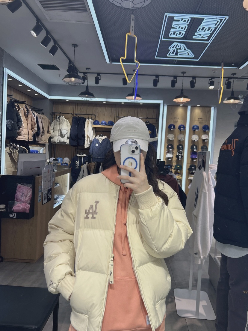 入的第一件mlb羽绒服❄️ 选的米黄色 感觉比奶油白更衬肤色 上身太奶乎乎了吧啊啊🧩 冬天好喜欢这种奶奶的颜色 一整个温暖住了 超级暖和 穿上去感觉整个人都温温柔柔的 快冲呀姐妺们!小个子也能驾驭的🍁