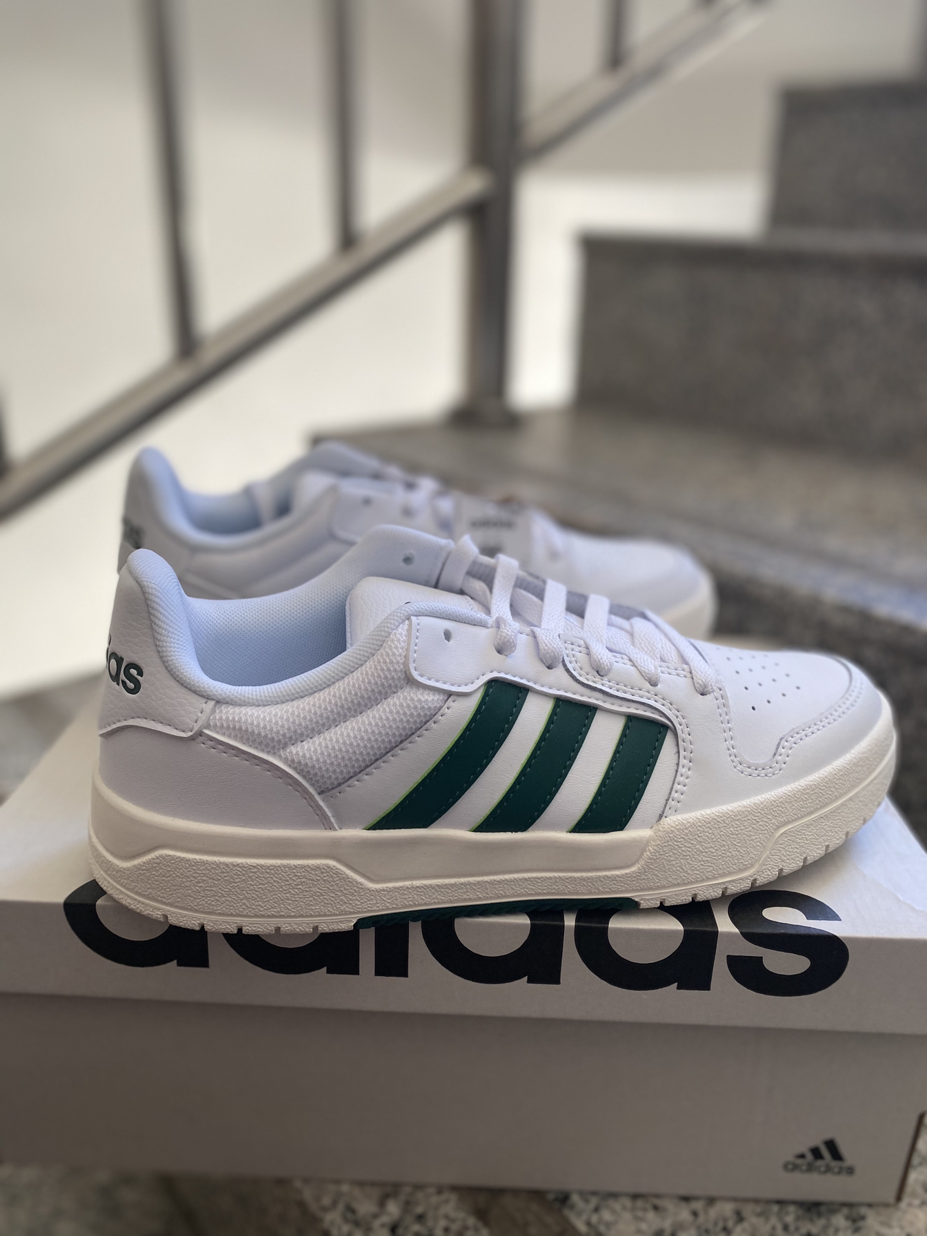 🌈adidas这款低帮板鞋采用的是白色皮革材质,很柔软 搭配绿色经典三道杠;设计非常简洁,以白色为主 绿色为辅 清新又时尚👍 ✨可以搭配牛仔裤👖运动裤 休闲裤或者校服都很NICE👍 💗休闲日常 出街 运动 旅游也都可以穿它👍 高颜值板鞋🌈