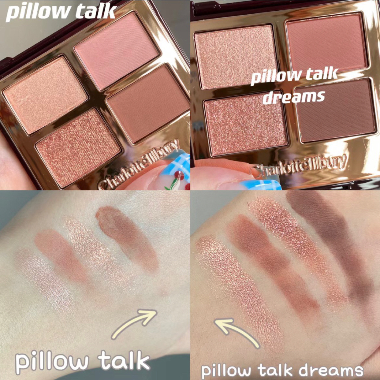 CT奢彩4色眼影PT盘 🔜超温柔的肉桂香饼色👀 清透的亮片✔️浅浅的底色,上眼才知道什么叫看好💥Pillow talk 2个哑光色,2个亮片色,哑光色质丝滑细腻也好晕染,很适合新手,随便撸一撸也是很好看的。