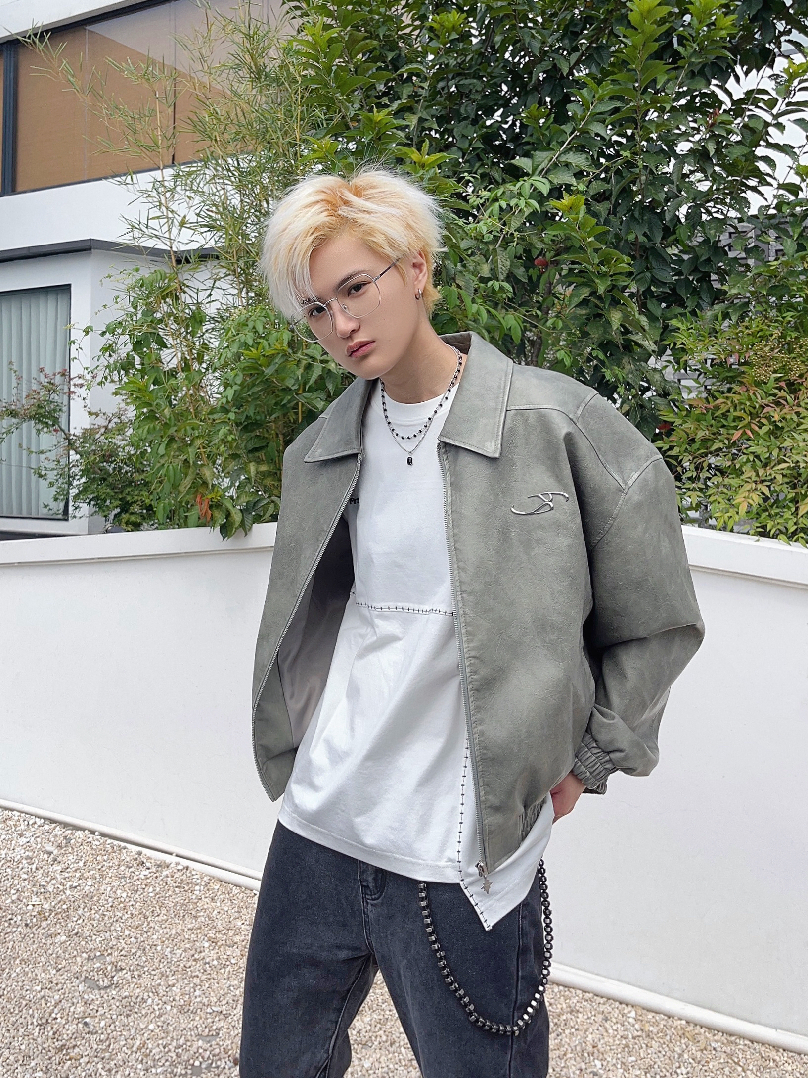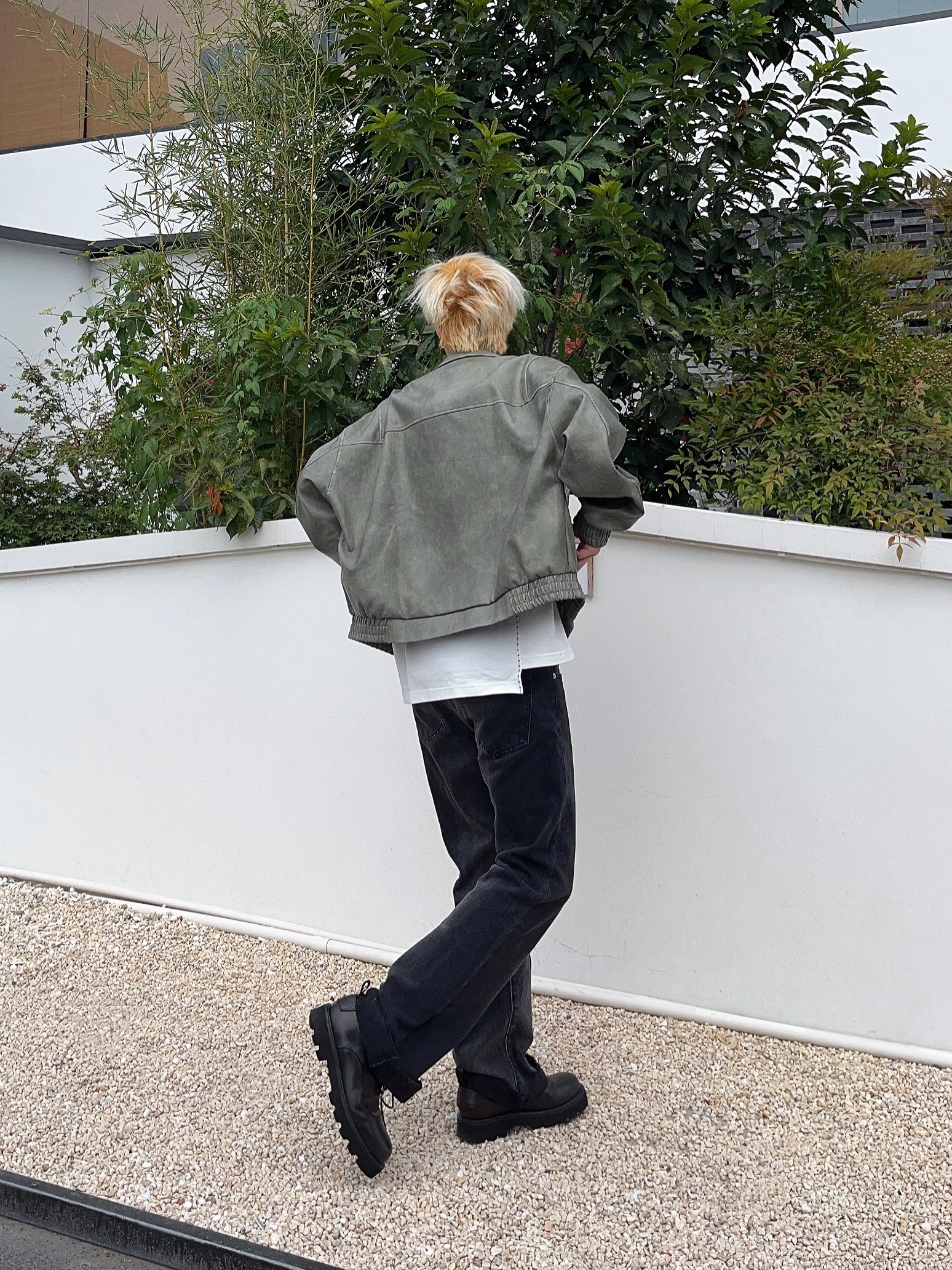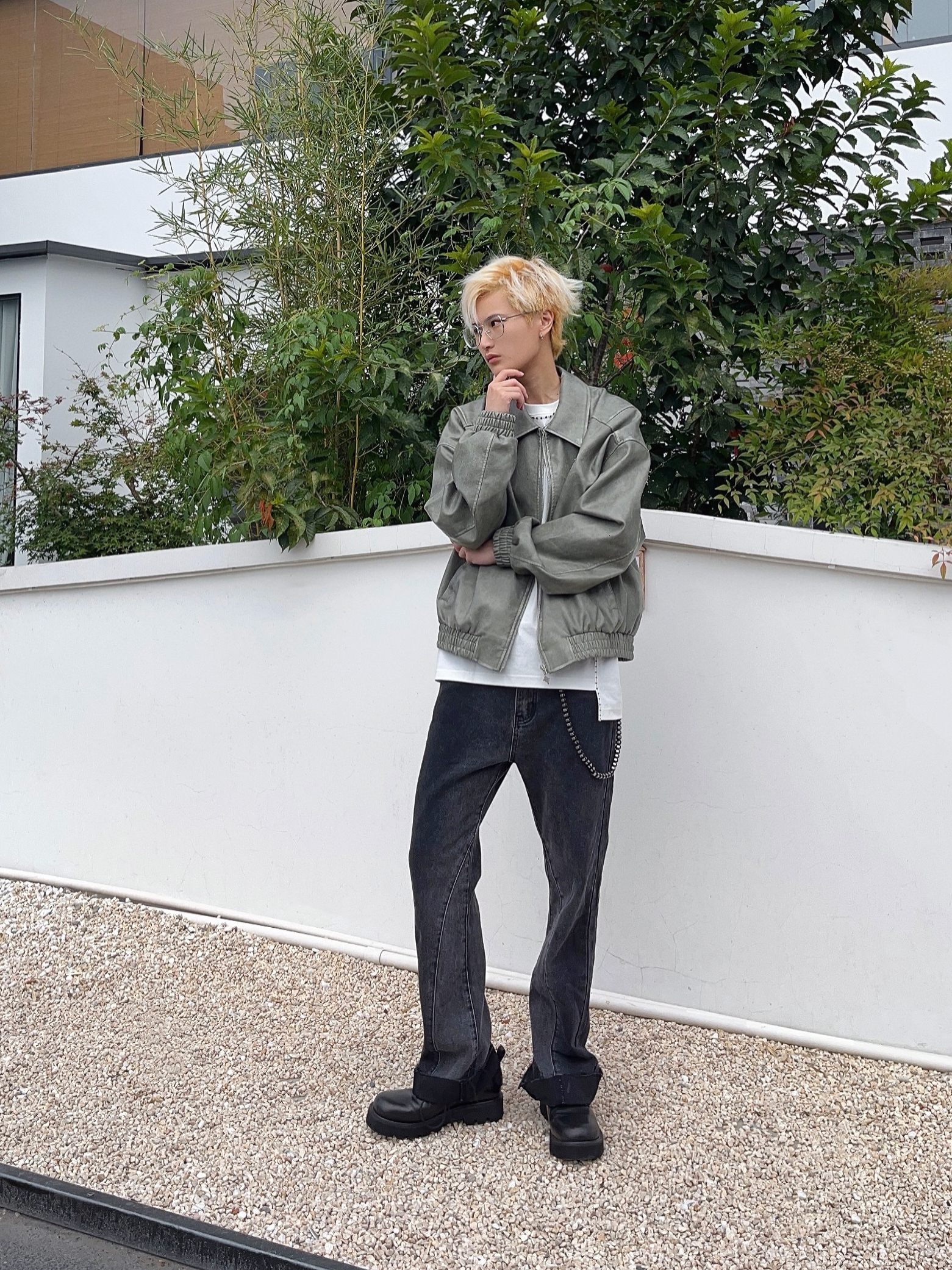 Dio今日份营业时间🕘 秋冬离变帅的距离就只差这么一件机车夹克了🏍️ ➿➿➿➿➿➿➿➿➿➿➿➿ Bomber配上小牛仔,出门都叫我靓仔🤵♂️ 重新拾起box版型的机车夹克,来自一组cleanfit. 没有什么过多的装饰,劲间点缀两层黑银小项链,是细节控的专属浪漫🌹 上身单品 Coat:IMXS Necklace:SGM Shoes:Kamianger