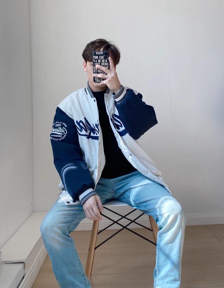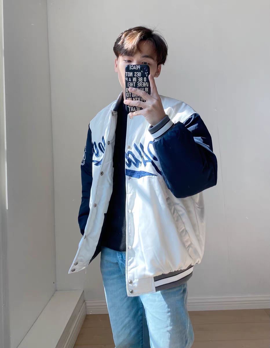 今日分享:一件平价又清爽的棒球服夹克!我敢说,60不到的价位你找不到比这更好的选择了! 蓝白配色设计,搭配上螺纹领口,宽松舒适的版型,下装可以穿一条浅蓝牛仔裤呼应,内搭白T恤黑T恤都非常好看!喜欢的家人闭眼冲!