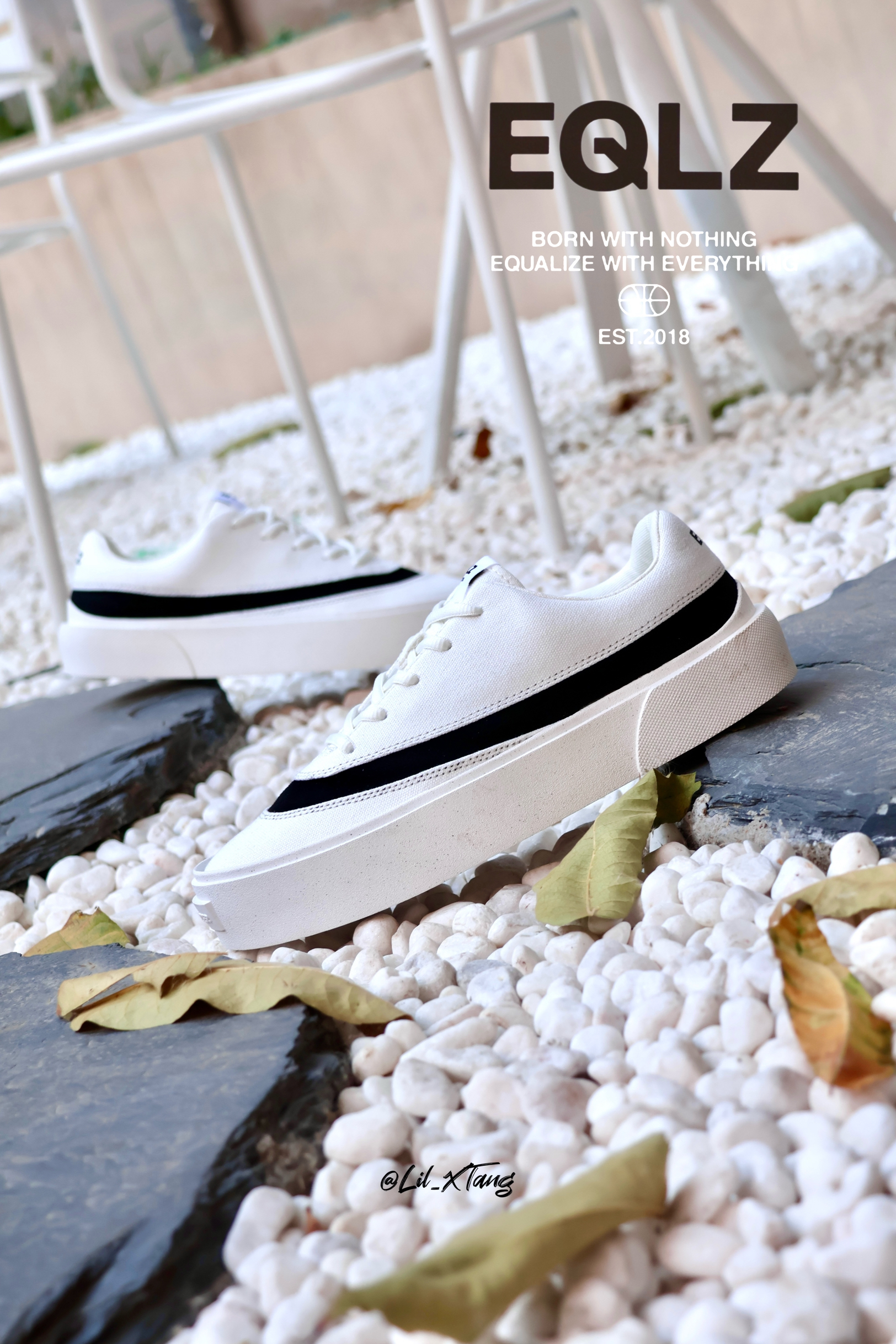 👟:EQLZ Fault 24 Lo 潮流休闲舒适气质百搭 低帮 板鞋 男女同款 皓月! 一年四季都可以穿的黑白。今天开箱这双 Fault24 Lo 首发黑白熊猫🐼!这双Fault24的配色上就非常有ins风,鞋面大面积的白色帆布材质搭配黑色麂皮的拼接,看起来还有点藤原浩的味道。Fault24的上脚鞋楦比较适中,正常脚微宽脚都可以按照常规尺码去选不用怕挤脚!宽脚胖脚慎重! 白色帆布材质,好皓月当空...