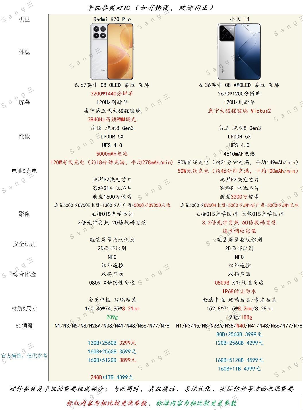 【Redmi K70 Pro「对比」小米 14】,由用户 Sang三 分享,来自上海。这是一篇来自识货社区的真实用户分享笔记。