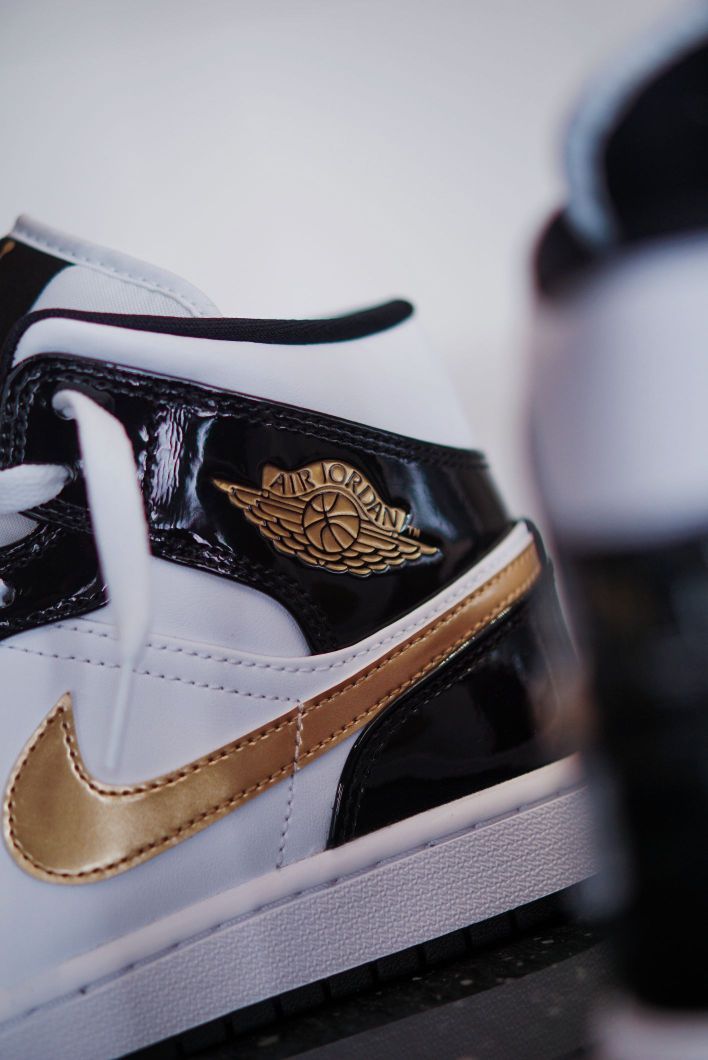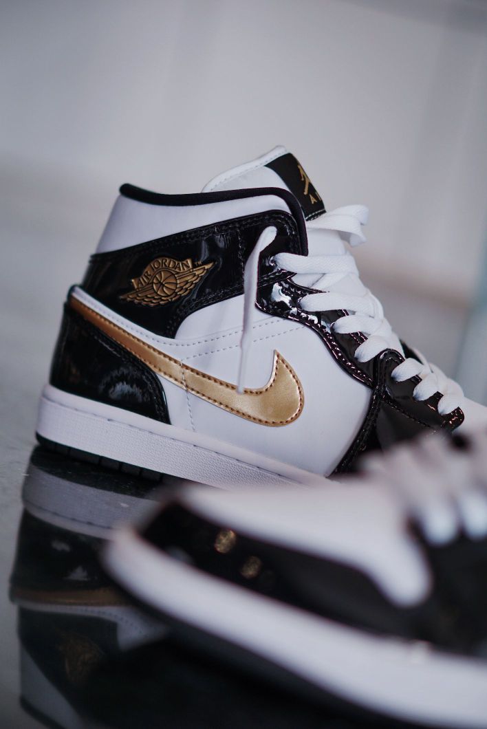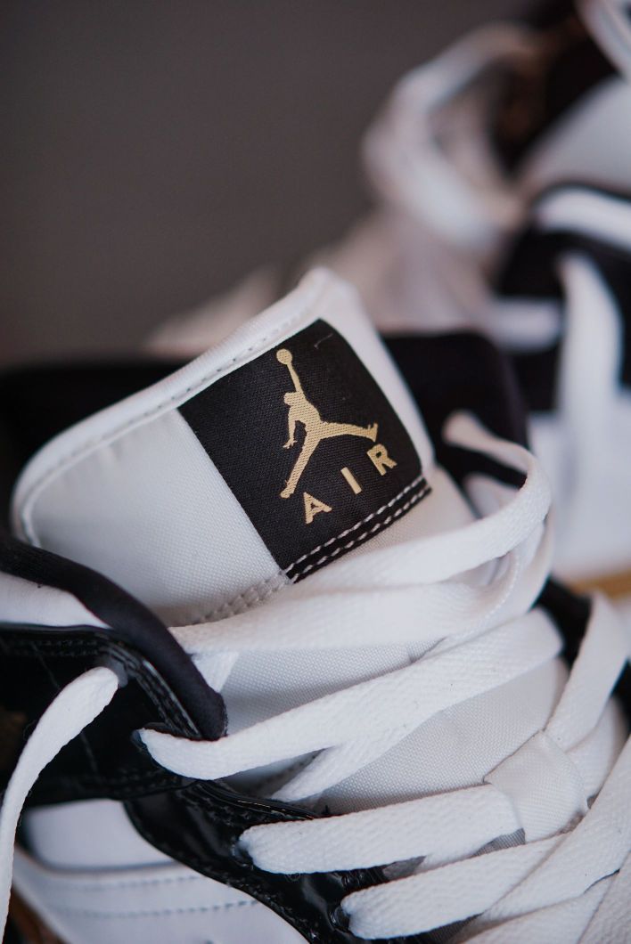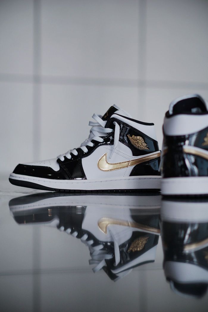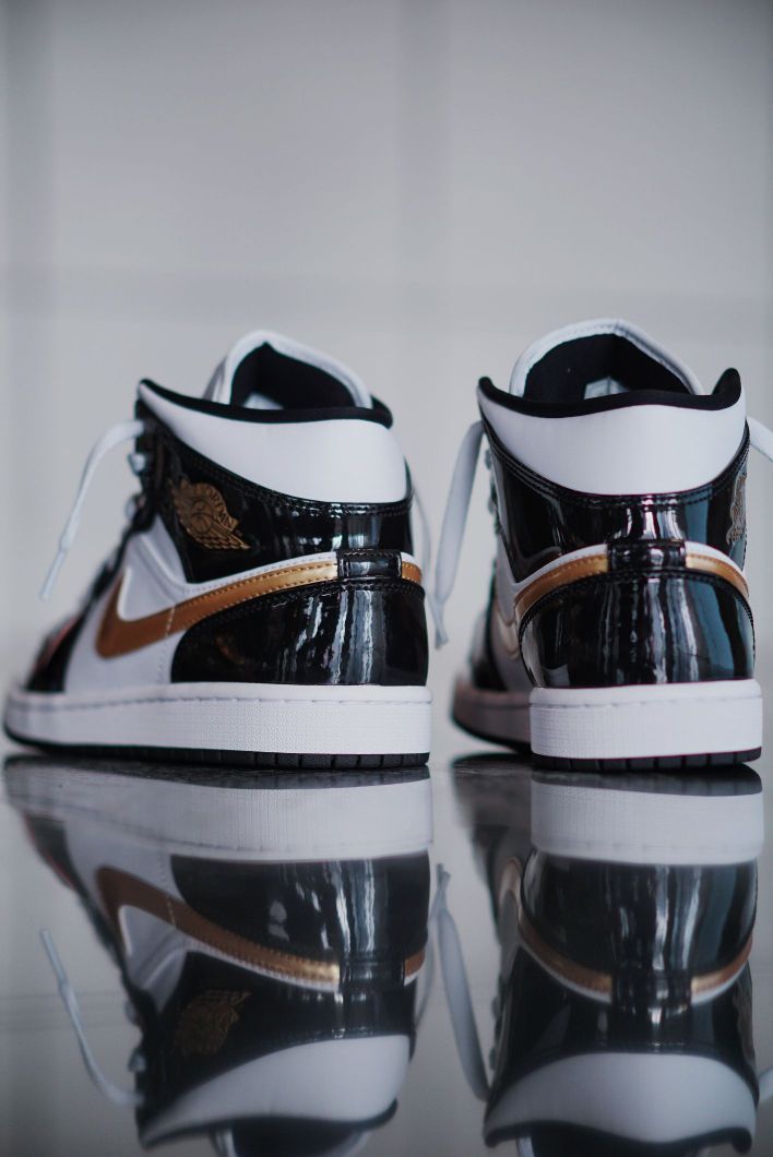 最近Jordan把很多好鞋补货了 前几年球鞋市场最火热的时候 这种高颜值AJ1低帮中帮都溢价 现在可算是等到入手好价格了 黑色漆皮点缀金色swoosh 很经典的搭配 冬天穿也是蛮好看的