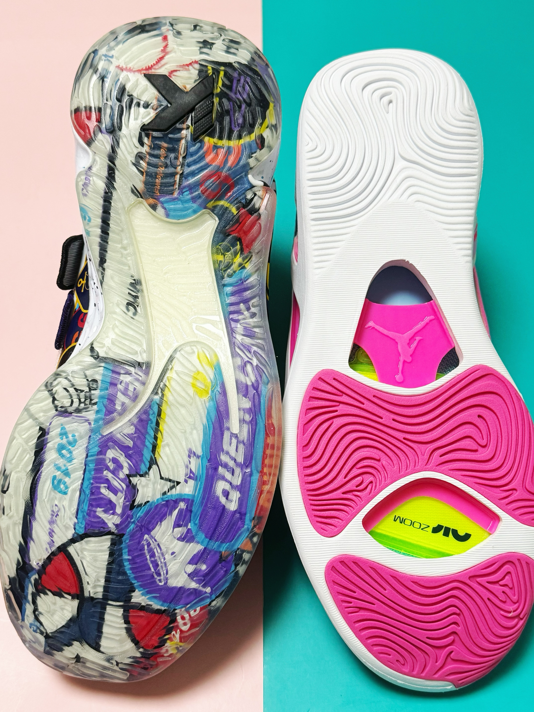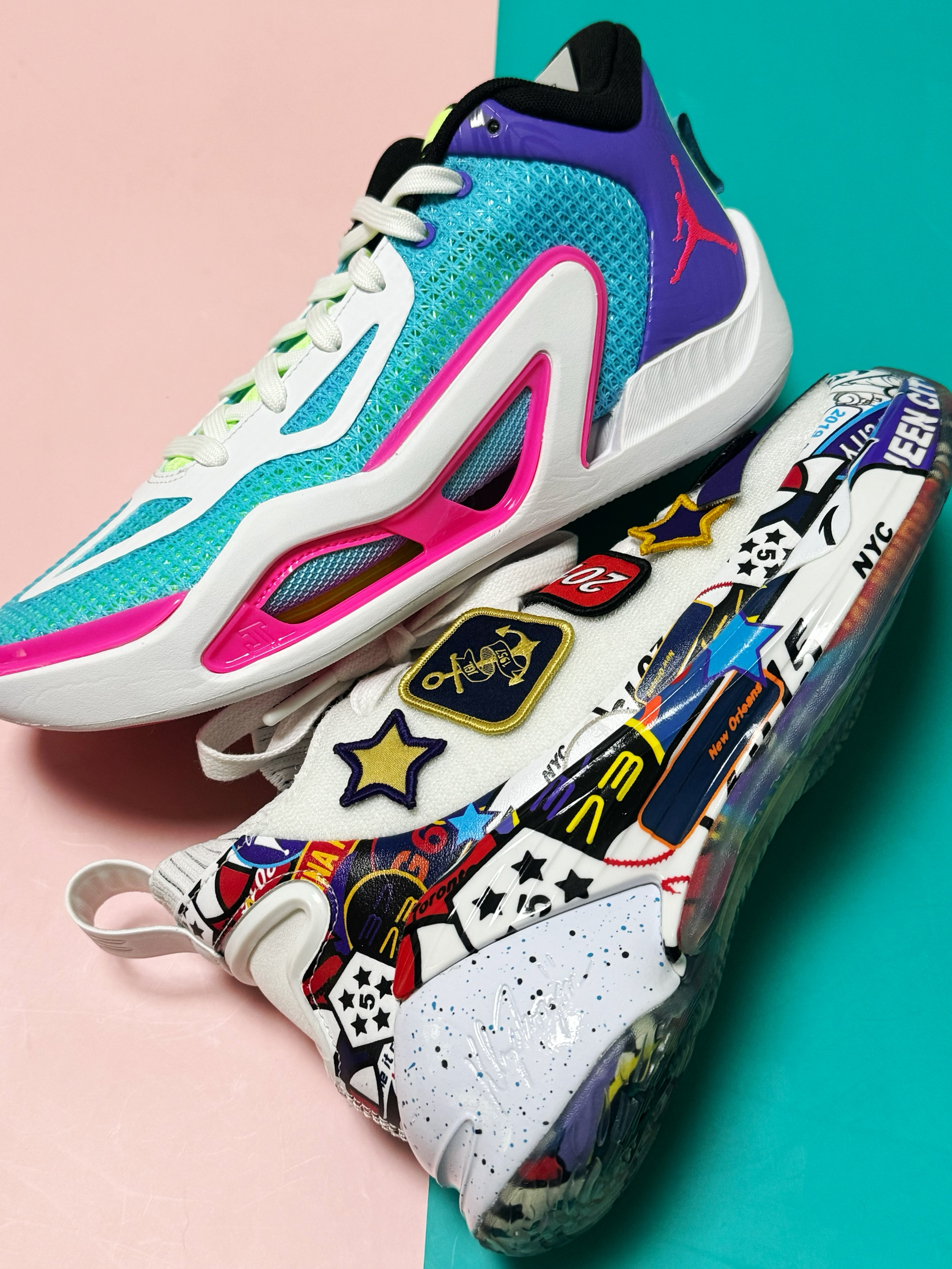 halo 阿迪来了,本期和大家带来两双实战篮球鞋分别是这双钩子的Tatum 1 南海岸和这双安踏的KT4全明星 话不多说,我们先来看看这双Tatum 1,整双鞋配色灵感来源于塔图姆和家人在休赛期的度假旅行,融入了海滩、棕榈树等元素,造型相当具有多巴胺氛围。特别是鞋面水绿色和中底粉色的搭配,还真有南海岸内味儿了!细节方面,整个后跟都印着棕榈树暗纹,再次强调海滩度假主题。鞋舌也有专门设计的特殊刺绣图案...