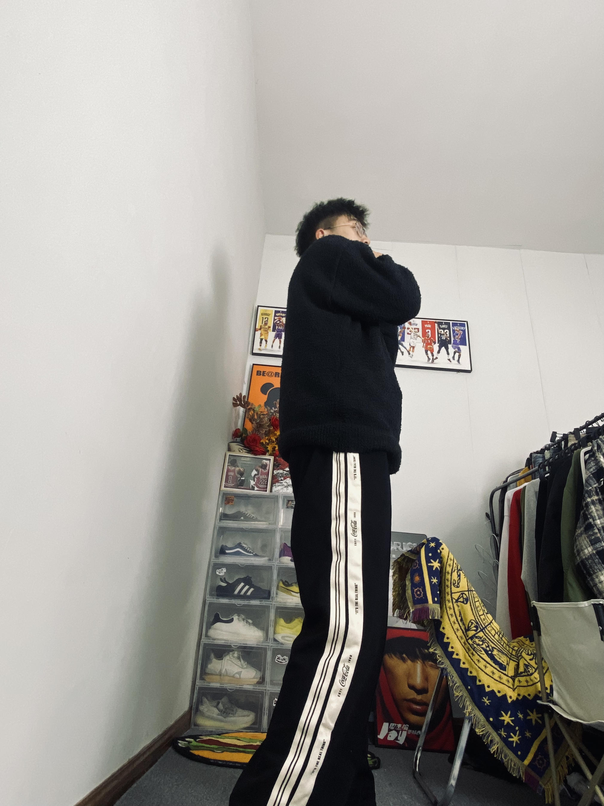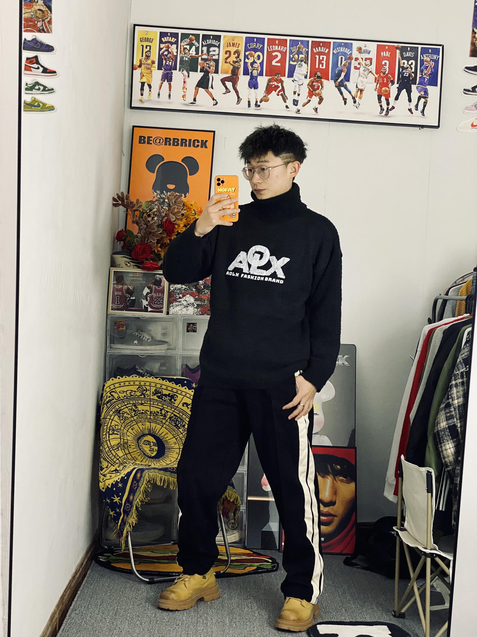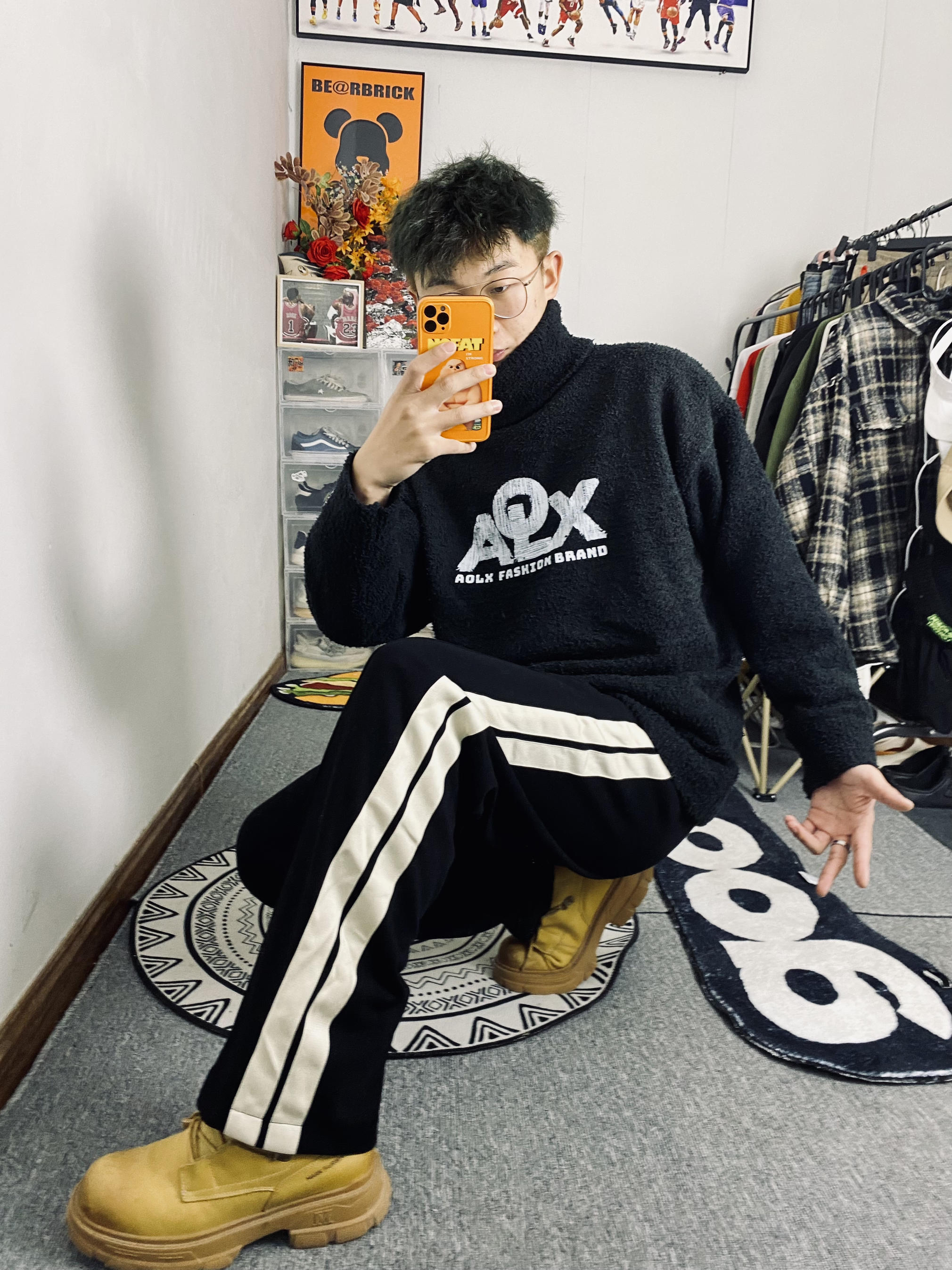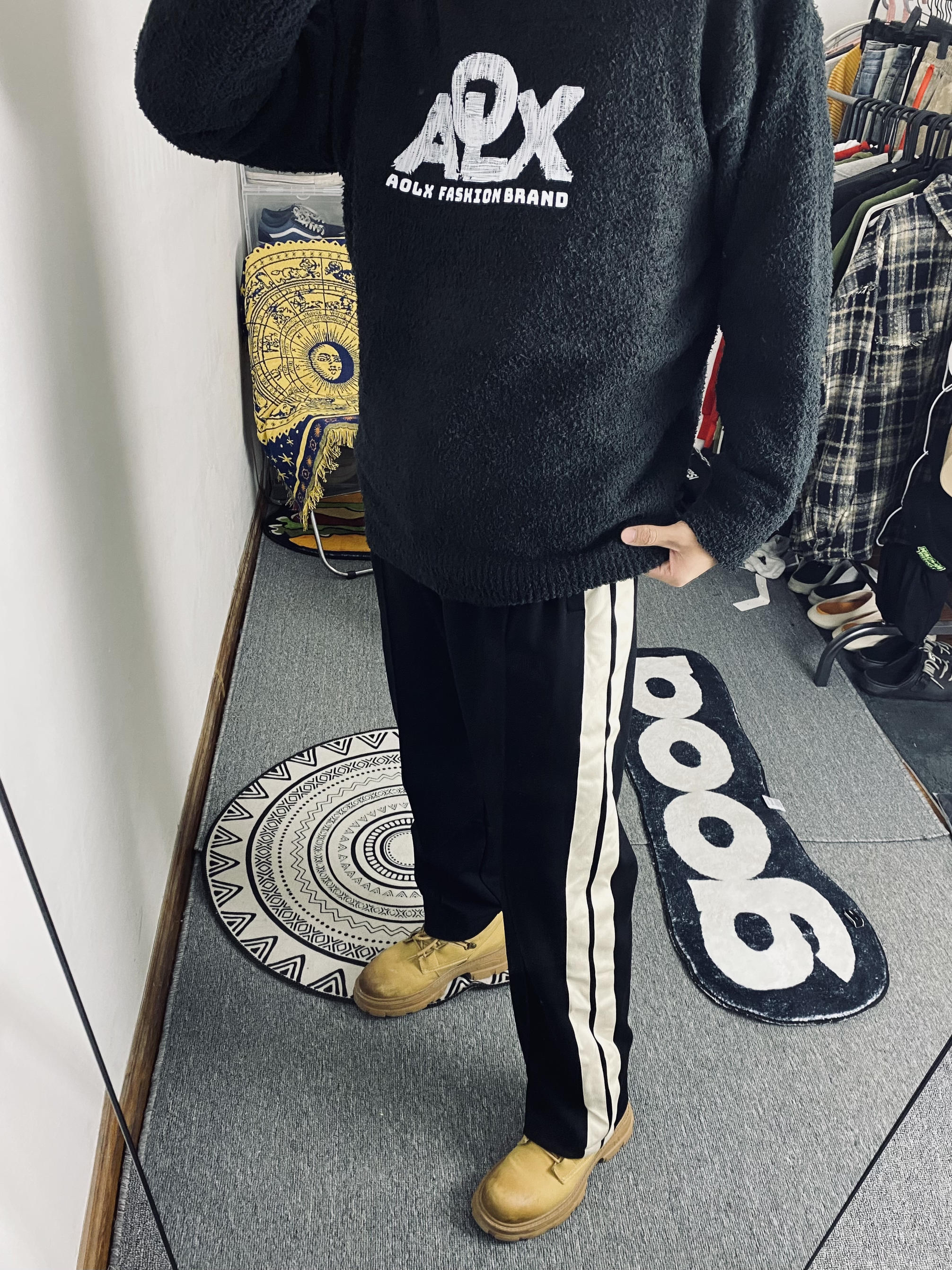 🥰今日冰美式穿搭 👔衣服今天给大家上身穿了一件高领长袖冬日卫衣 针织衫的设计保暖又透气‼️ 我个人比较喜欢胸前的字母印花Logo让整体显得不再那么单调 我今天内搭穿着出去转了一圈保暖性还是不错的🙈 — 👖裤子的话就是一条休闲加厚针织直筒裤 直筒裤的设计拉高了腿型比例 加厚针织设计保暖又透气 — 👟鞋子的话就是我秋冬穿的比较勤快的一双马丁靴主要是方便打理还保暖 身高/体重:178/130 👔xl👖l