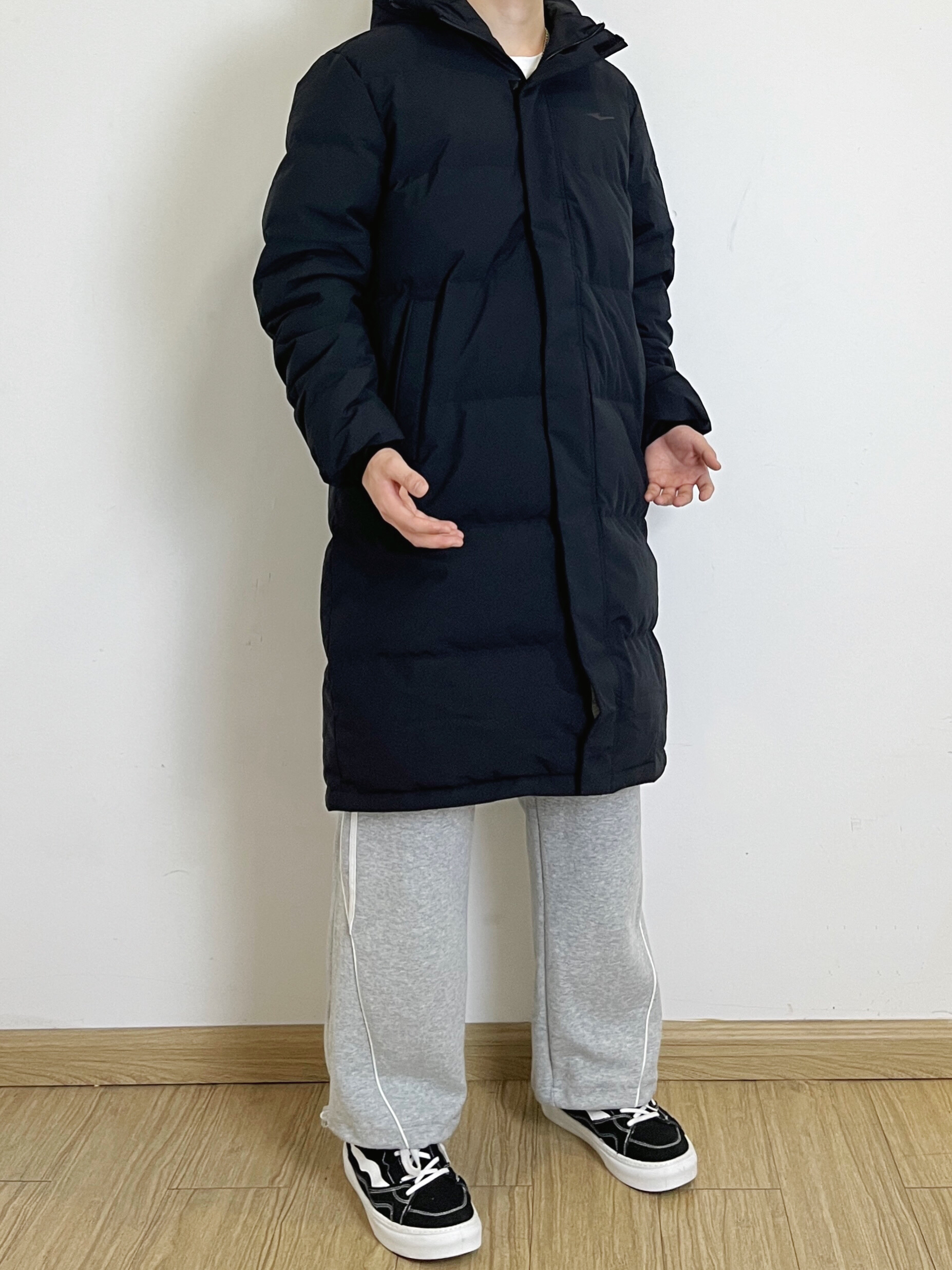 😼身高178体重68 入冬了兄弟们帅帅的羽绒服你还不安排上吗 今日冬日美式穿搭分享 黑色长款羽绒服真的不要太帅了 早八学生党冬天穿真的很方便还非常保暖 而且黑色也很百搭随便搭个灰色裤子就很帅啦 入冬啦喜欢的兄弟可以直接冲了❄
