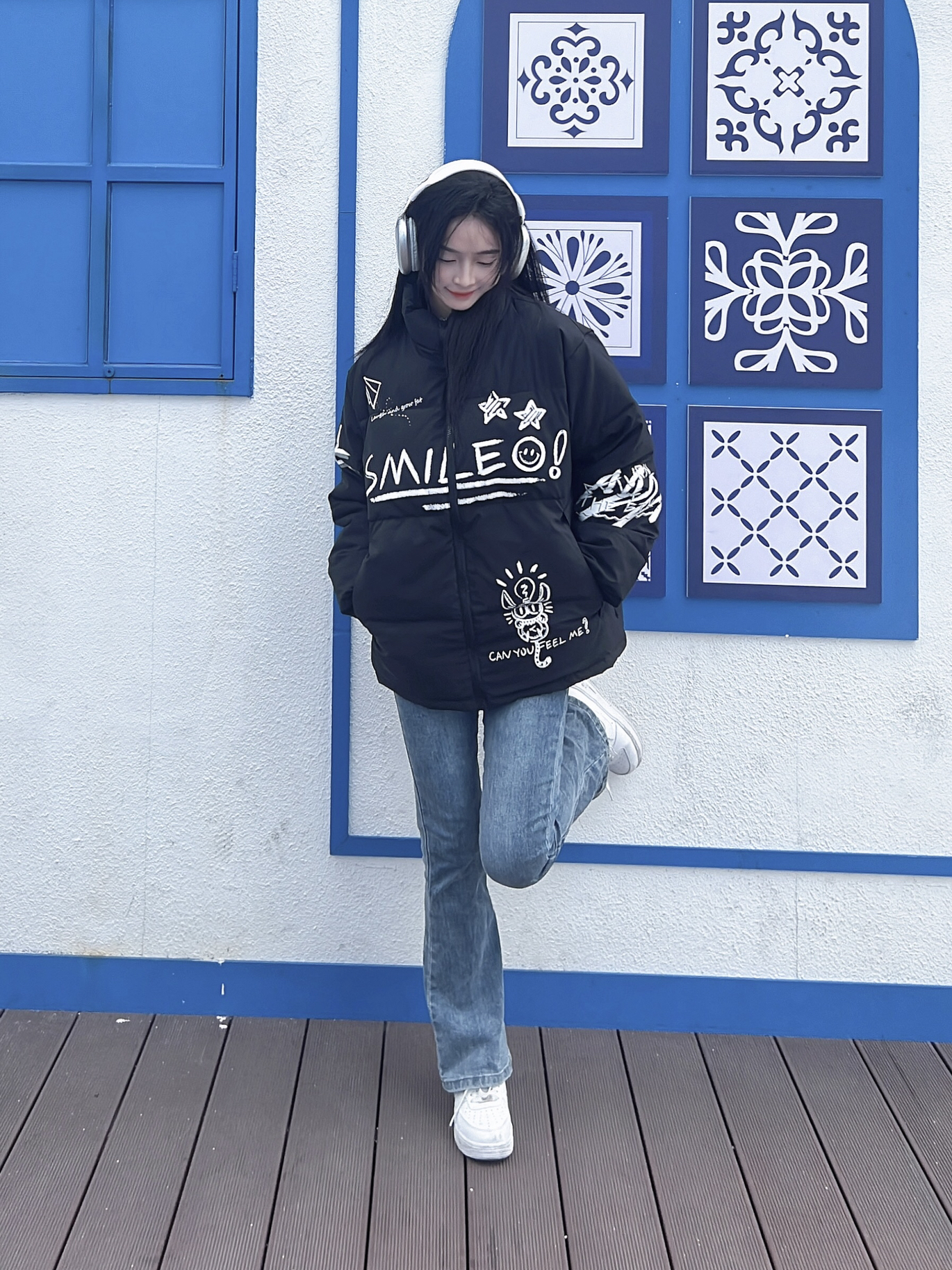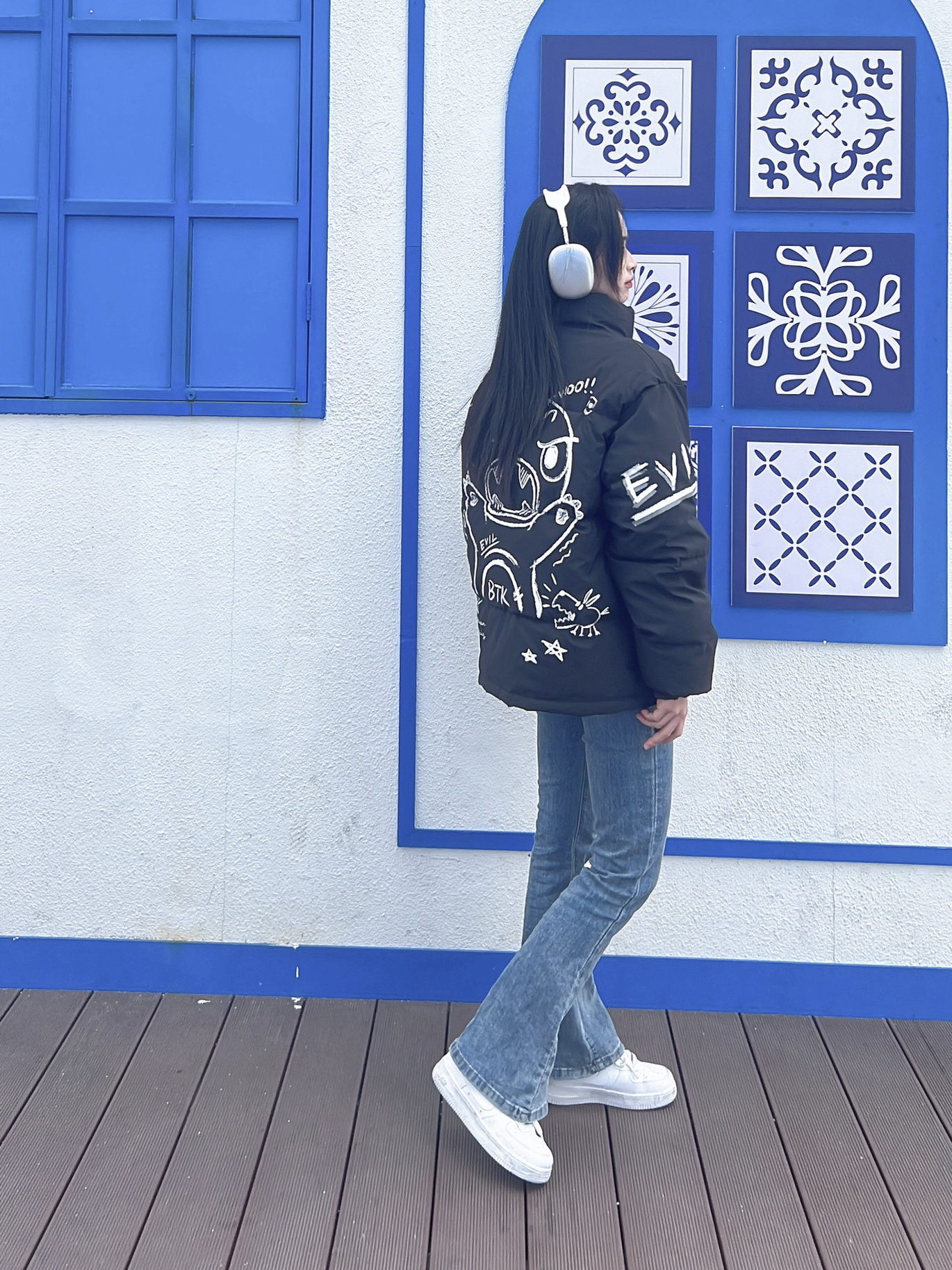 超有意思的一件棉服🥰 满印图案太像童年时候的蜡笔🖍️画🥳