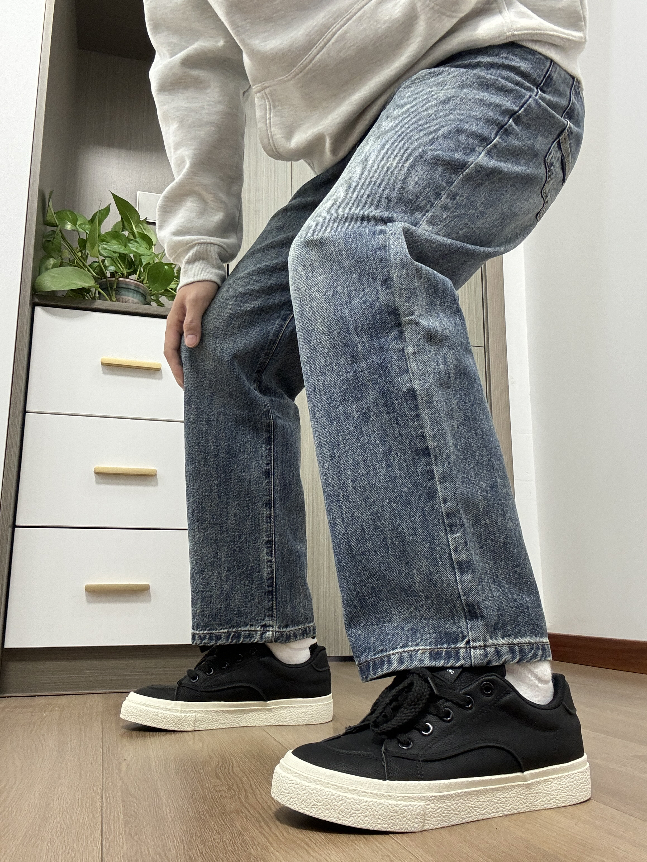 美式复古直筒牛仔裤|腿粗的兄弟也能驾驭 简洁干净显腿长 洗水复古有“味道” — 宽松的直筒 同时解决腿粗 屁股大的选裤难题 — 四季上身都足够舒适 — 水洗后的颜色和品质都很稳定 卫衣、衬衫、运动外套 上装可随意选择搭配