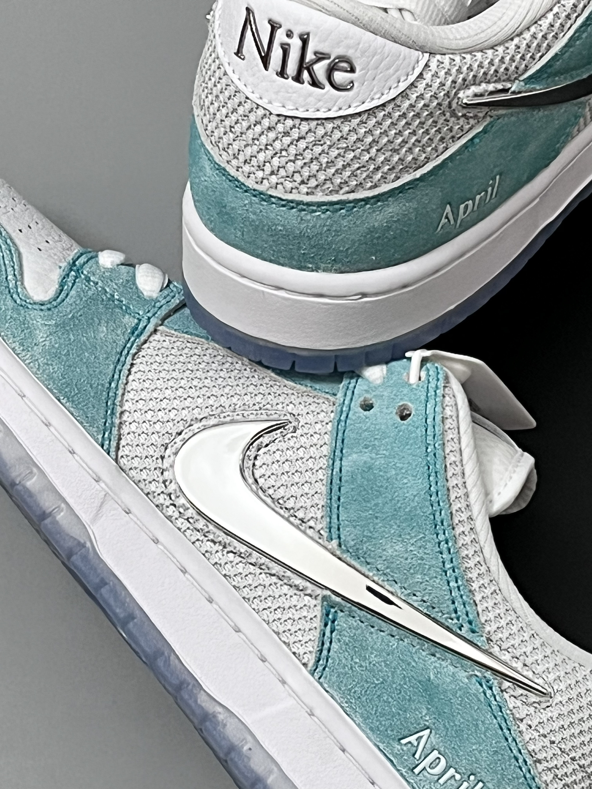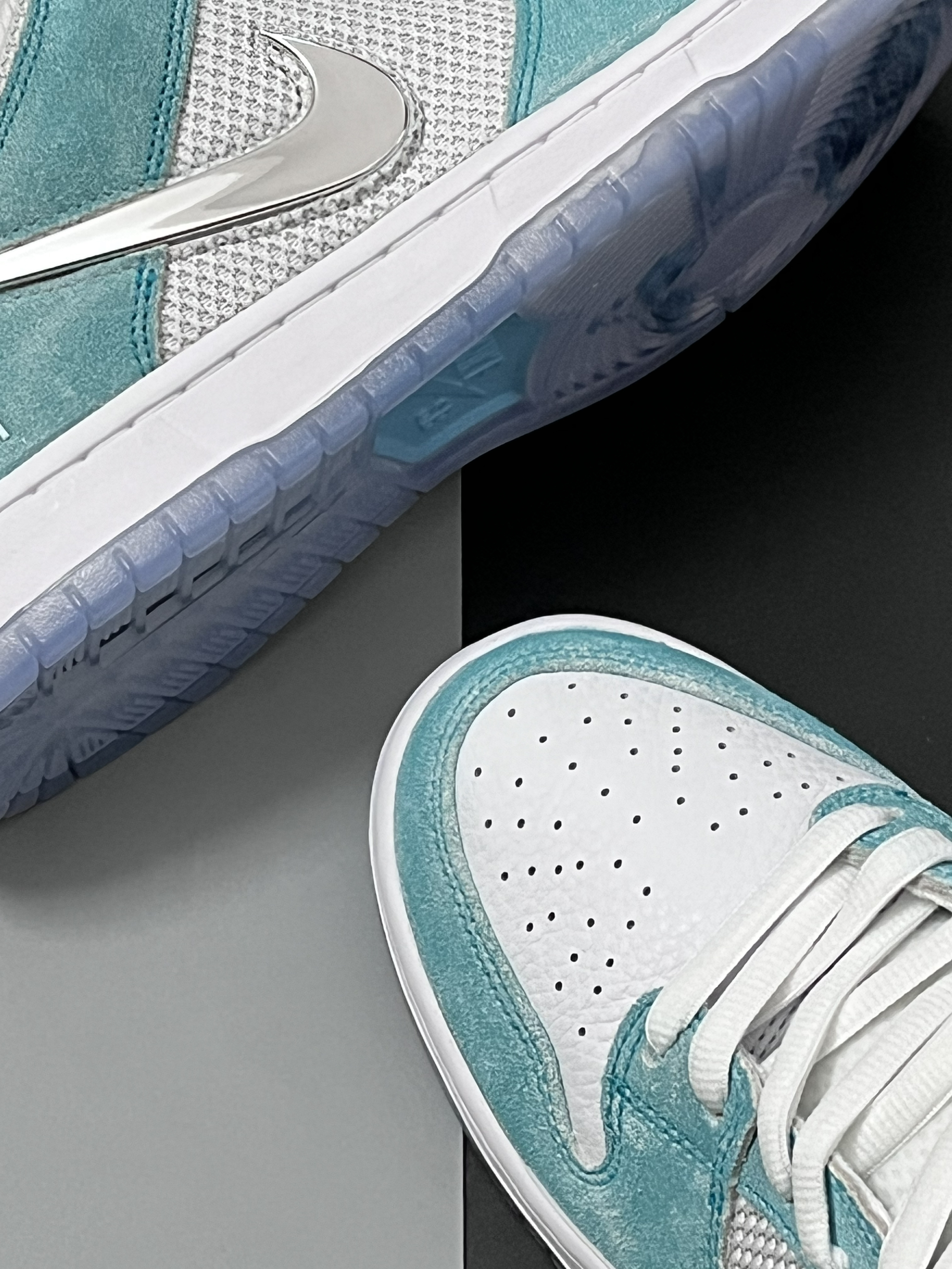 ⚪️今年耐克发售了很多款联名dunk,都有着很不错的颜值,不过我个人最喜欢的一款dunk,还是这双简约的白绿联名dunk。 ⚪️白绿配色再加上鞋身的电镀logo,给我的感觉很不错,设计很新颖,实物拿到手挺让我眼前一亮的,只不过水晶底容易氧化,如果换成橡胶大底的设计,个人觉得会更好看。
